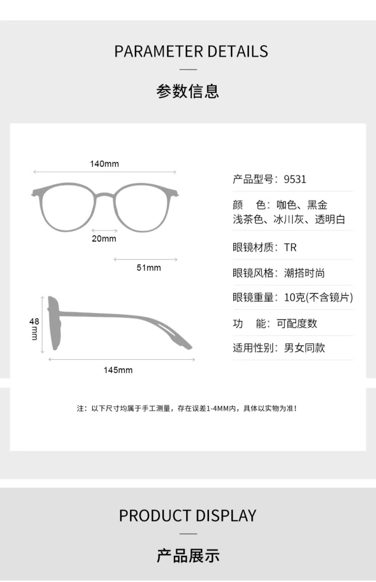 超轻TR90防蓝光镜框冷茶色近视眼镜框女男平光丹阳眼镜架批发9531
