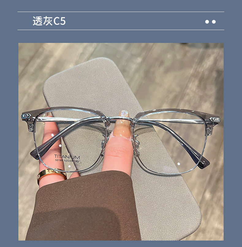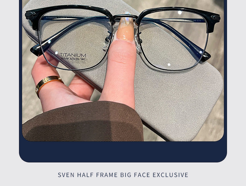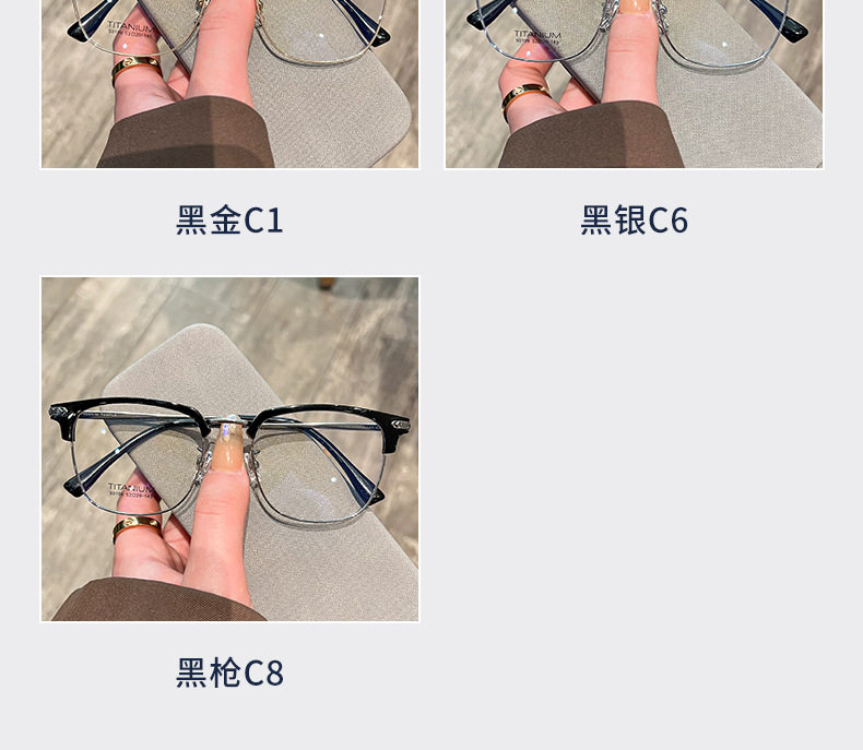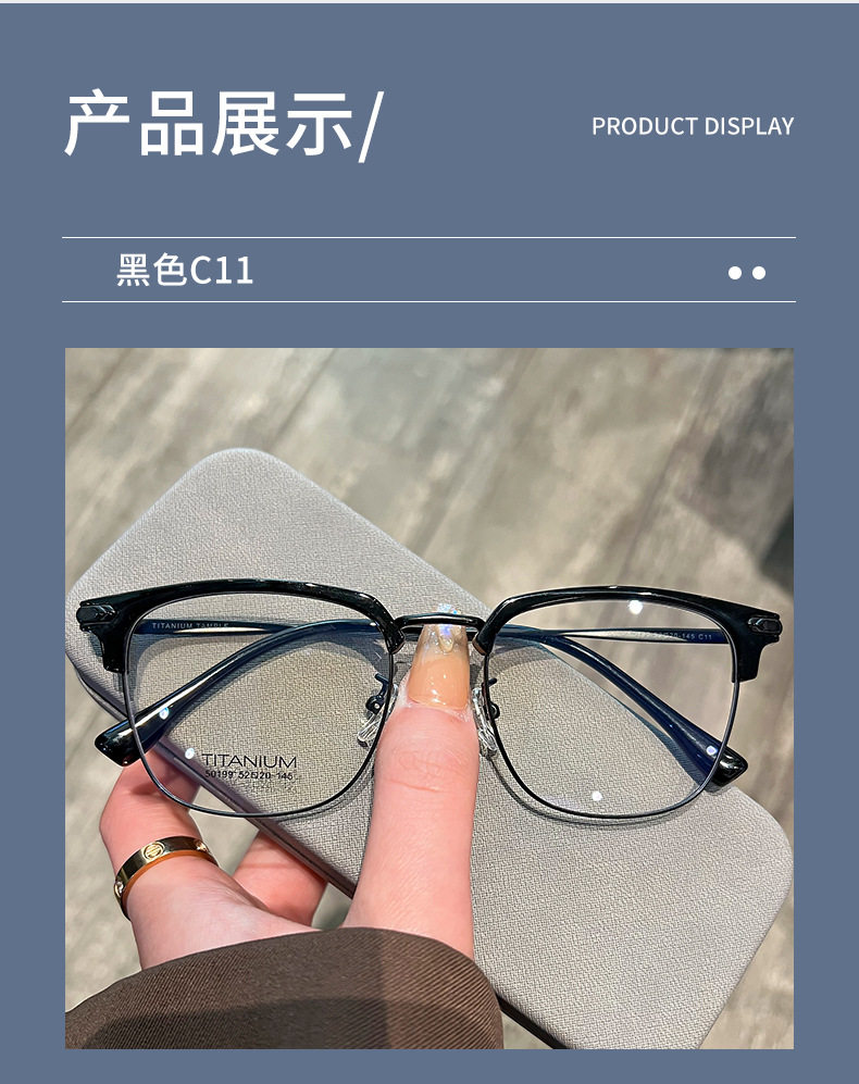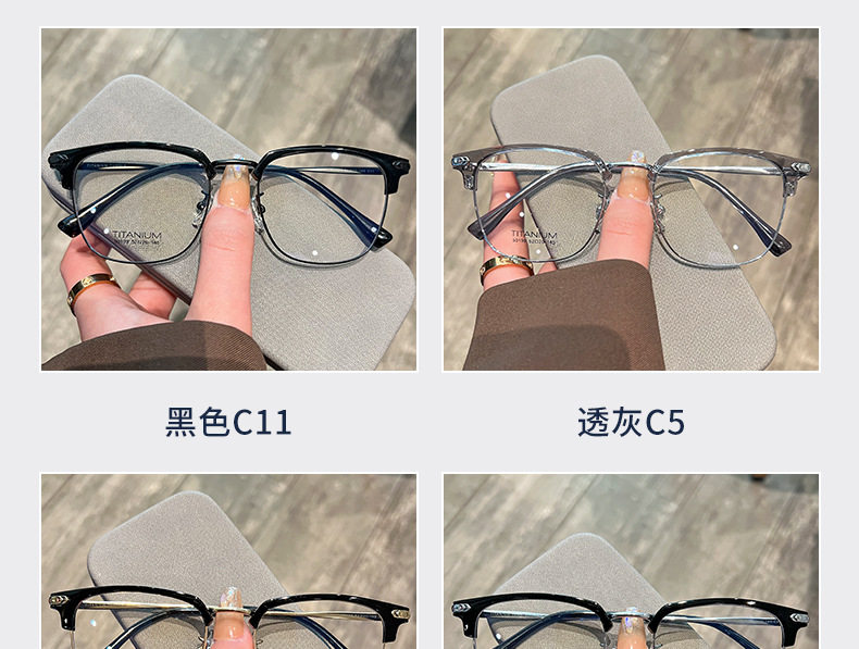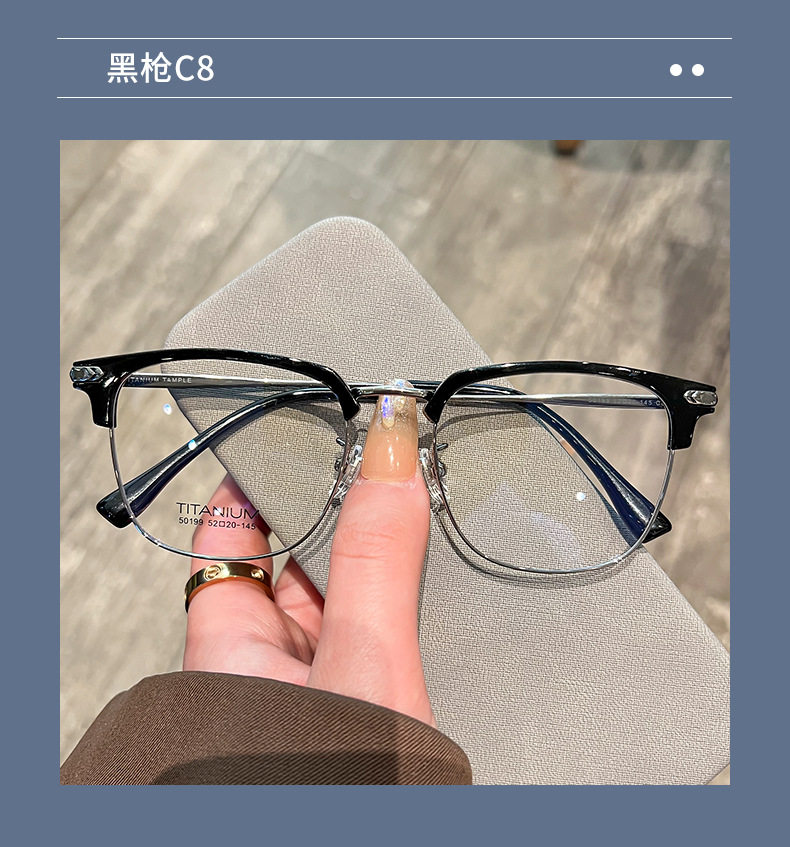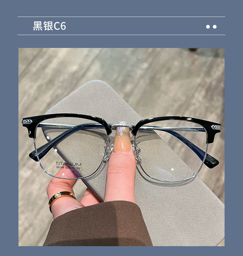 复古半框眼镜男50199超轻纯钛镜架商务近视眼镜框丹阳方框眉毛架