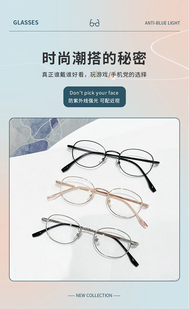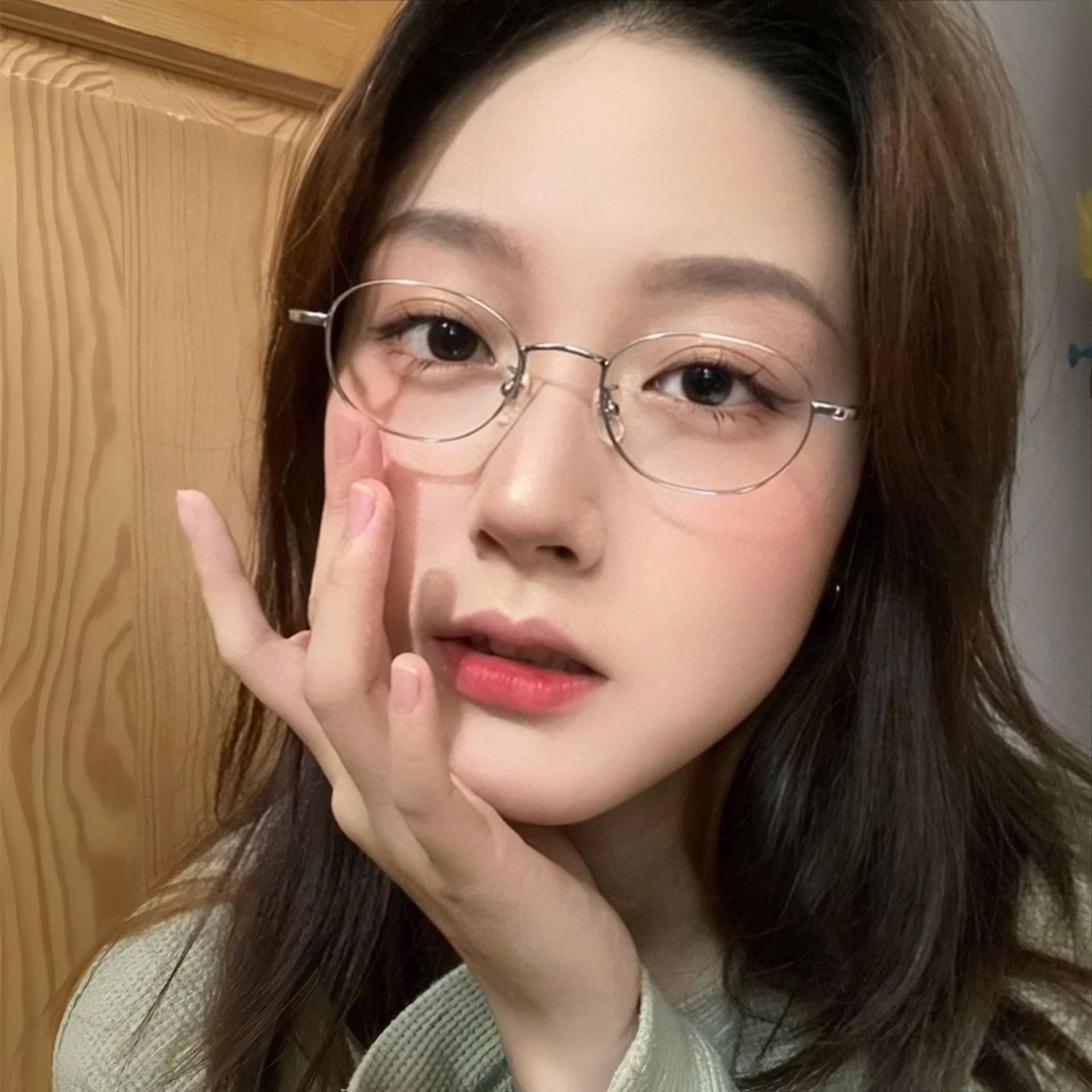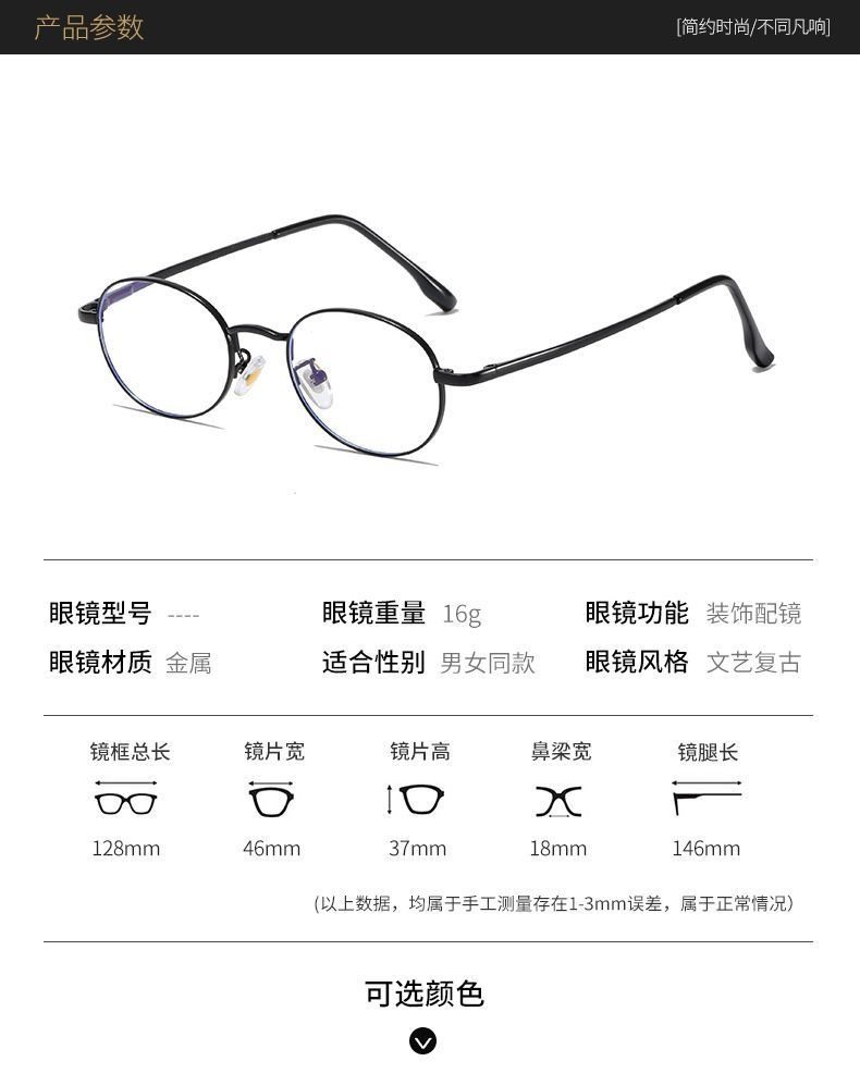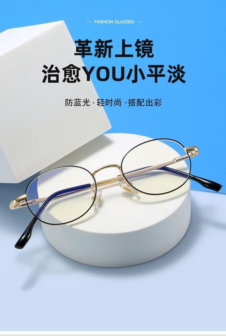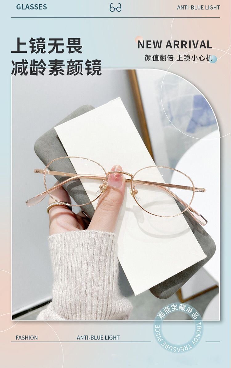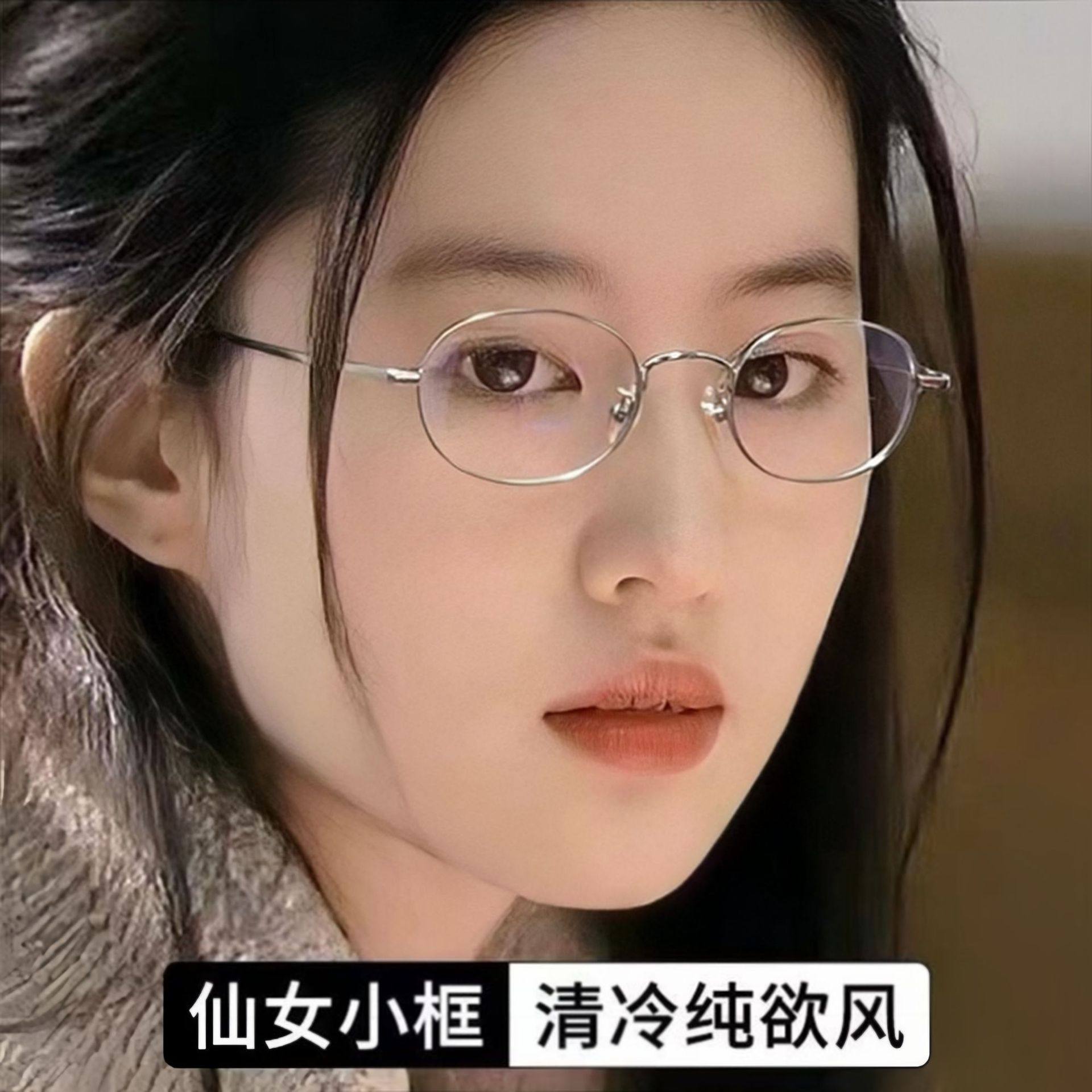 复古日系金丝纯欲椭圆框眼镜超轻防蓝光平光镜刘亦菲同款小脸工厂