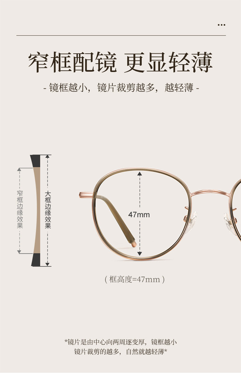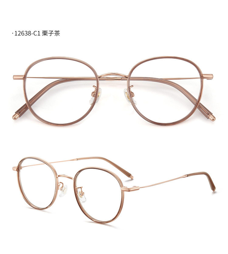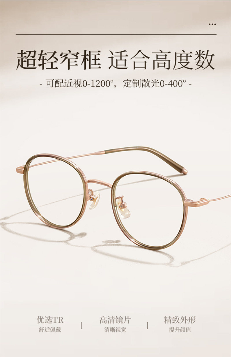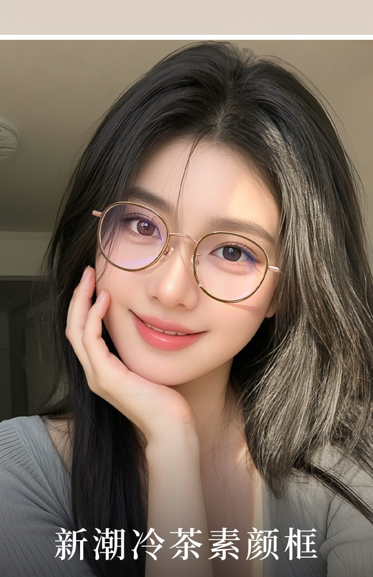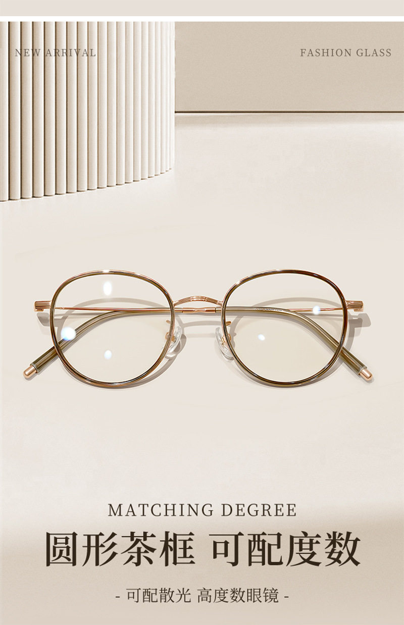 复古圆形眼镜框冷茶色高度数近视眼镜防蓝光女123638超轻小框镜架