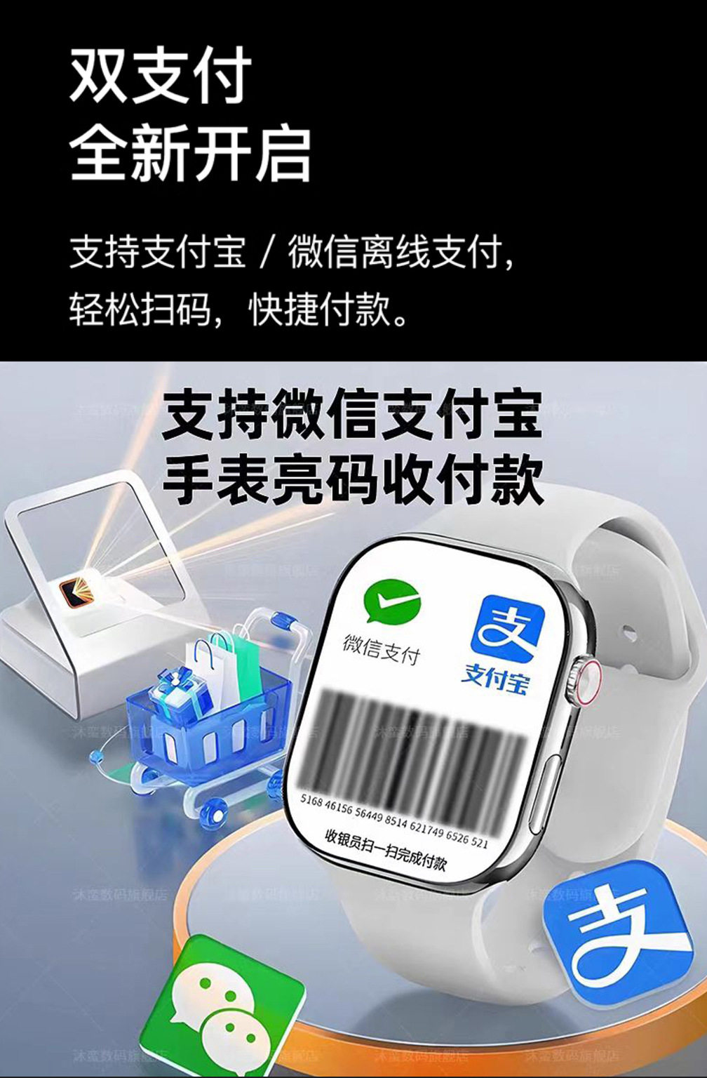 新款可微信回复S11pro双支付智能手表NFC门禁百度地图运动多功能