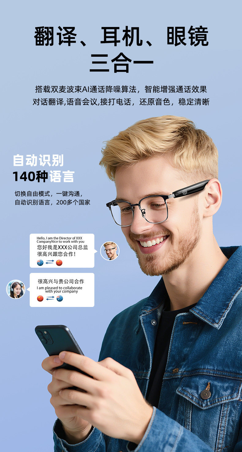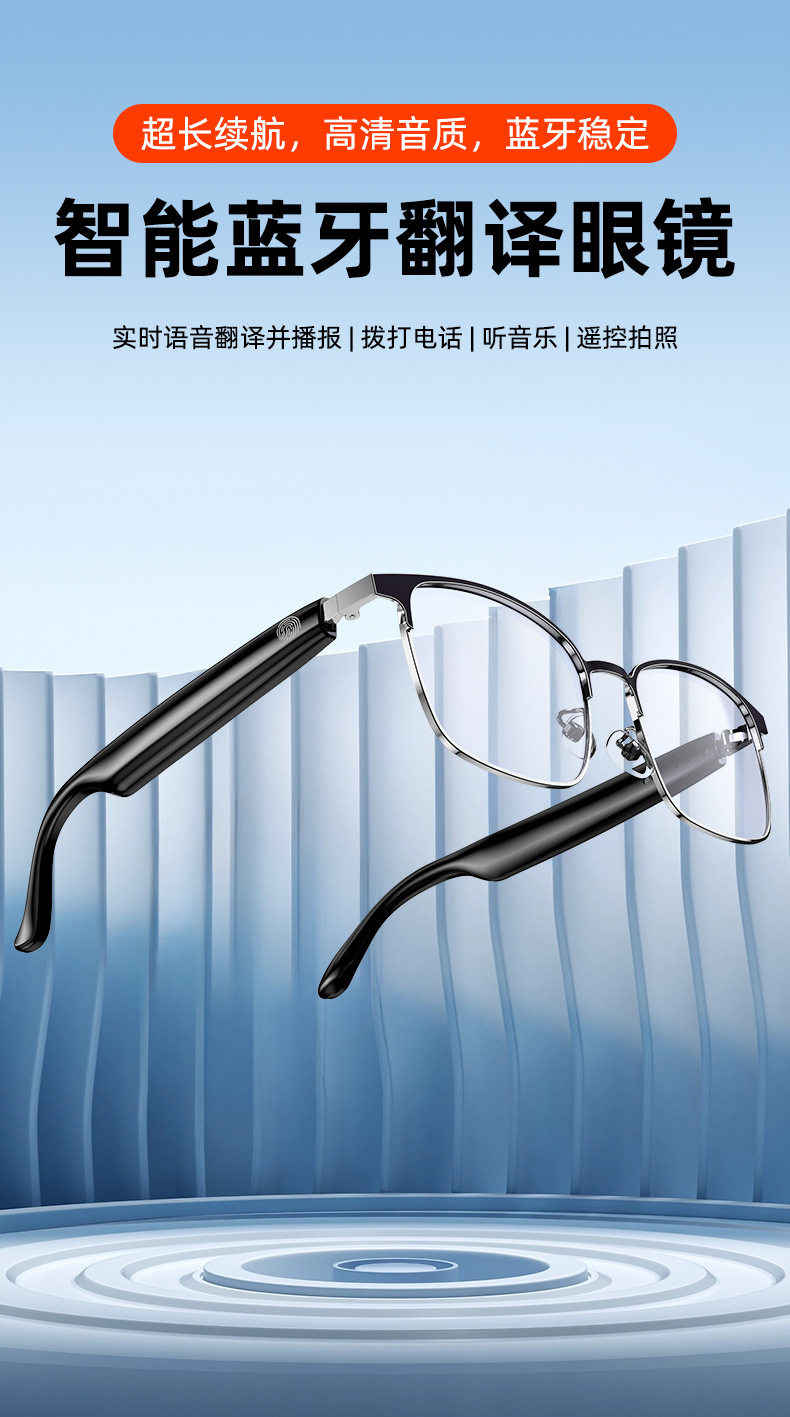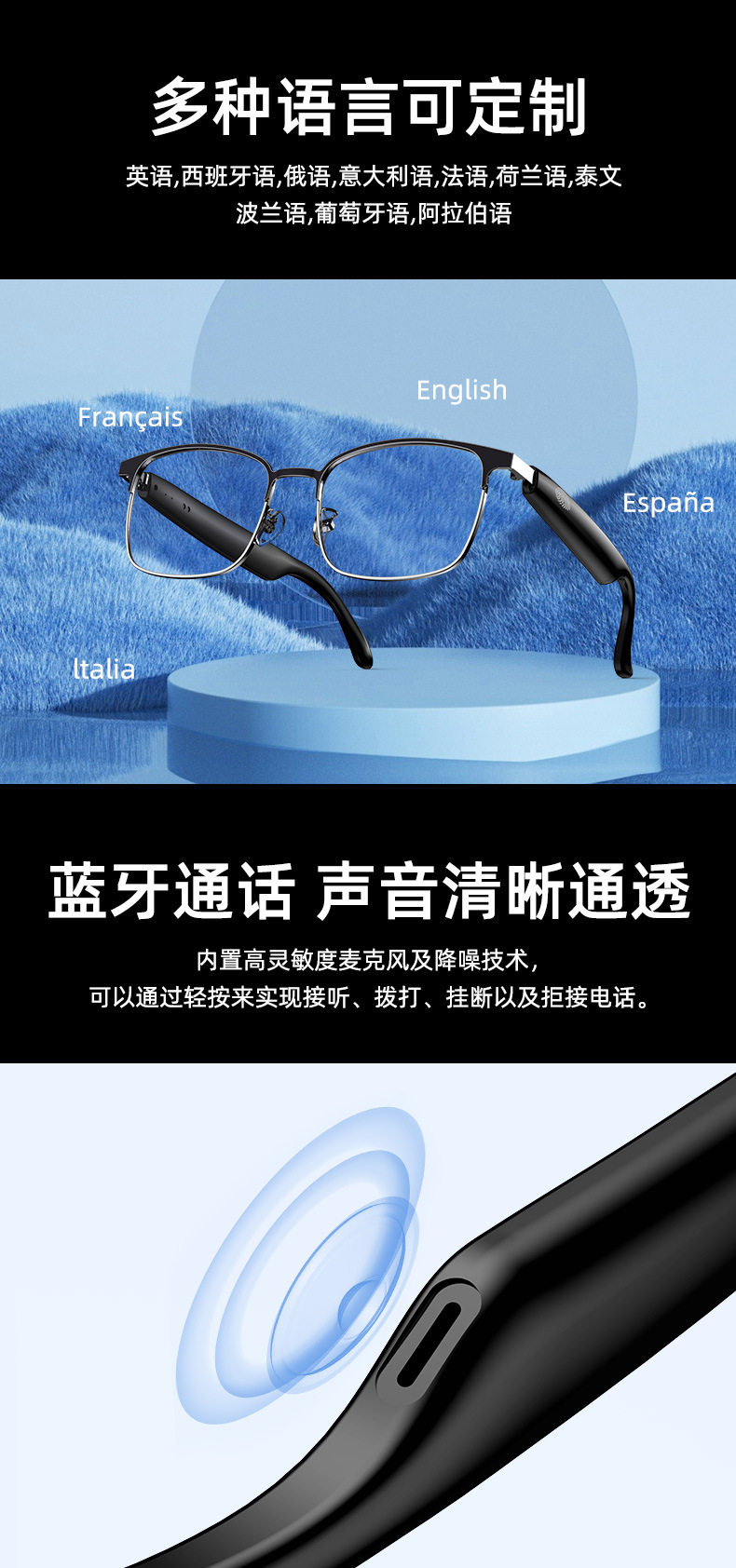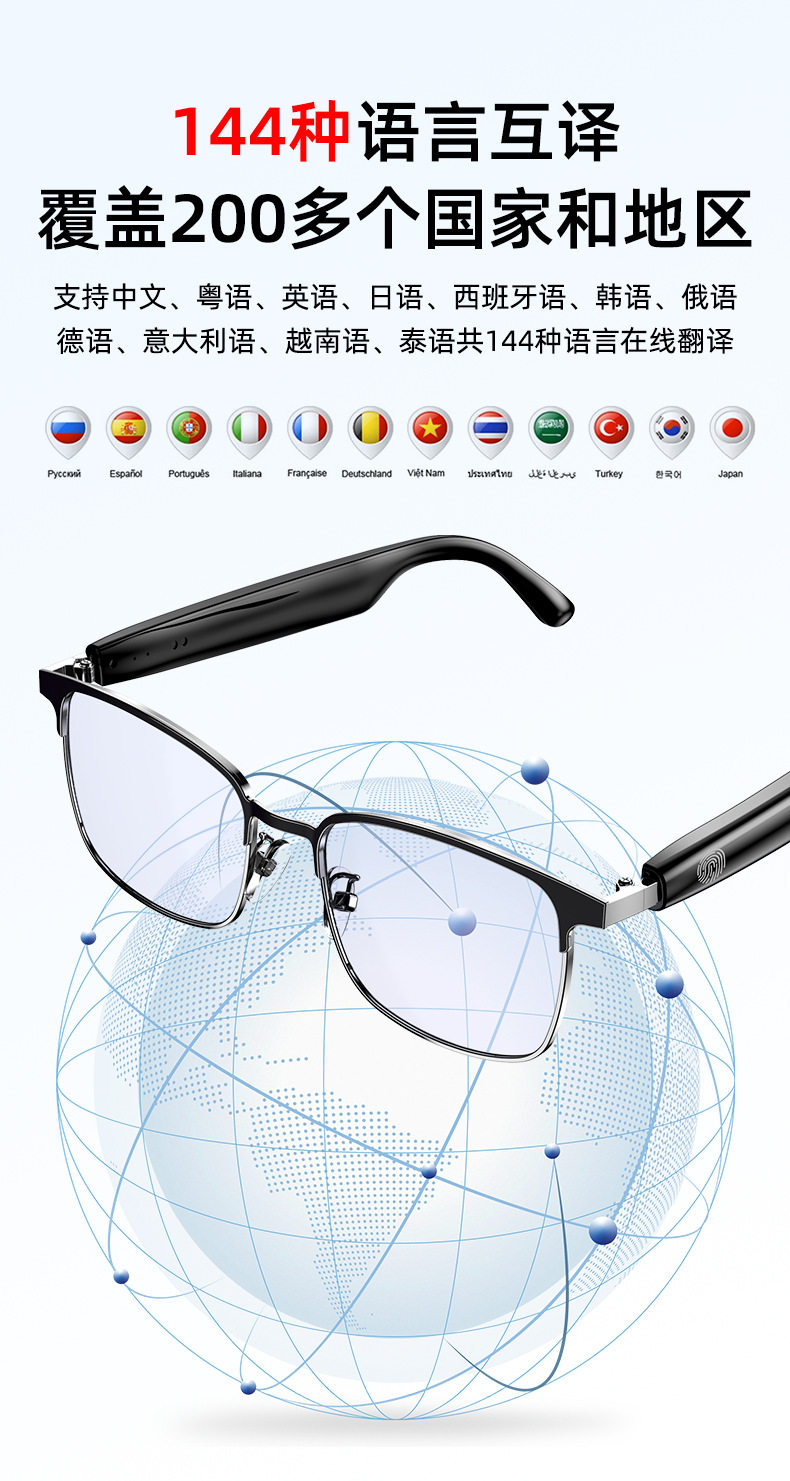 新款智能蓝牙眼镜金属框商务通勤144国语言翻译设备无线通话AI