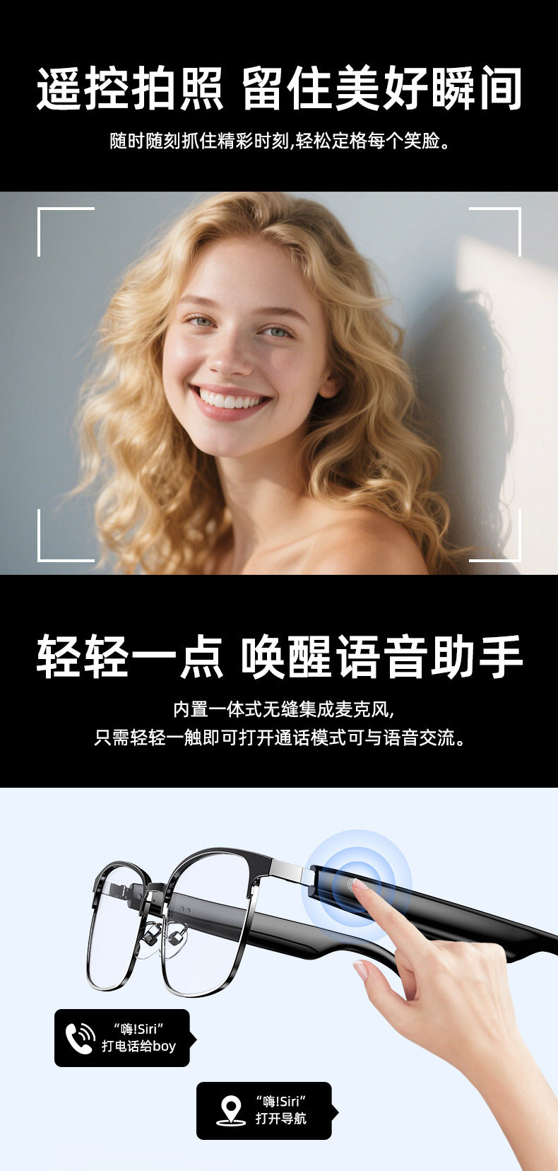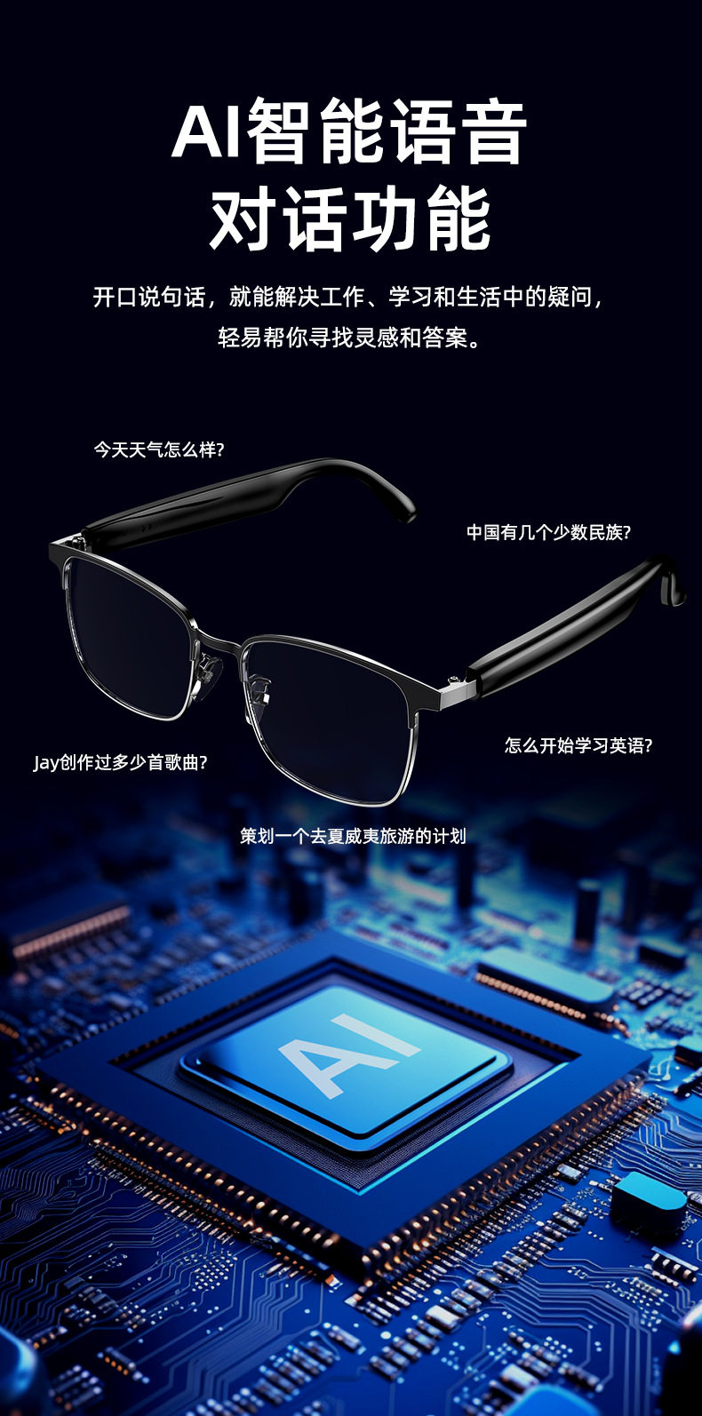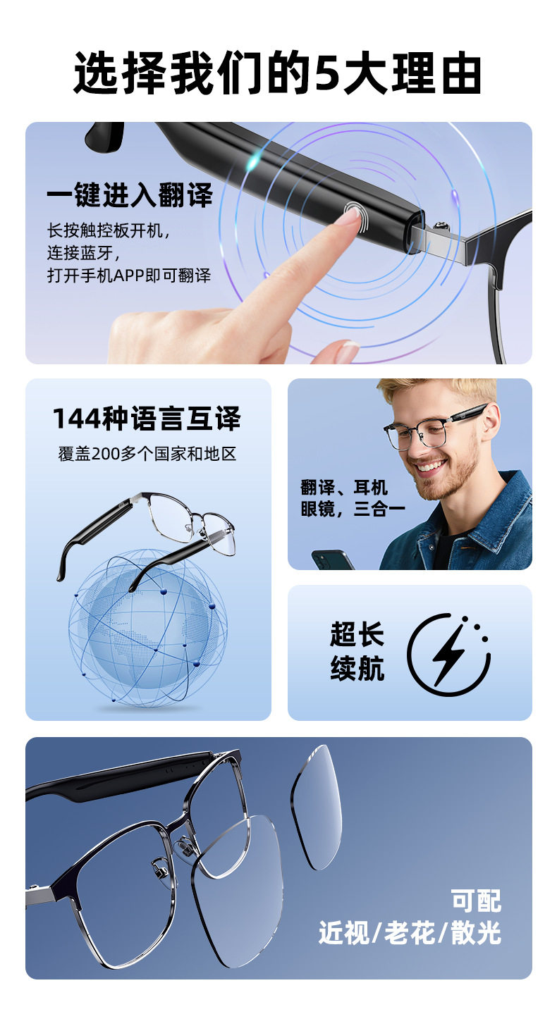 新款智能蓝牙眼镜金属框商务通勤144国语言翻译设备无线通话AI