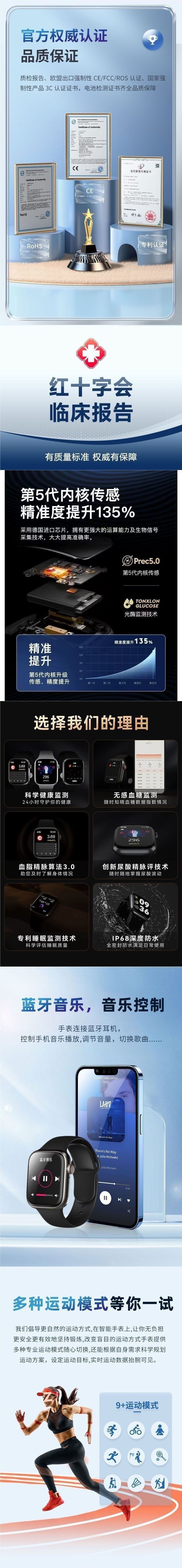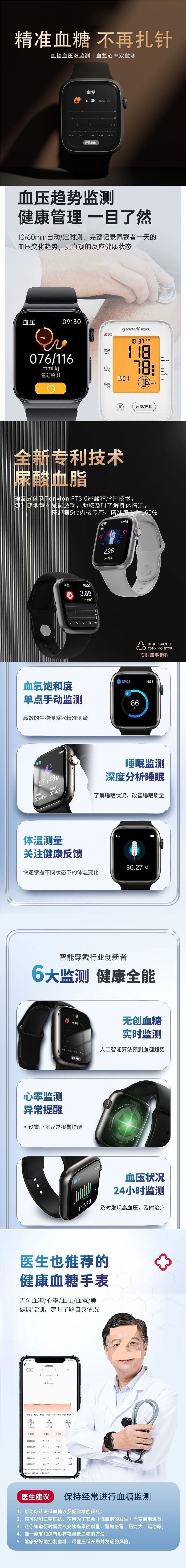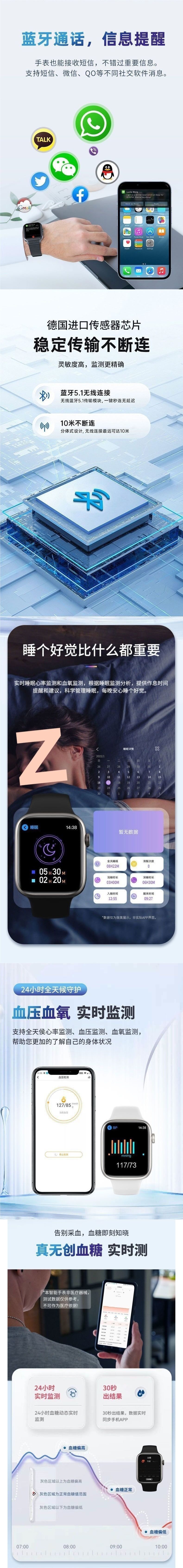 智能手表无创血糖手表血压尿酸血脂心率运动睡眠监测智能通话男士