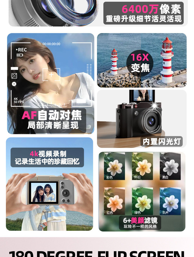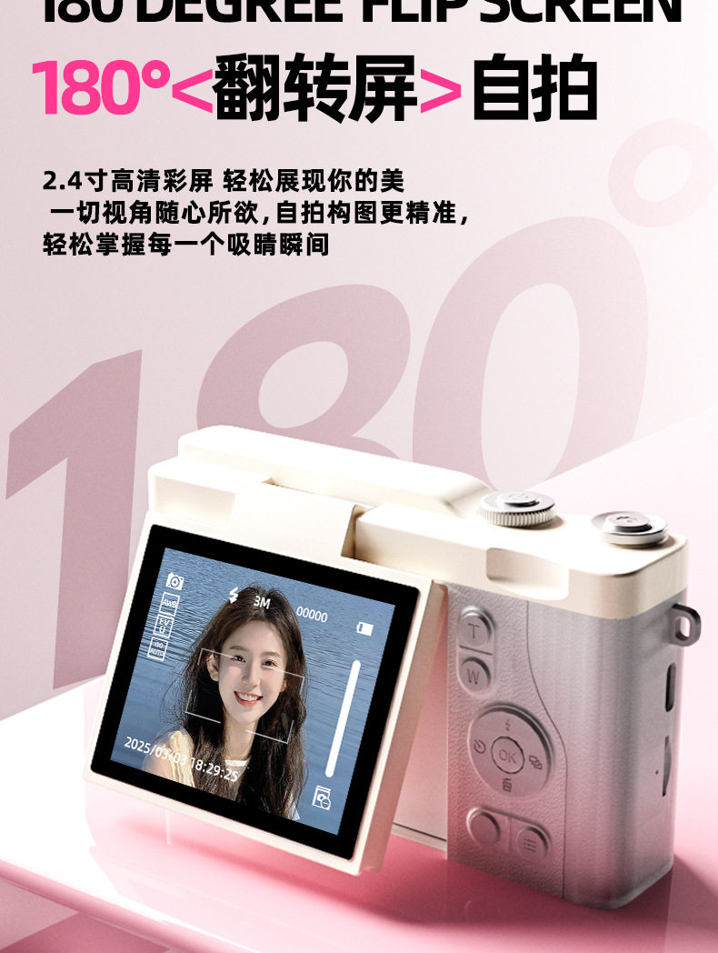 新品跨境超清翻转屏幕卡片机自拍校园学生ccd入门复古数码照相机