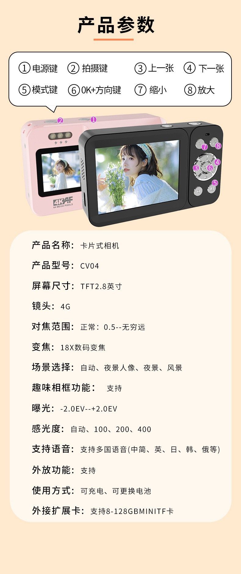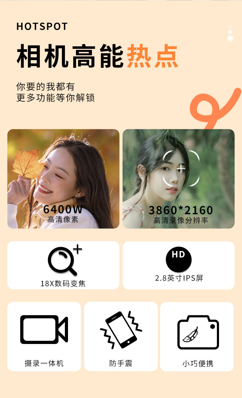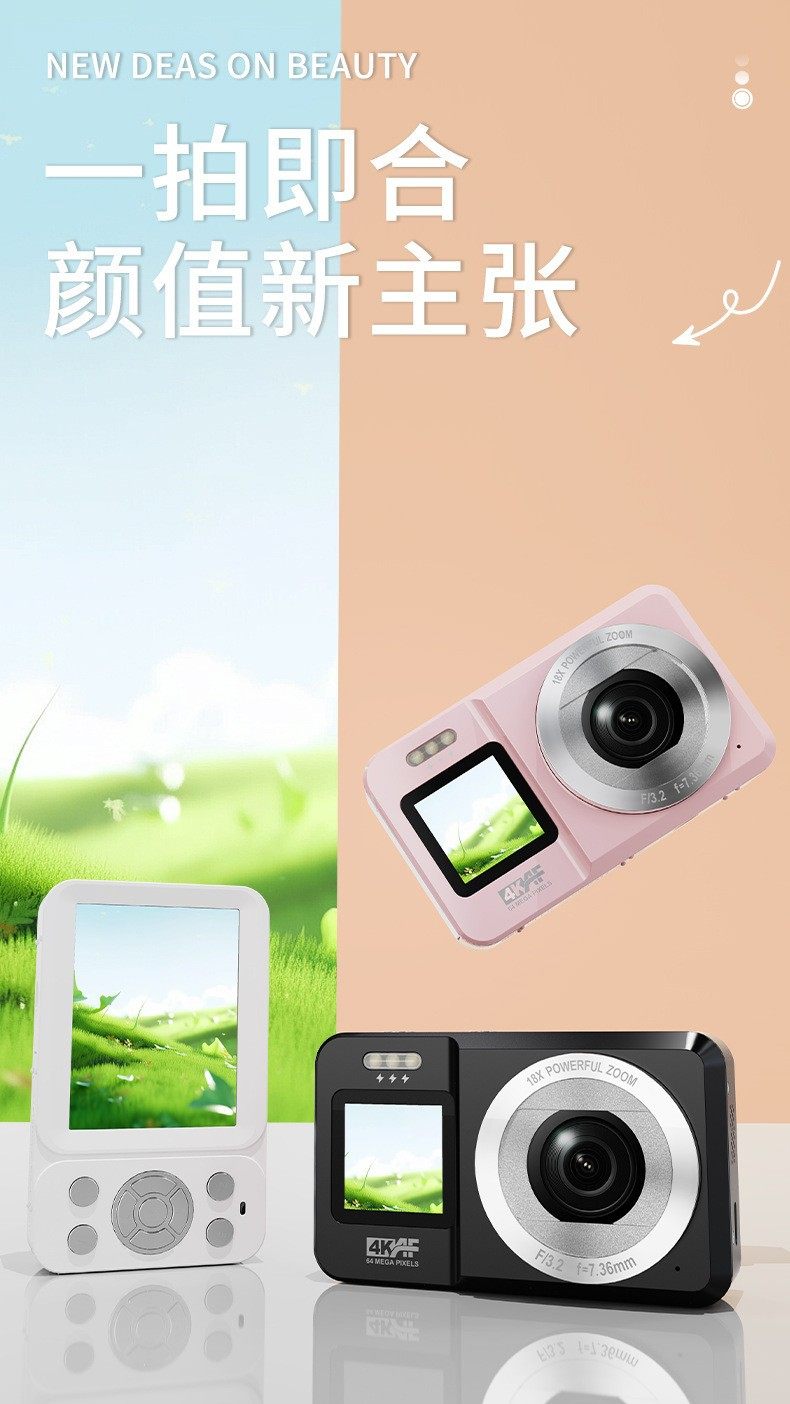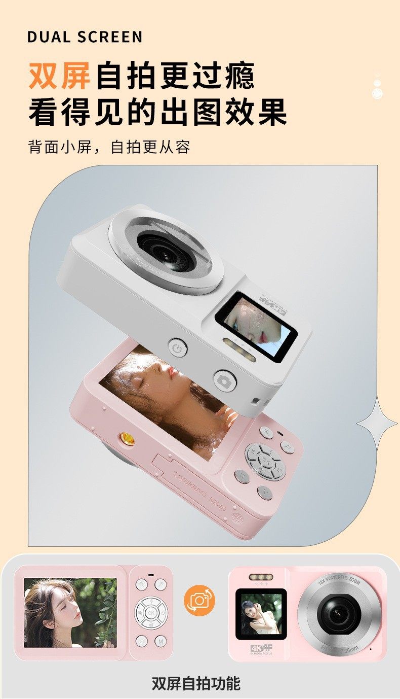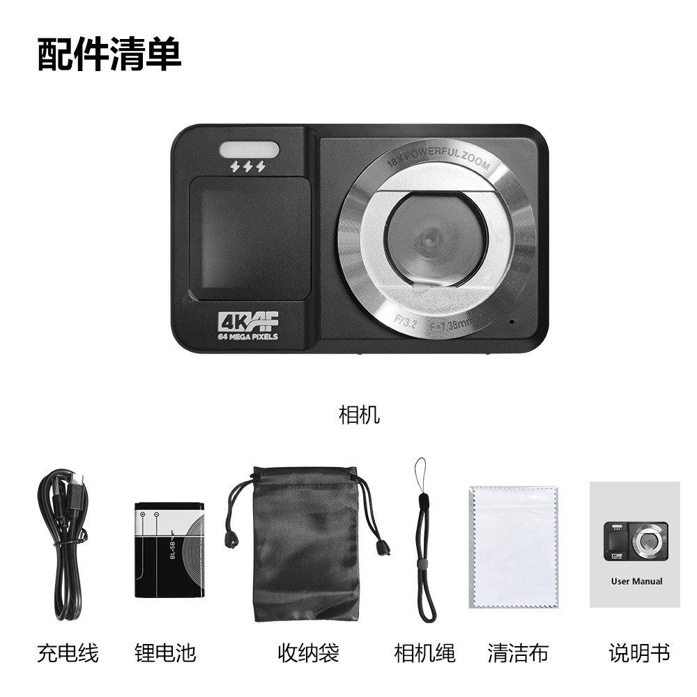 新款跨境4K高清双屏数码相机学生入门级自拍摄像旅行便携CCD相机