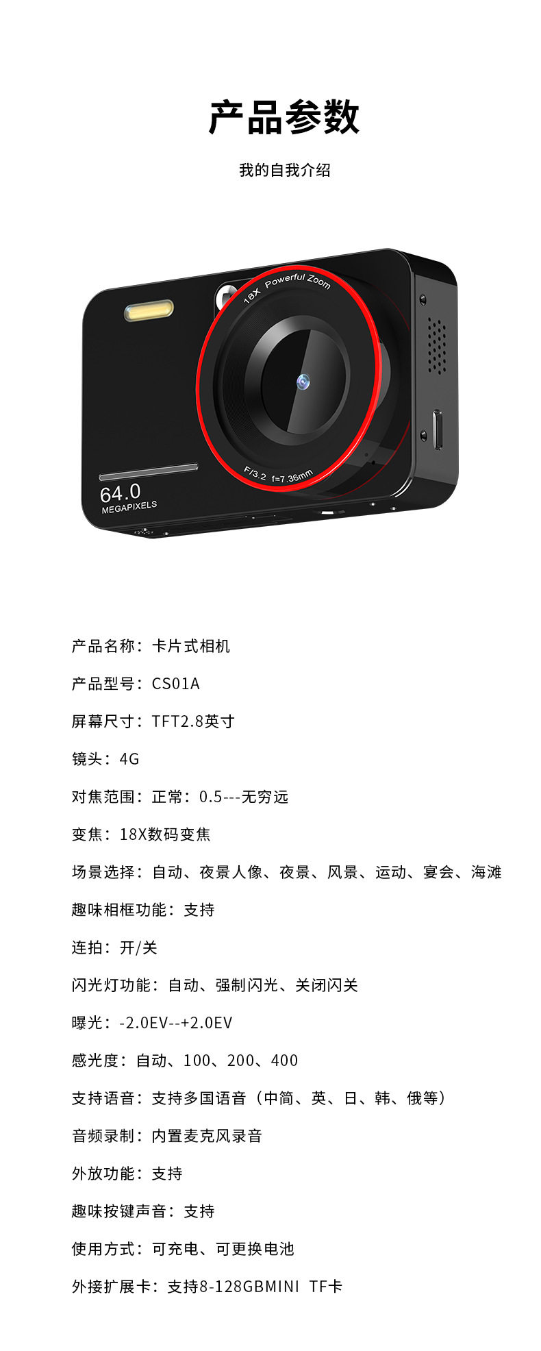 1.相机自身不带内存,需要配内存卡才能拍照,录视频。