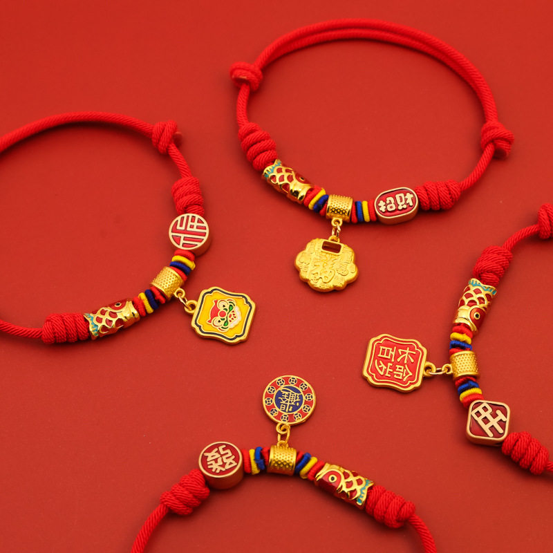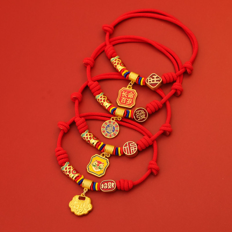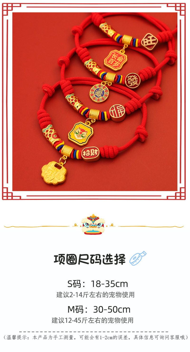 宠物新年长命锁长命百岁编绳项圈春节猫咪狗锦鲤项链红色装饰无声