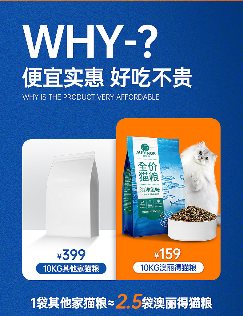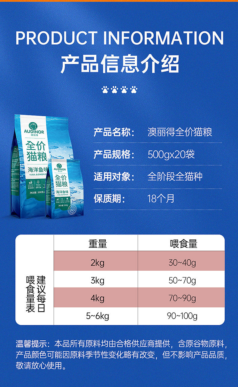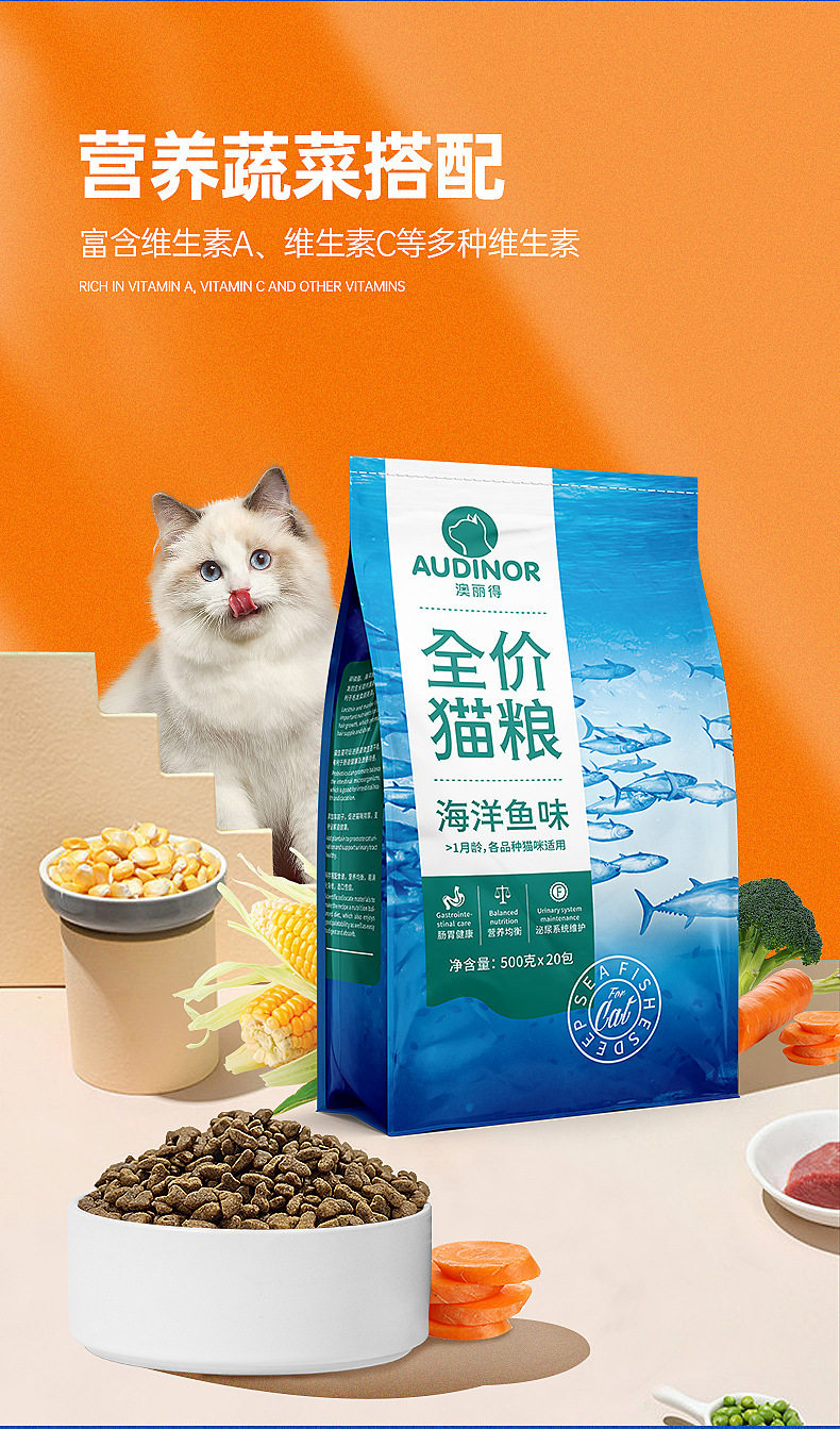 雷米高澳丽得全价猫粮海洋鱼味猫用主粮500g发腮成幼猫咪食物