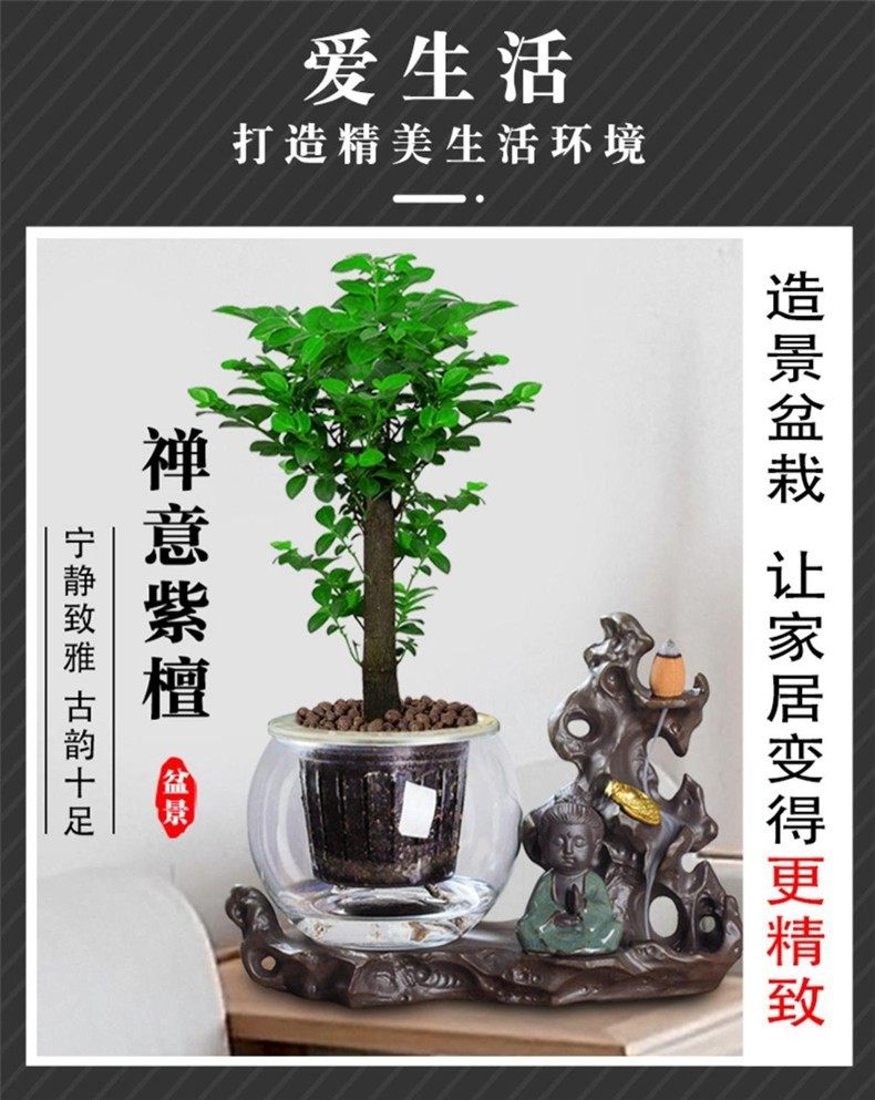 小叶紫檀盆景植物树苗盆栽办公室桌面室内花卉绿植好养活禅意摆件