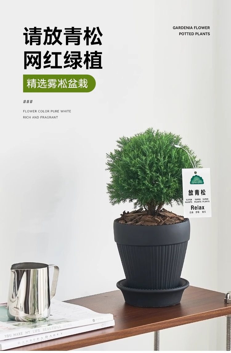 放青松雾凇盆栽客厅办公室桌面绿植小盆景四季常青好养活情绪稳定