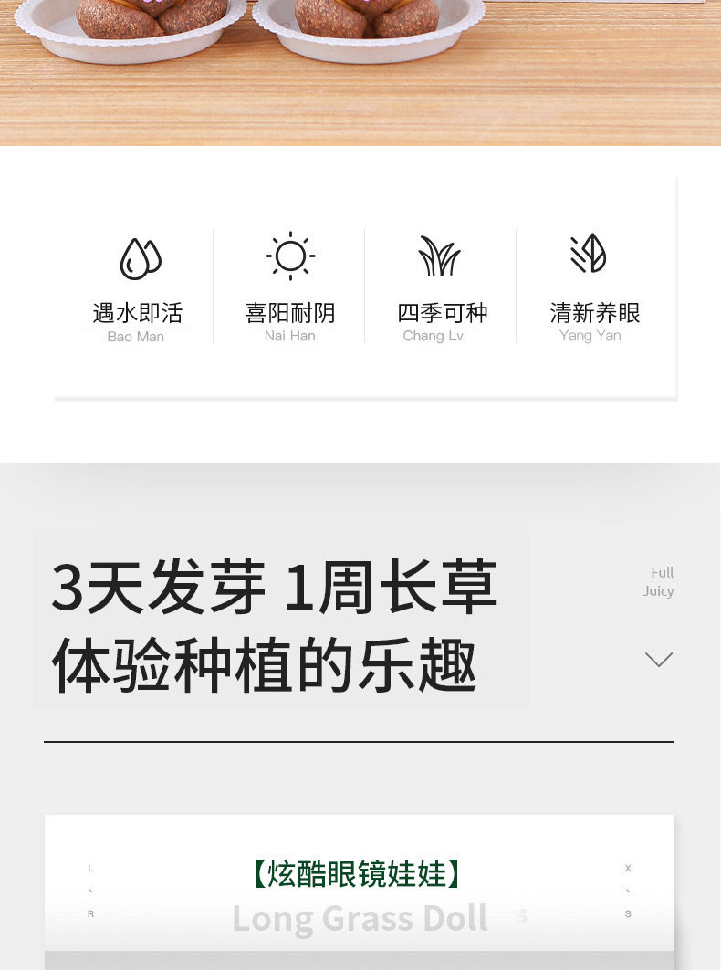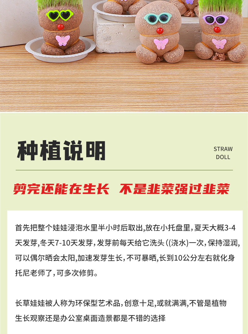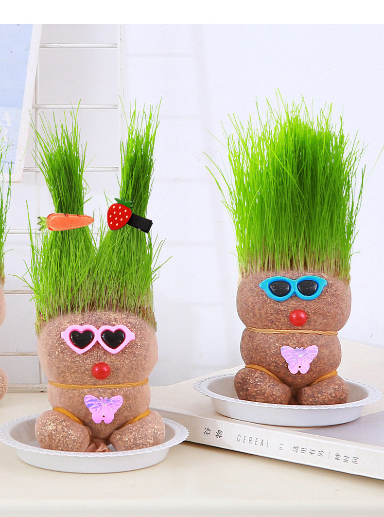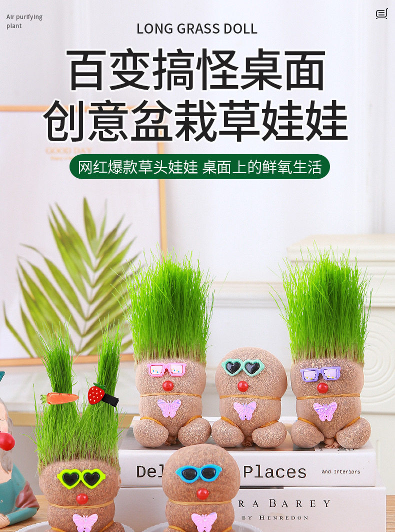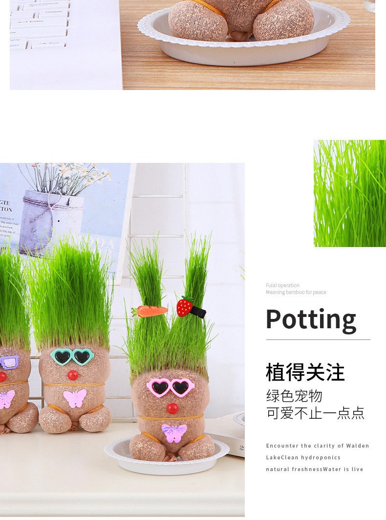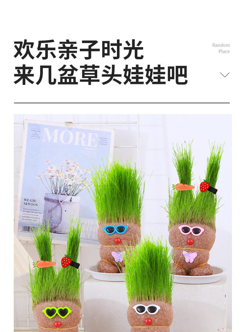长草娃娃小盆栽草头娃娃好养桌面绿植礼物水培儿童种植易活小植物