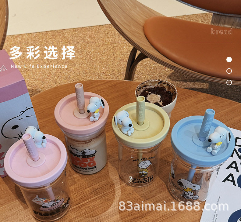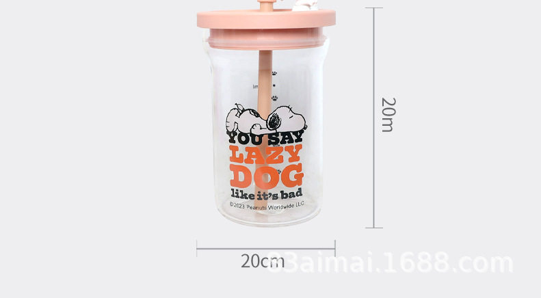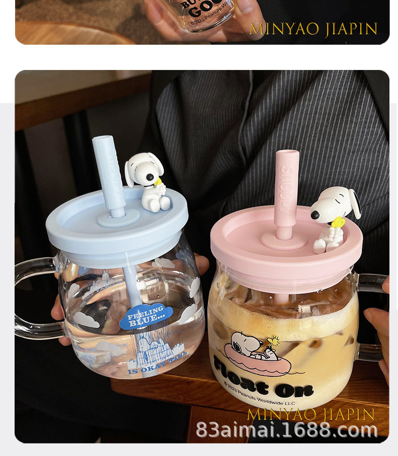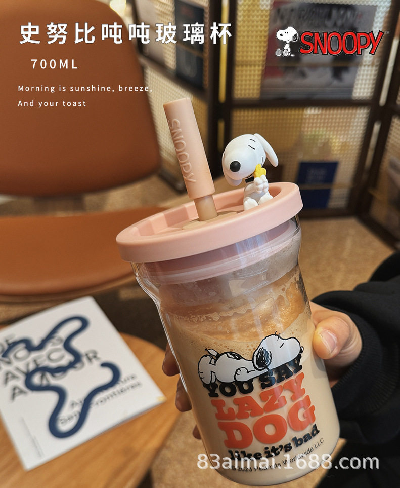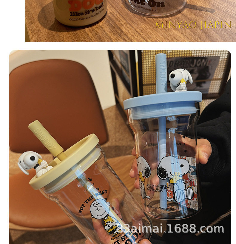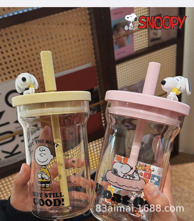 史努比大容量玻璃杯女生高颜值家用喝水杯成人耐高温吸管杯牛奶杯