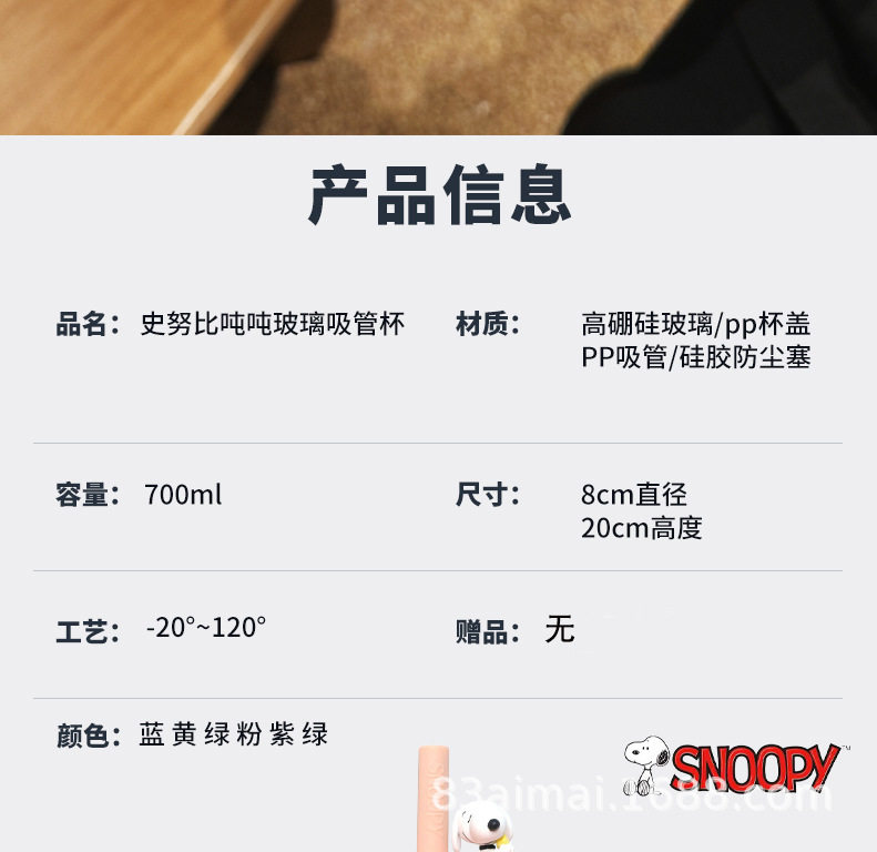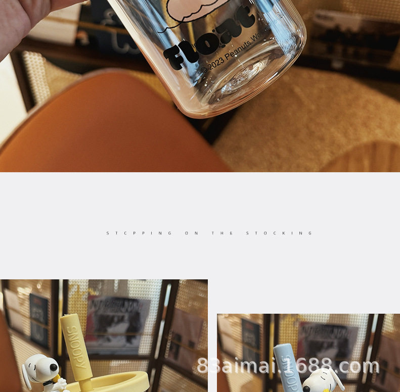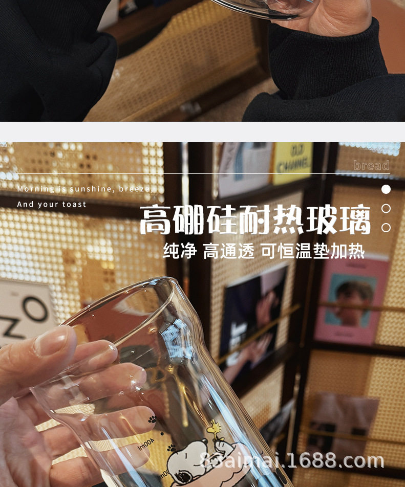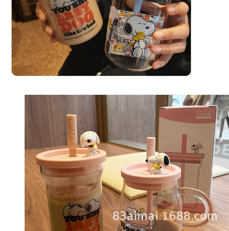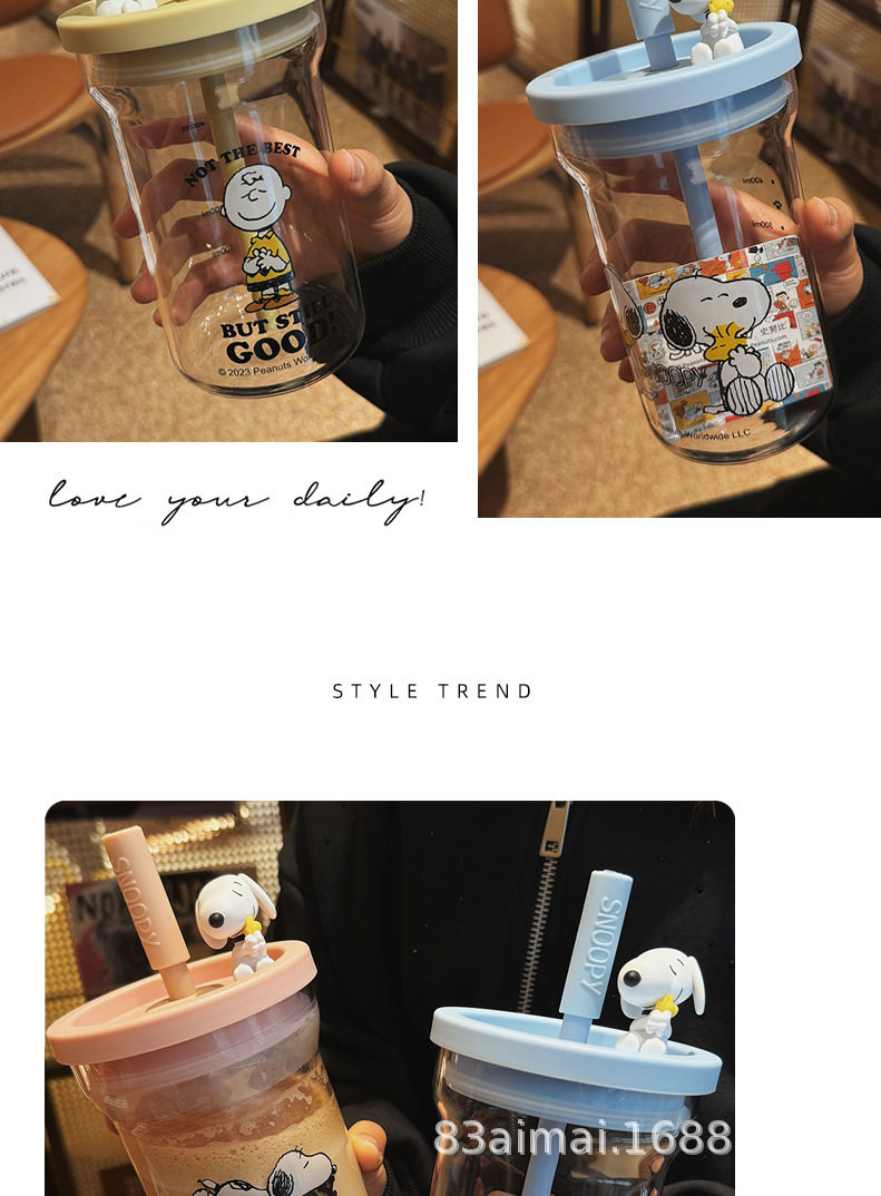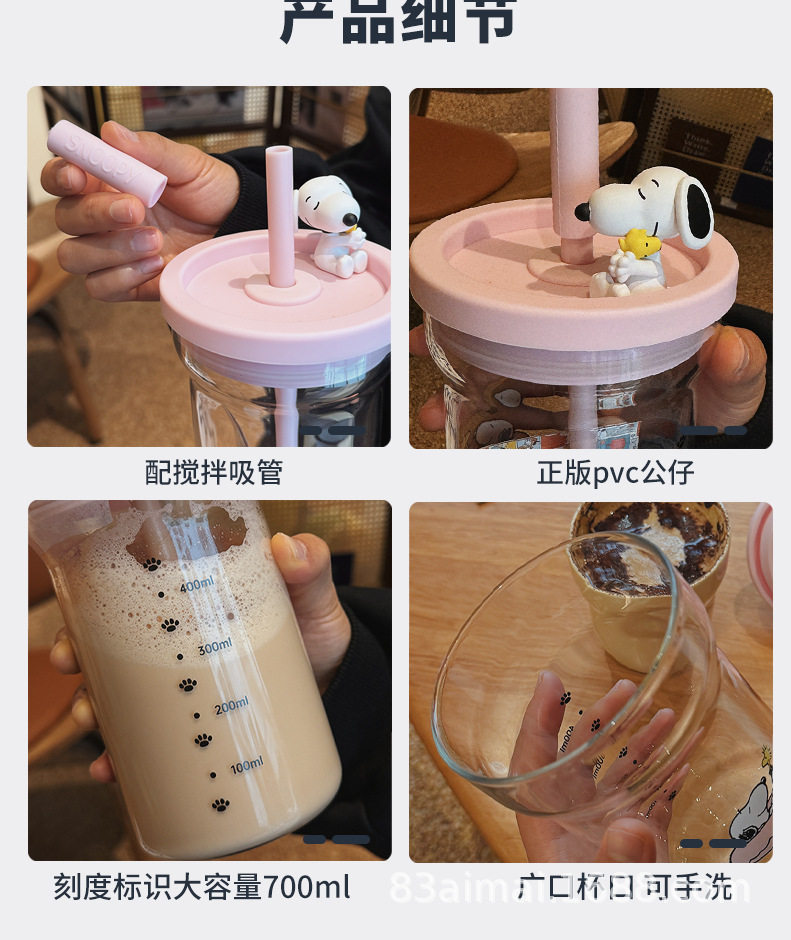史努比大容量玻璃杯女生高颜值家用喝水杯成人耐高温吸管杯牛奶杯