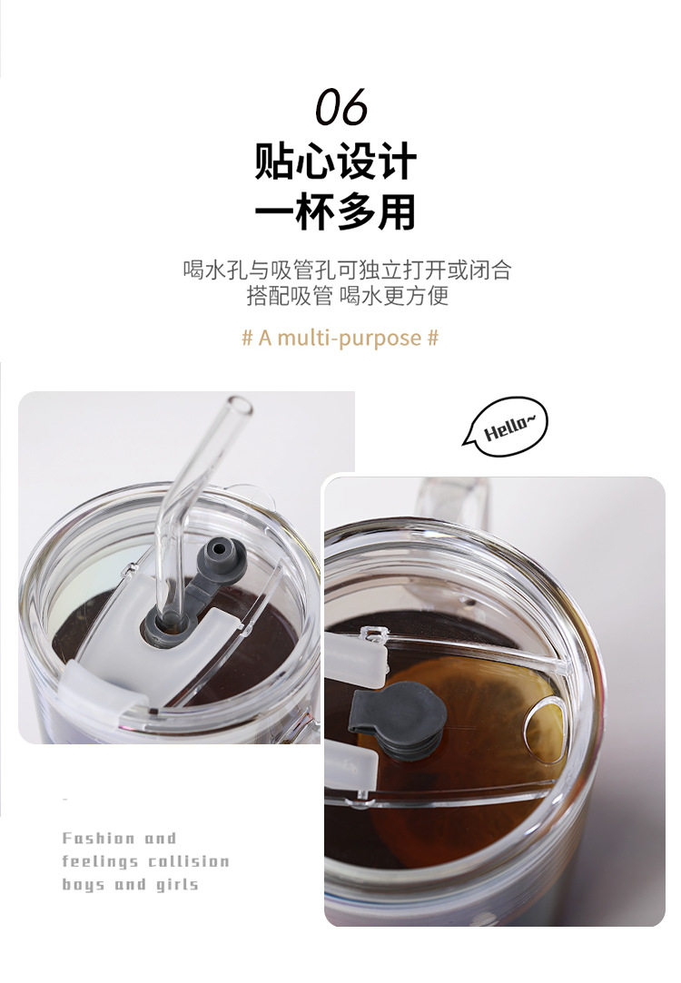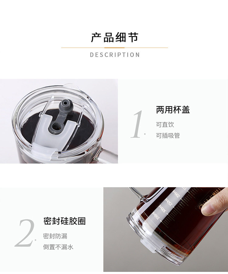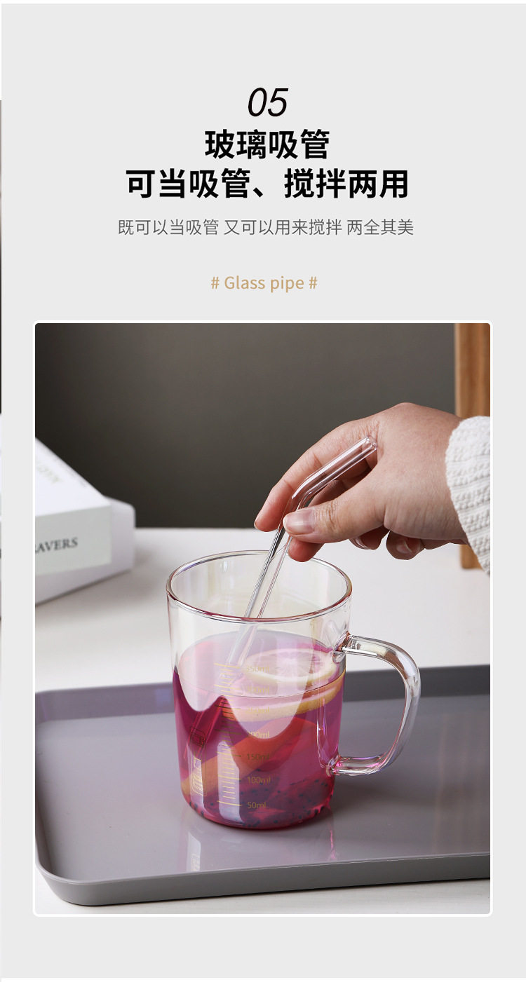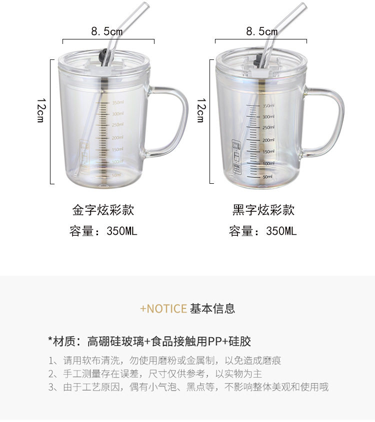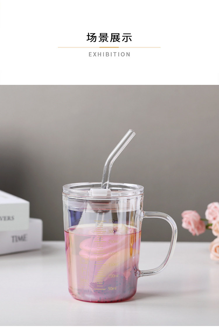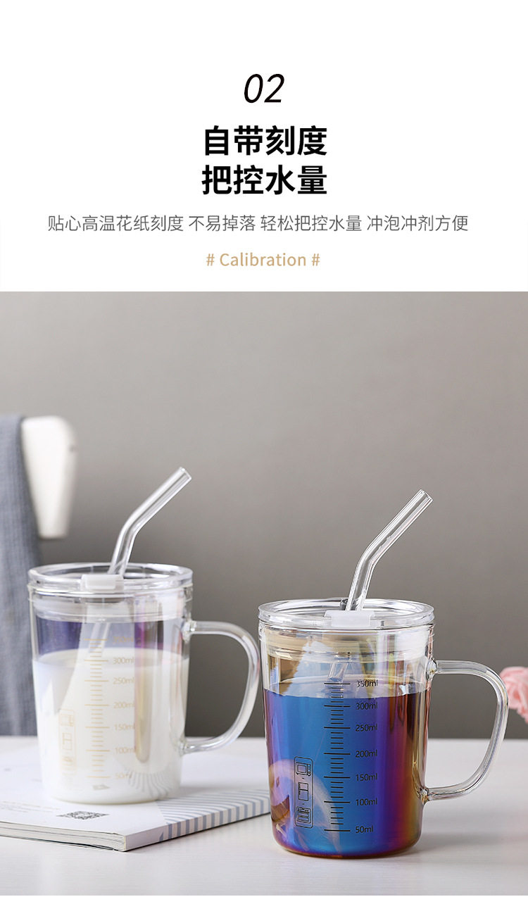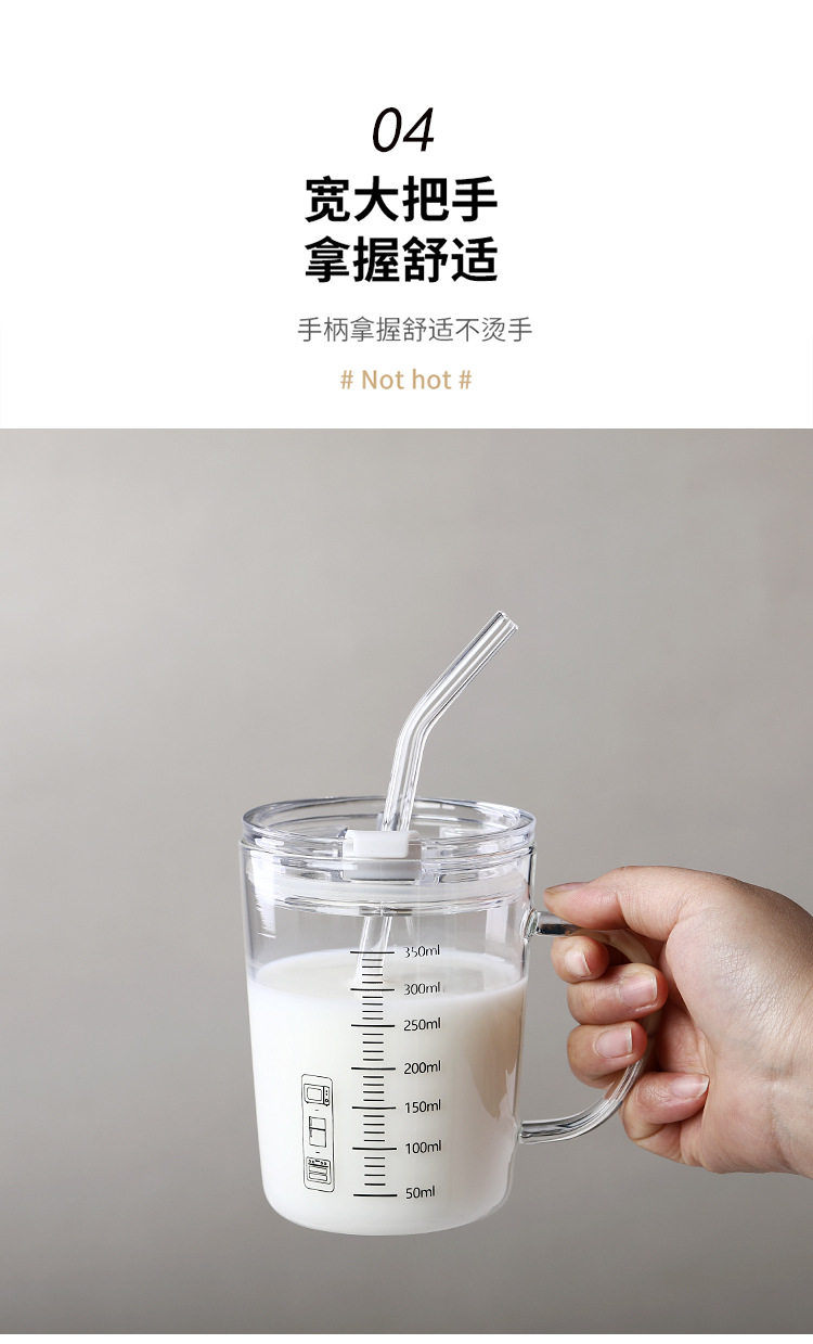 刻度牛奶杯高颜值喝水咖啡杯带盖家用微波炉吸管玻璃杯吸管杯