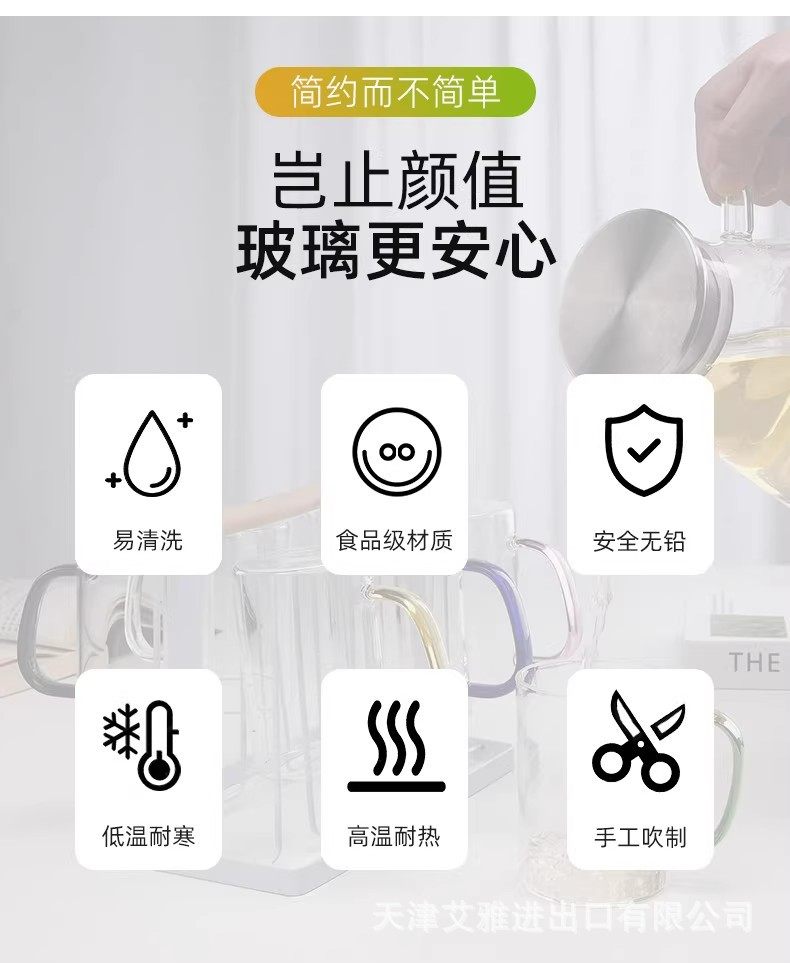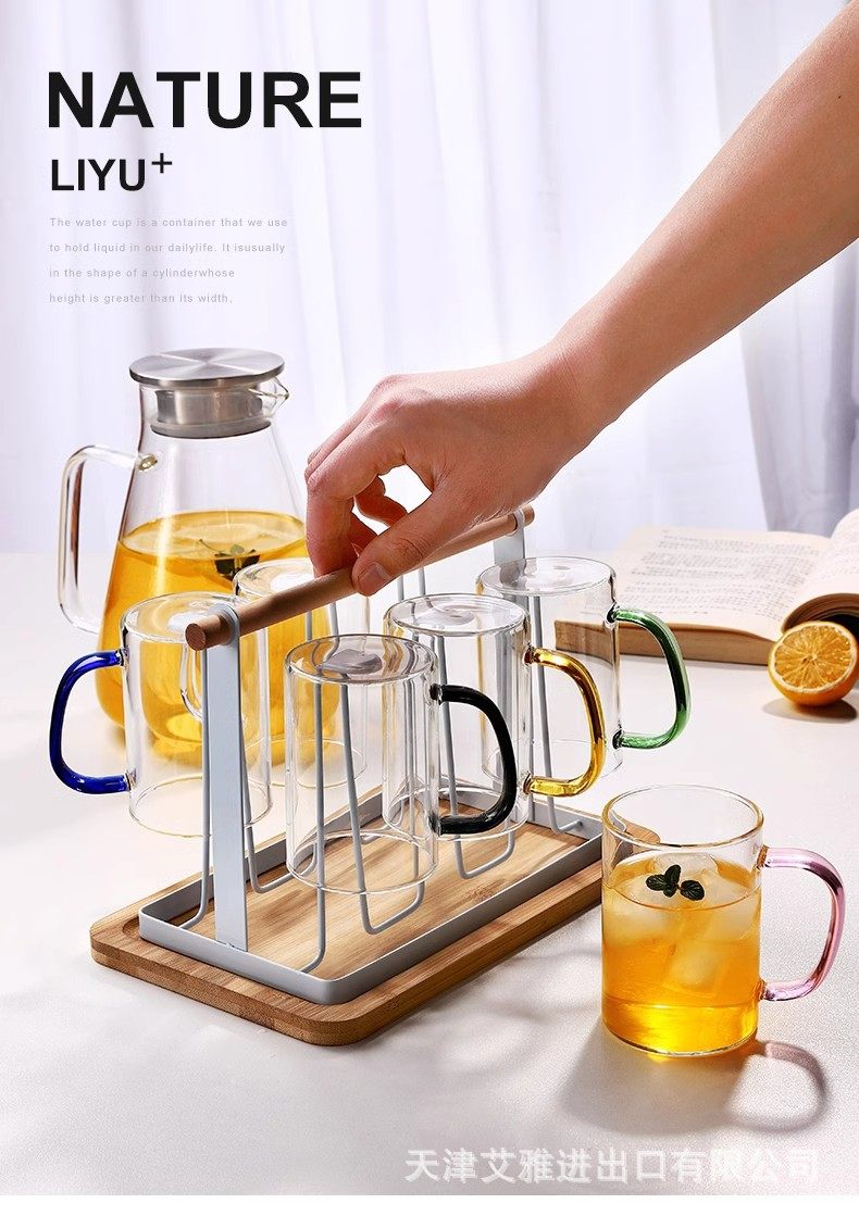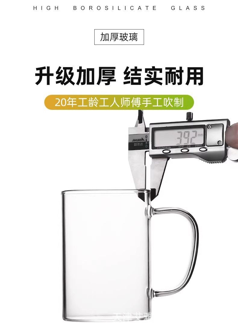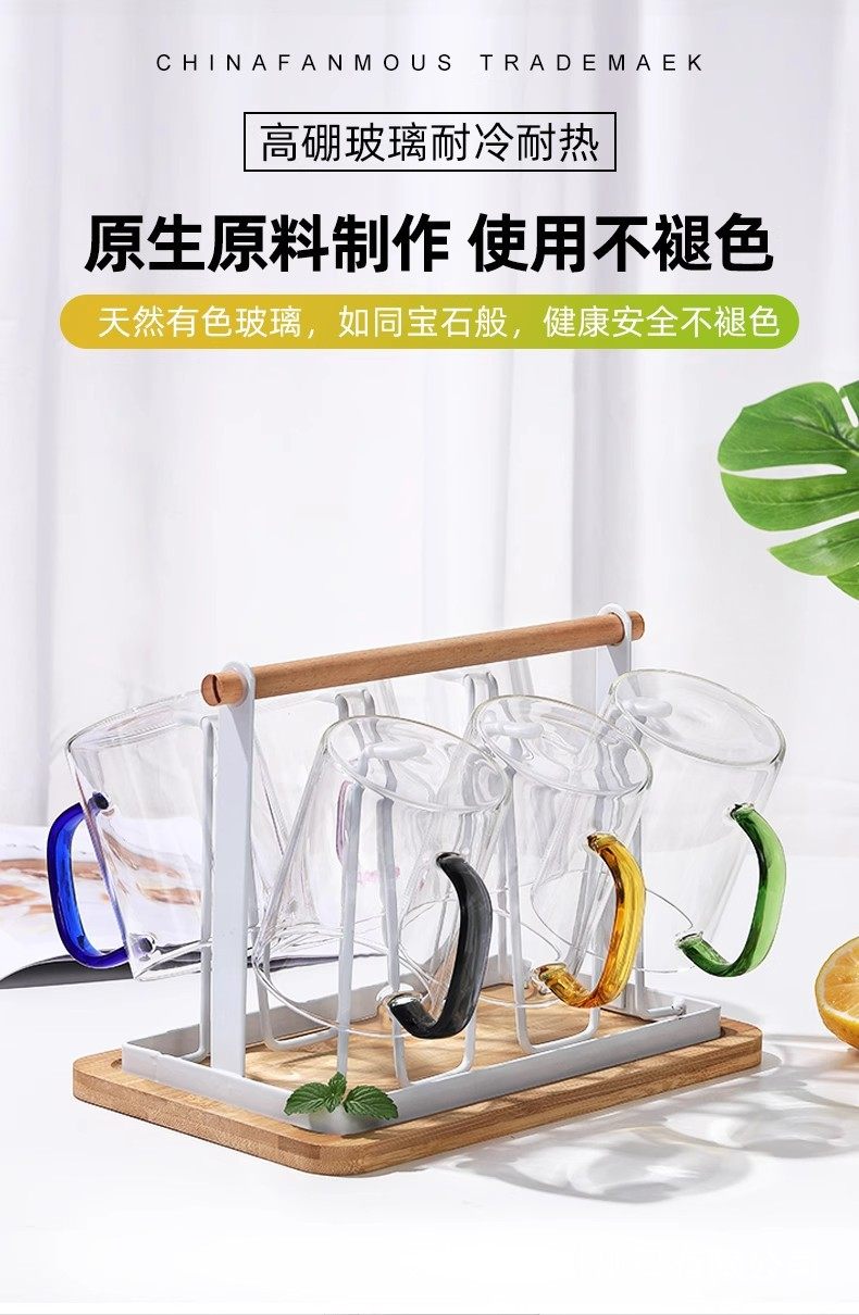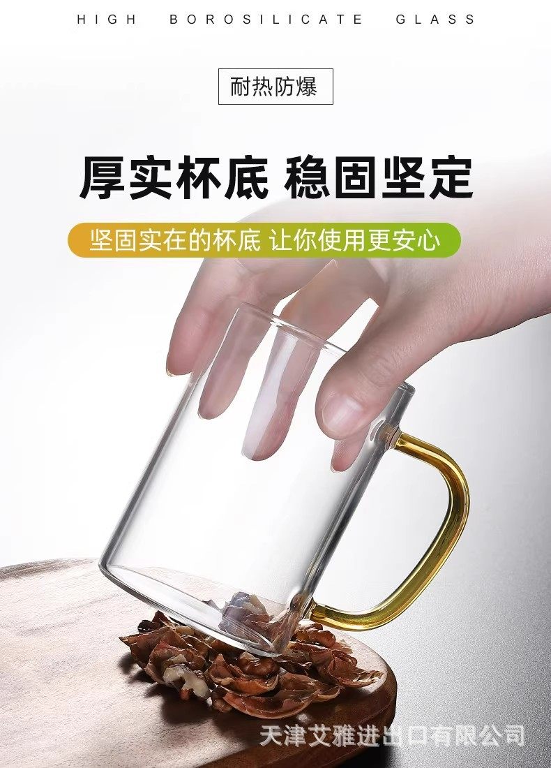 高硼硅玻璃杯带把手杯子喝水家用耐高温家庭待客水杯泡茶茶杯套装