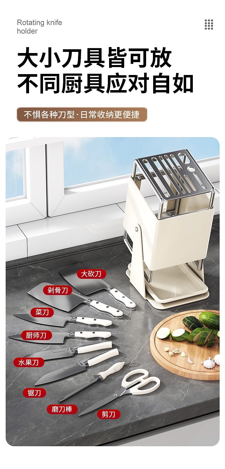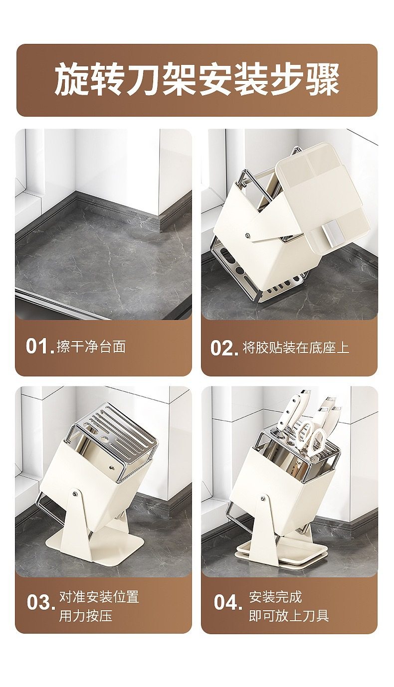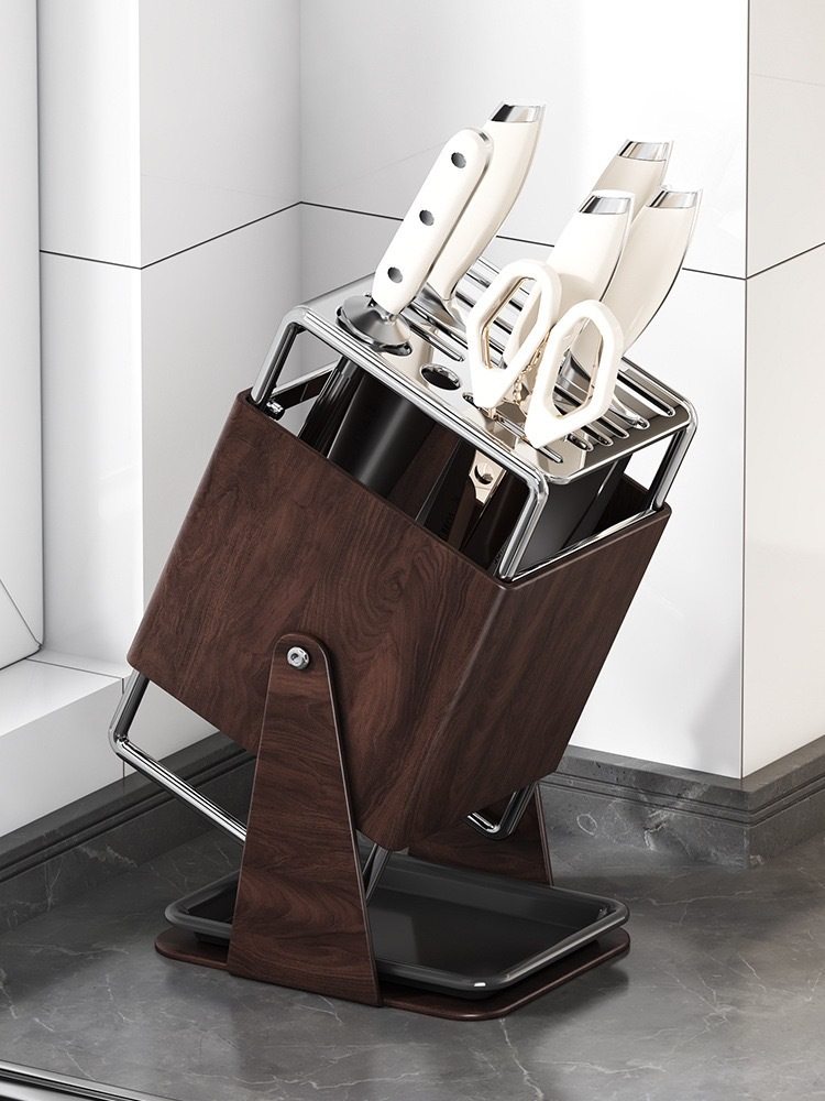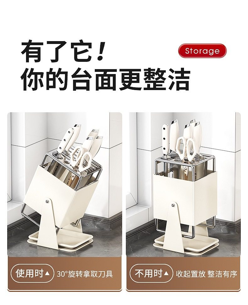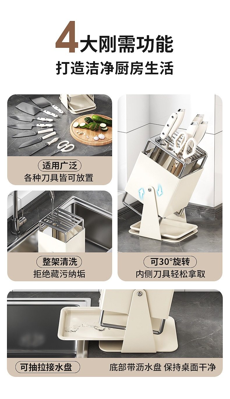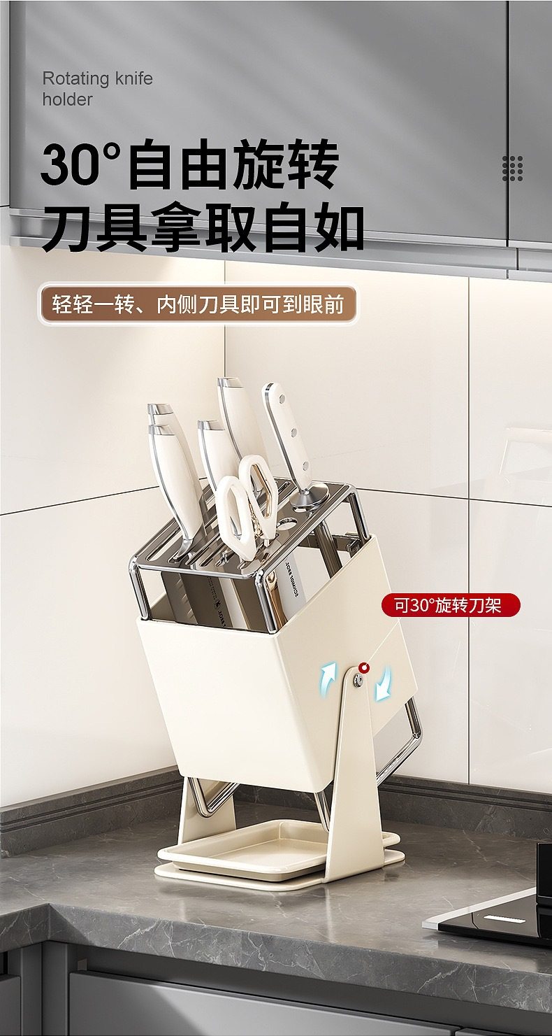 厨房台面旋转刀架多功能刀具沥水收纳架家用不锈钢一体刀座置物架