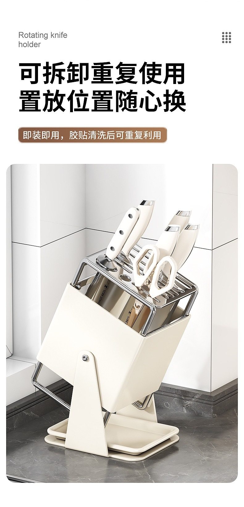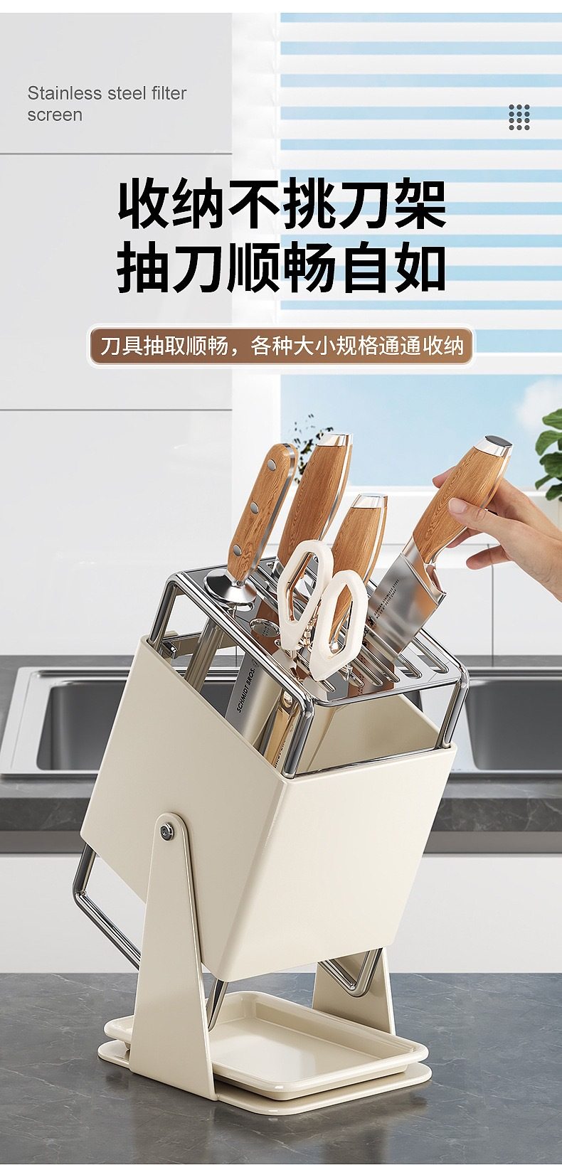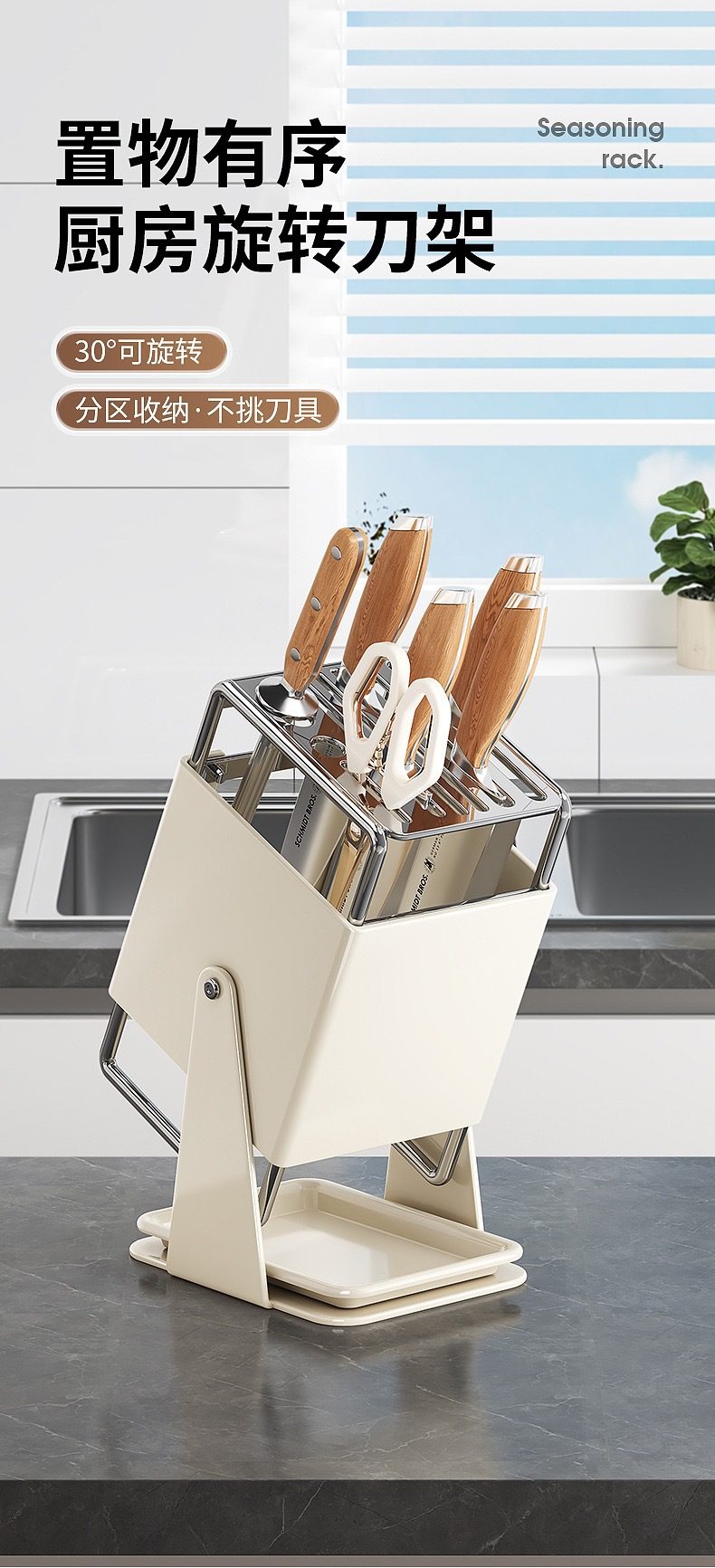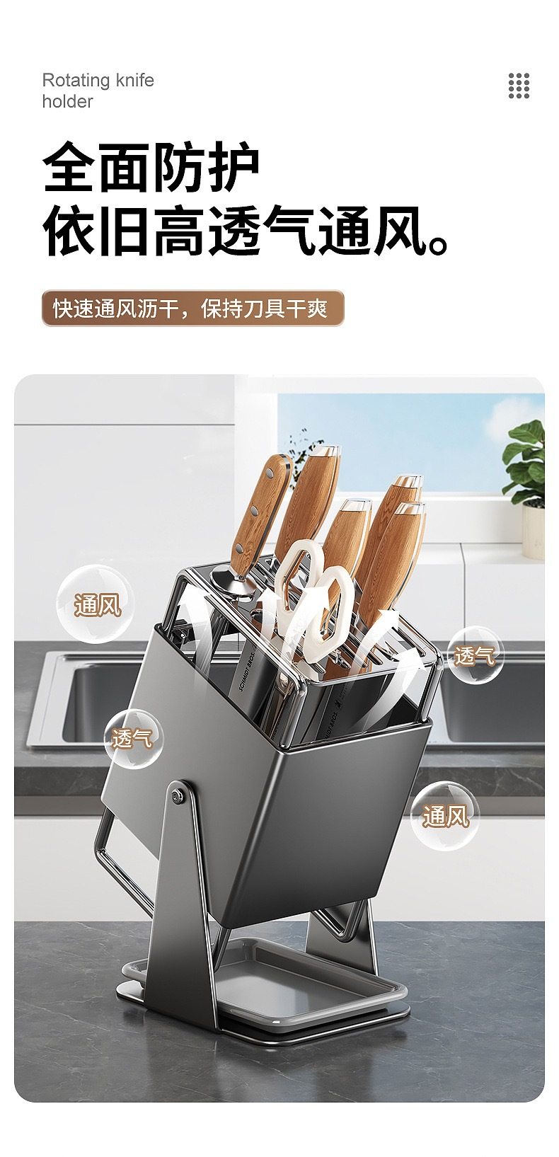 厨房台面旋转刀架多功能刀具沥水收纳架家用不锈钢一体刀座置物架