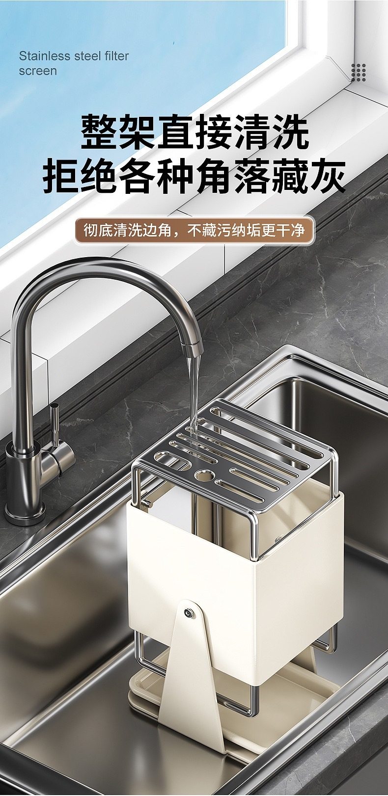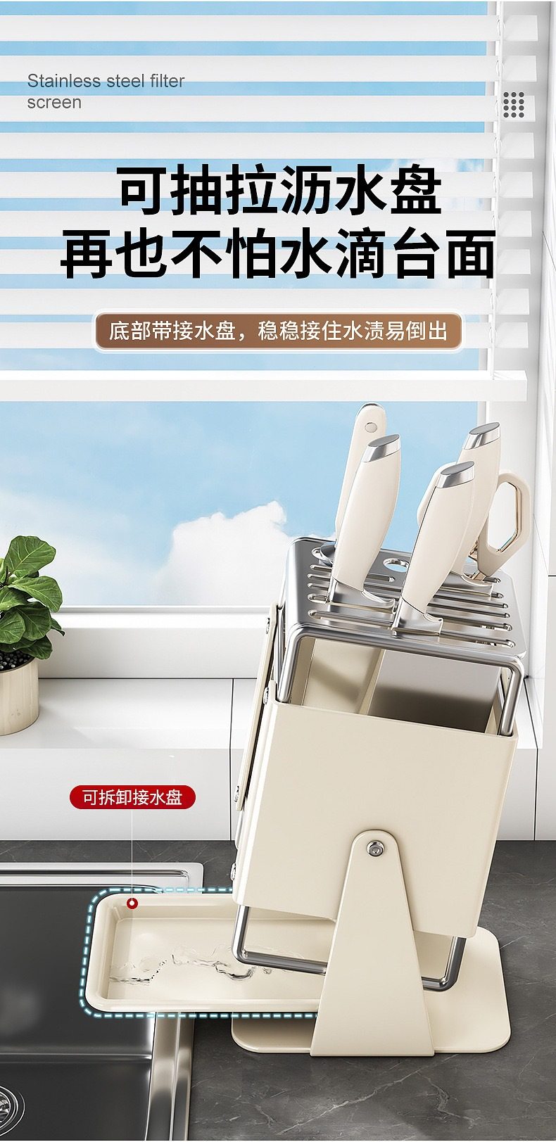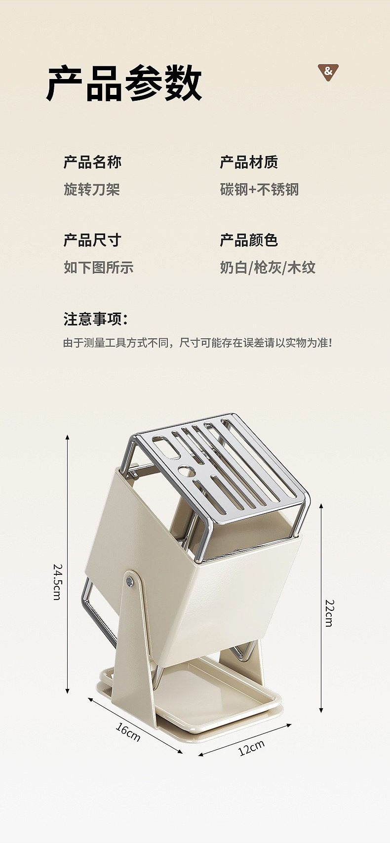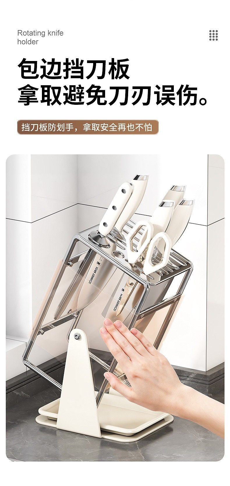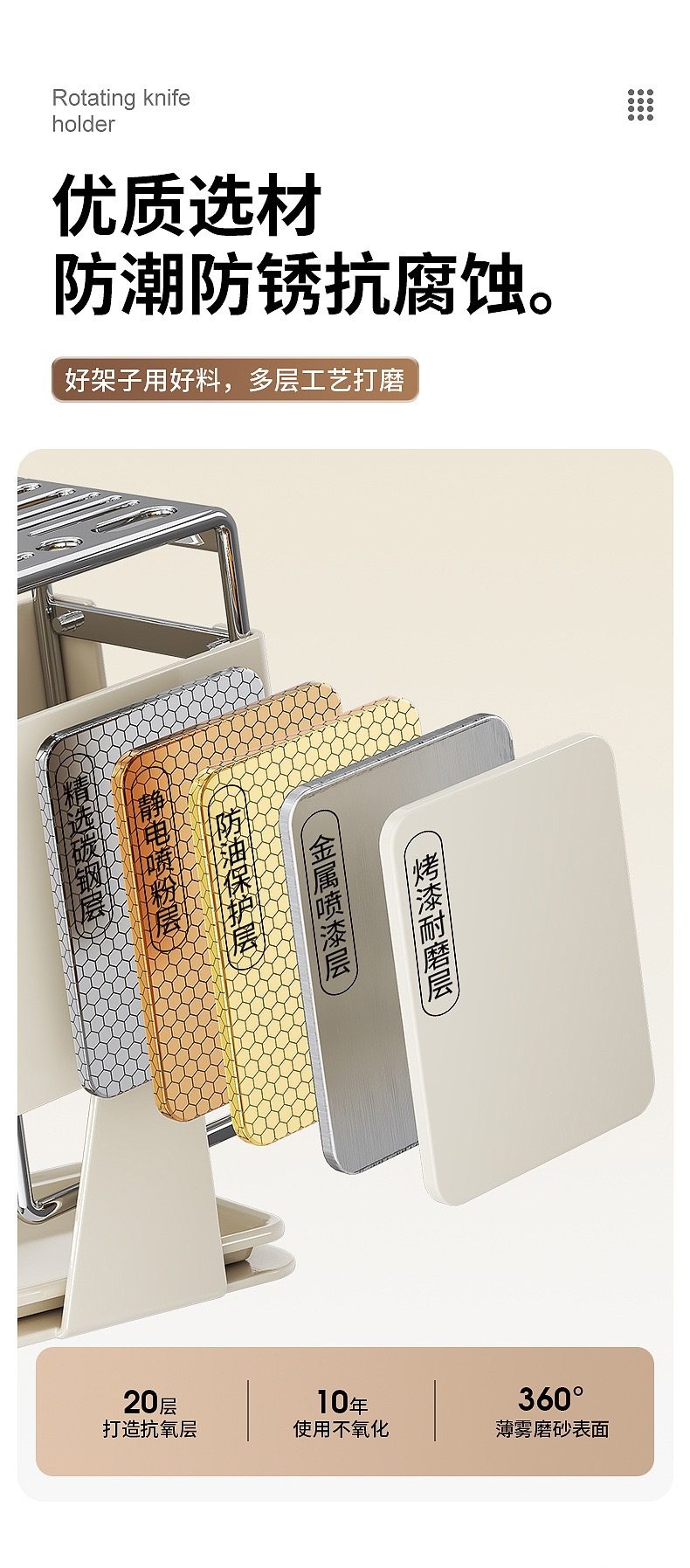 厨房台面旋转刀架多功能刀具沥水收纳架家用不锈钢一体刀座置物架