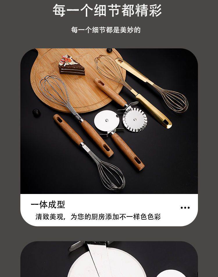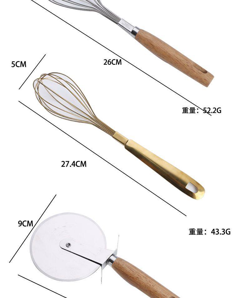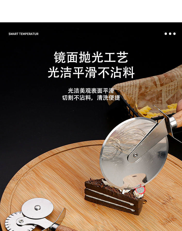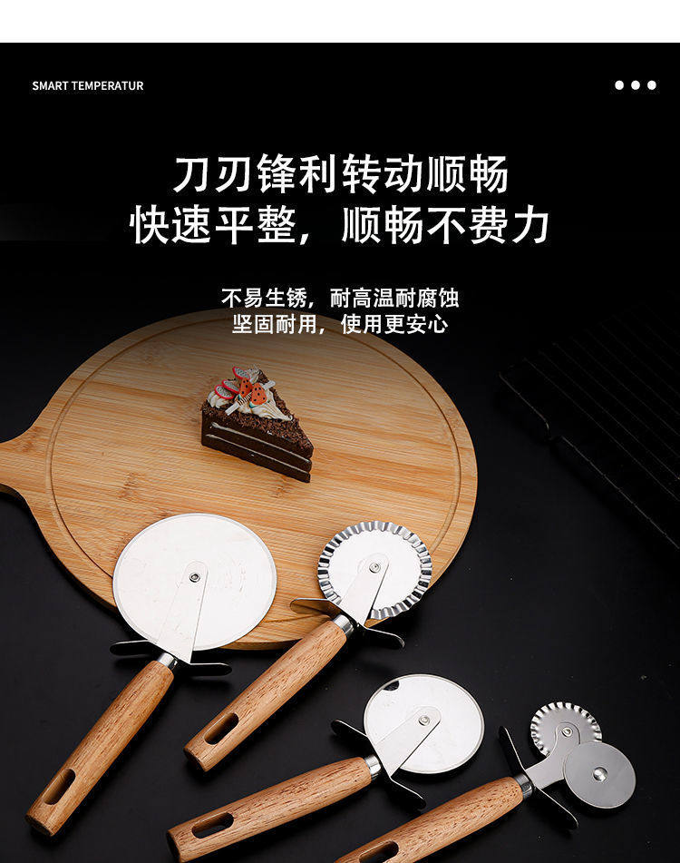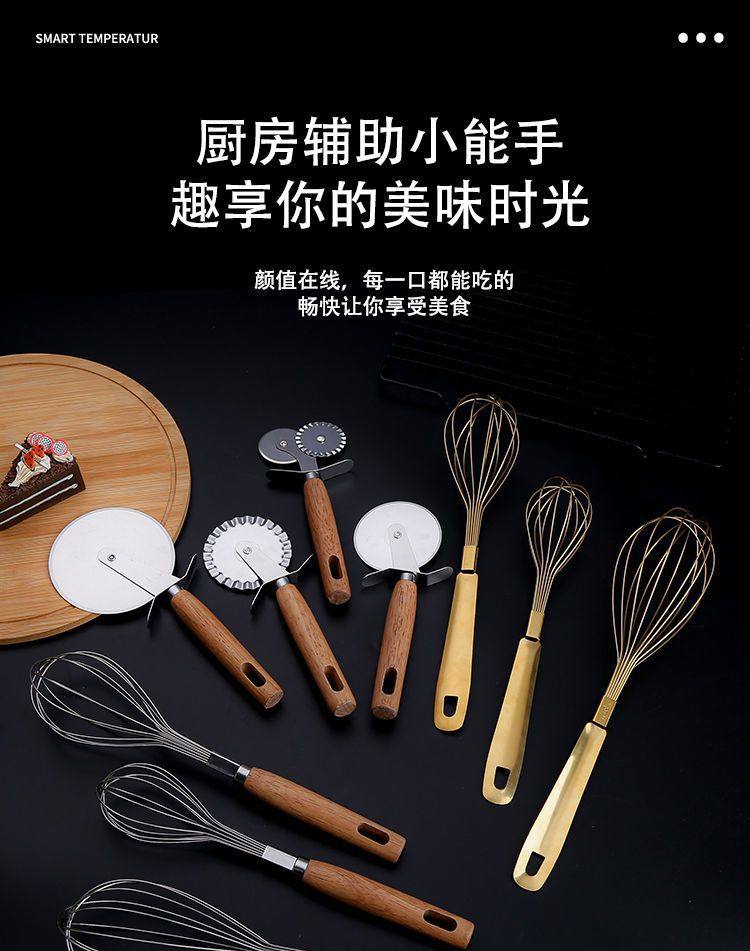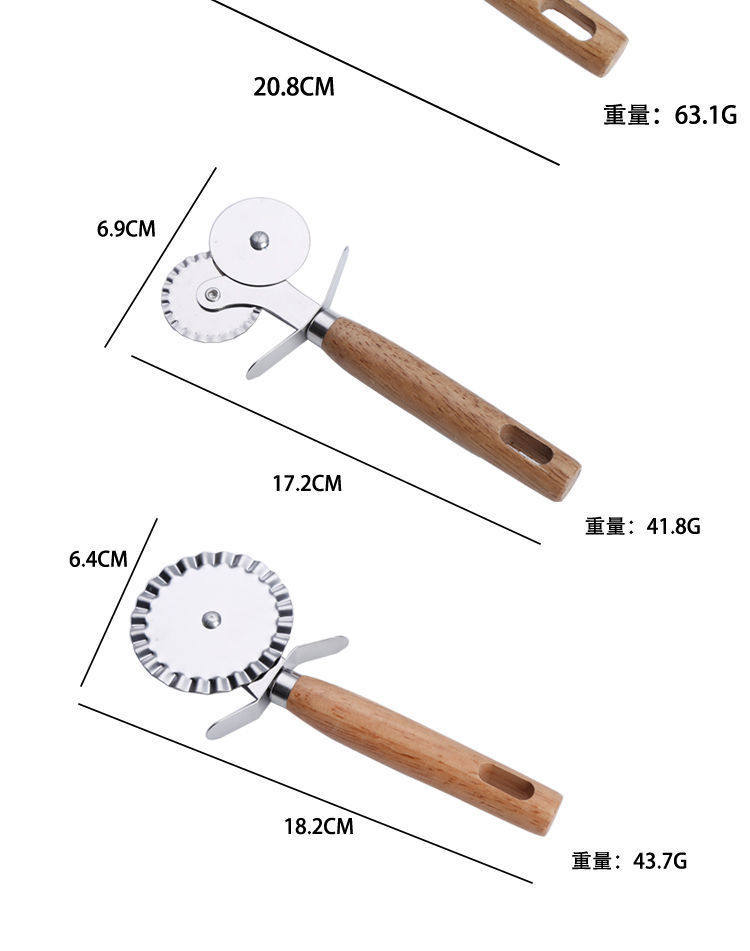 304木柄打蛋器不锈钢披萨刀蛋糕铲打蛋器厨房小工具系列花边双轮