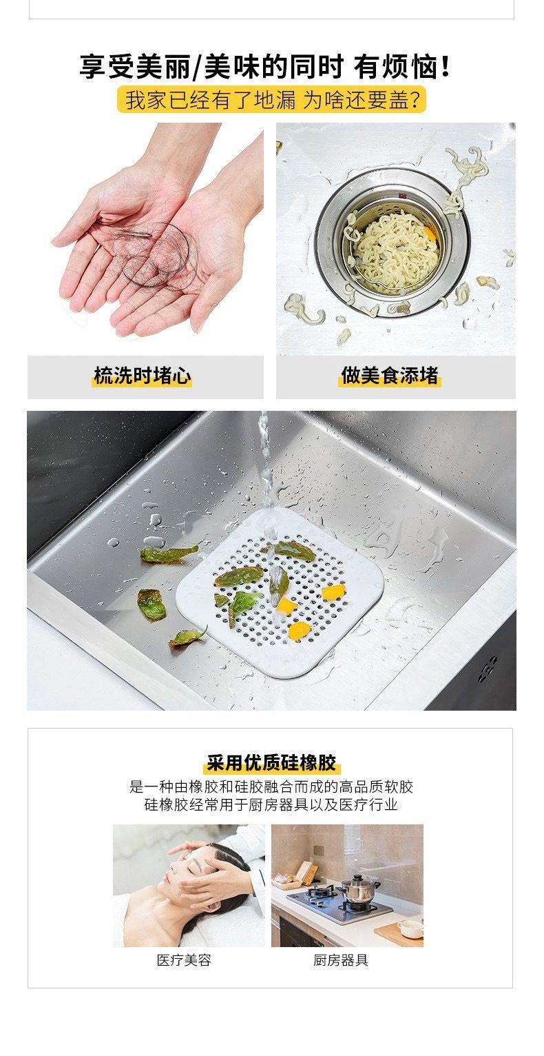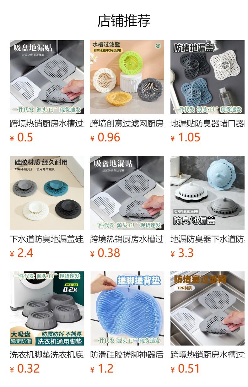 跨境热销厨房水槽过滤网水池过滤器地漏贴毛发头发防堵吸盘地漏盖