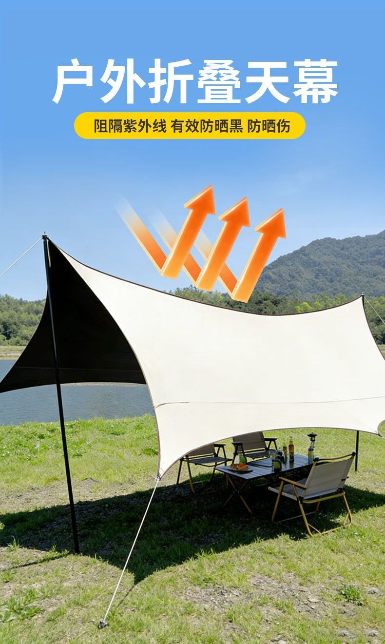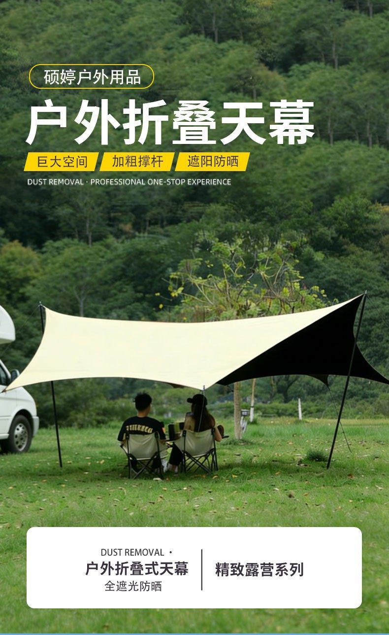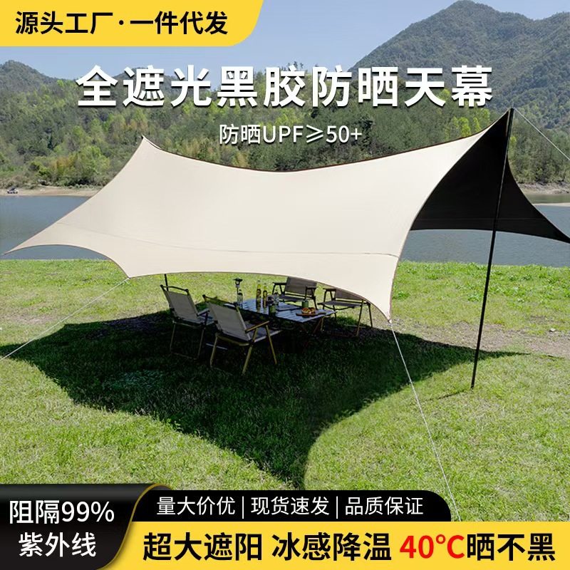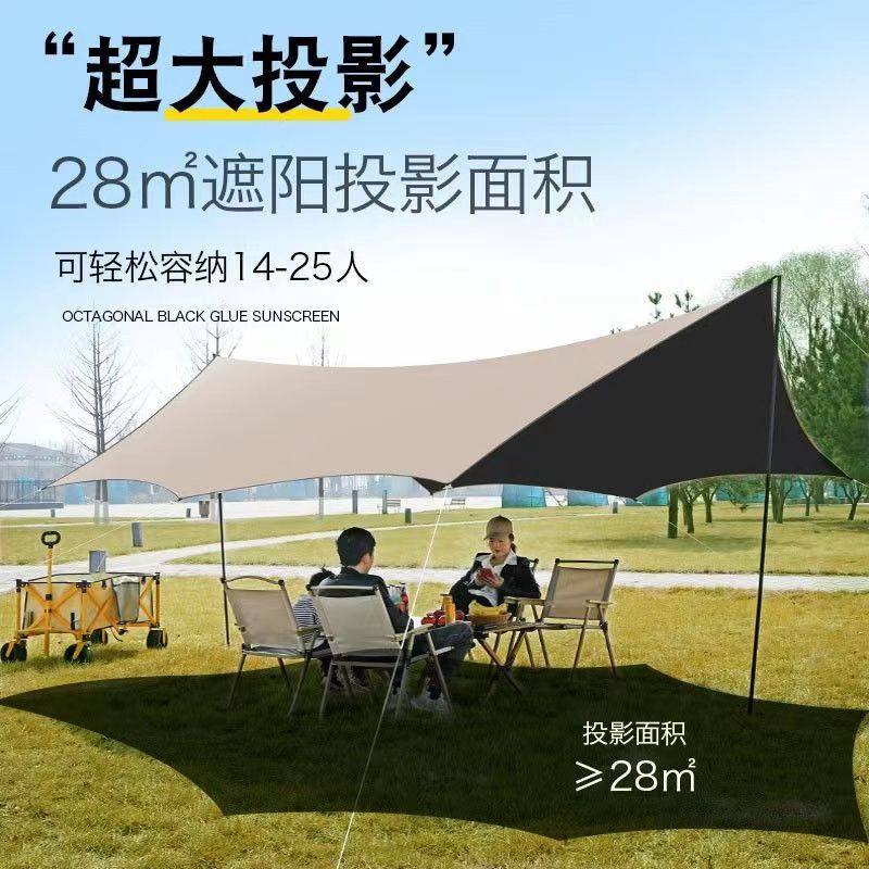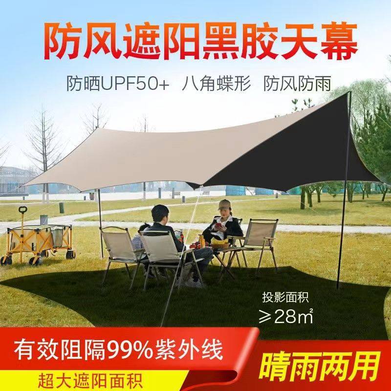 黑胶天幕帐篷户外便携式大号露营装备野营野餐防晒八角蝶形遮阳棚