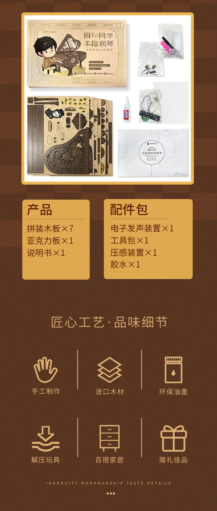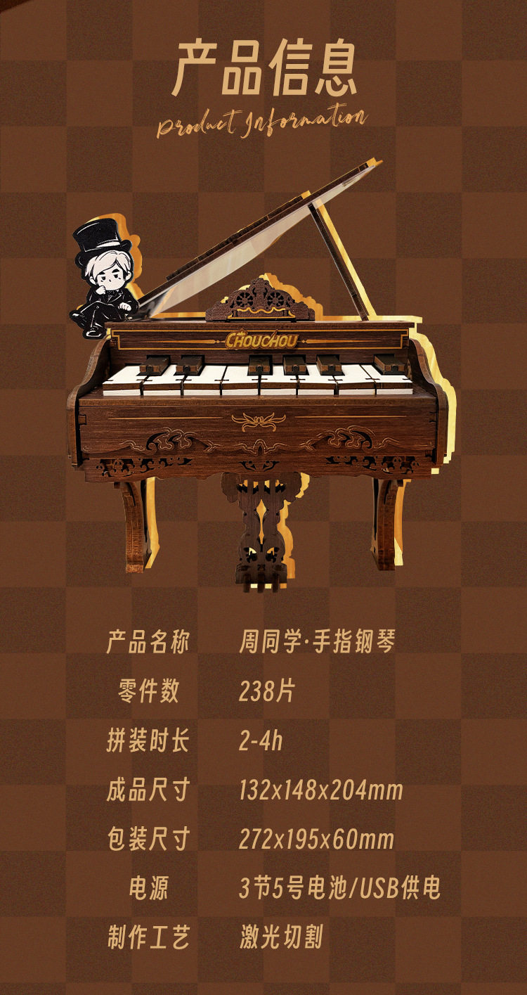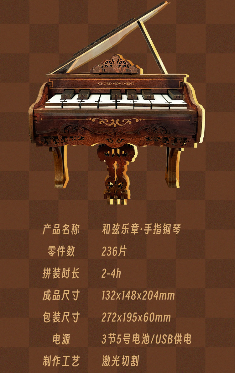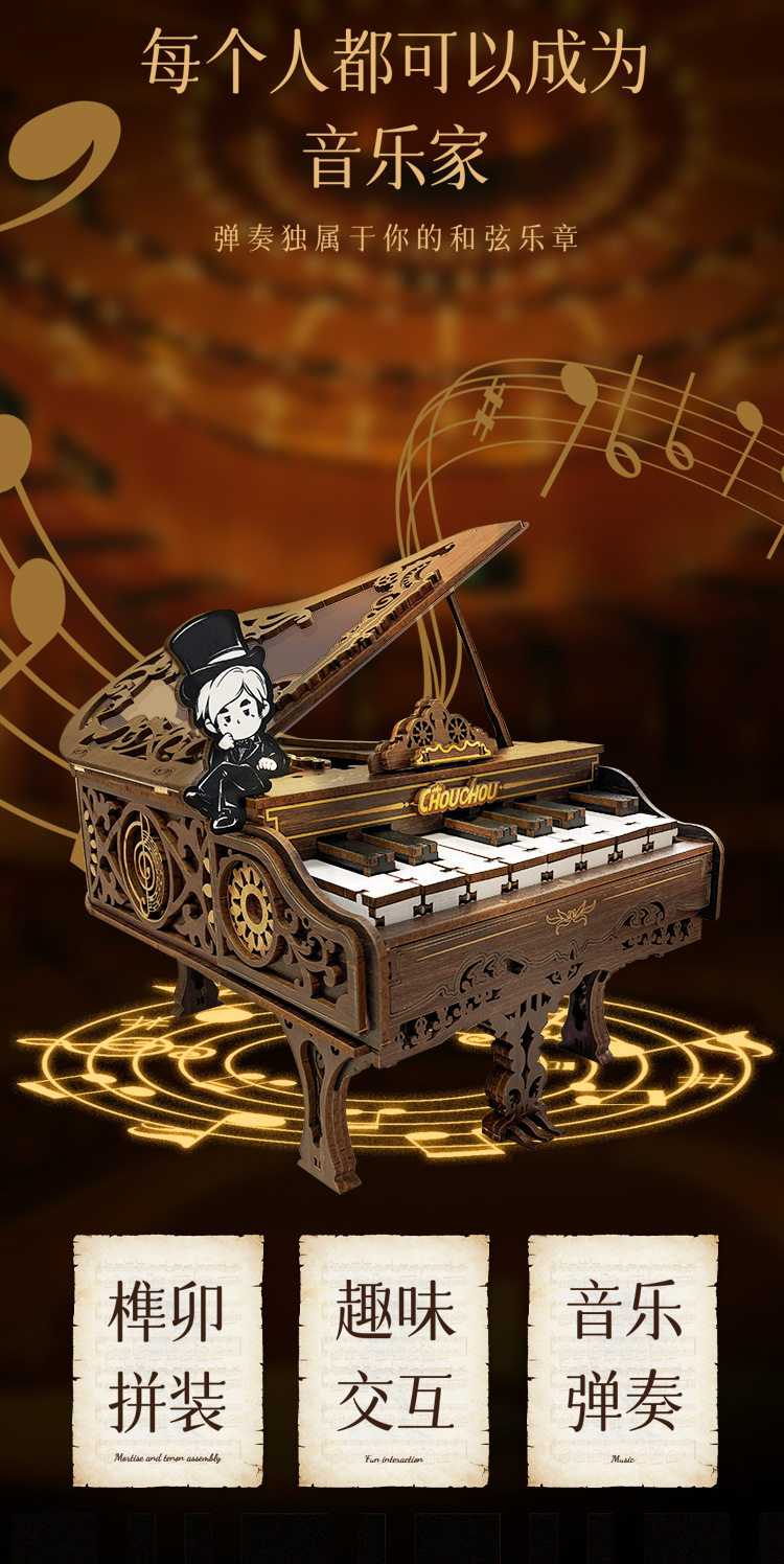 钢琴积木可弹奏模型diy手工男女孩礼物生日拼装益智玩具礼物