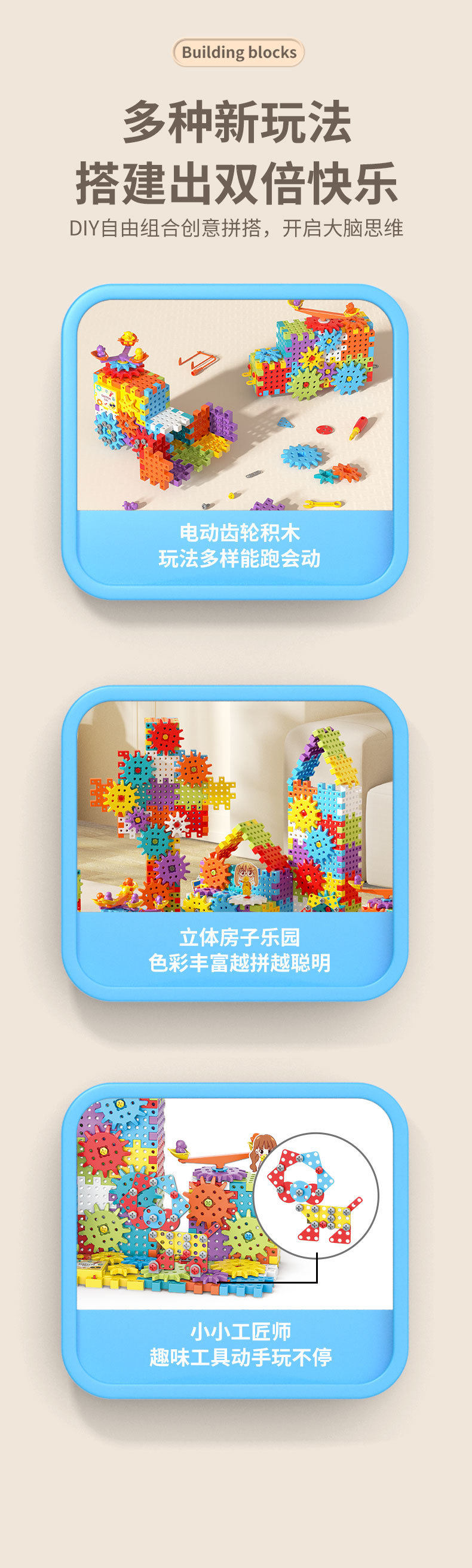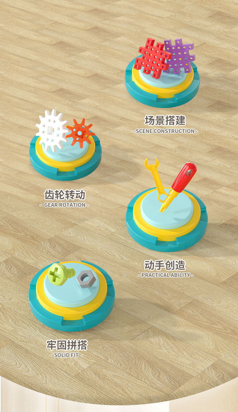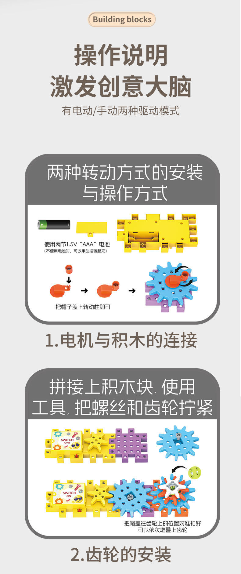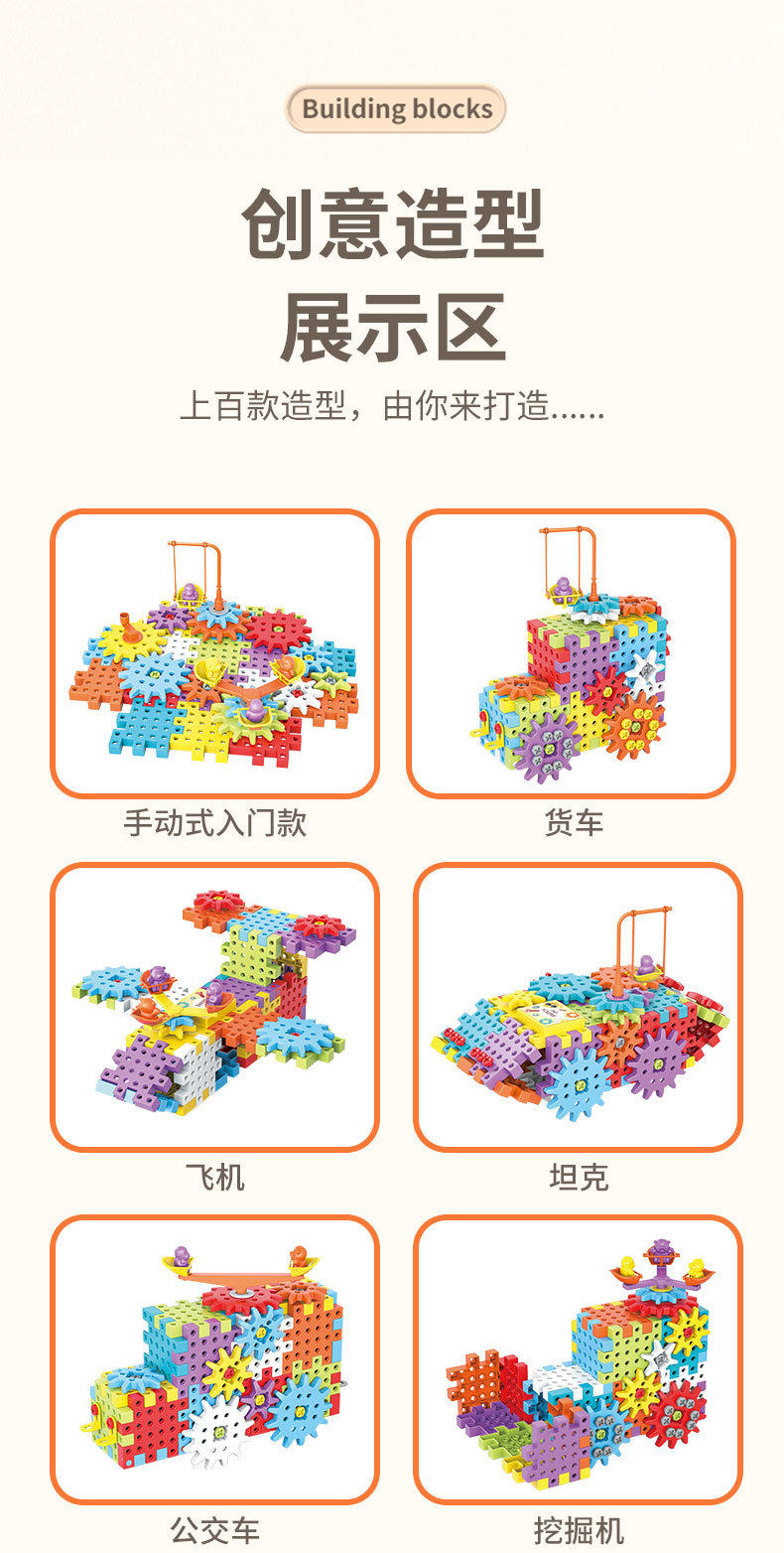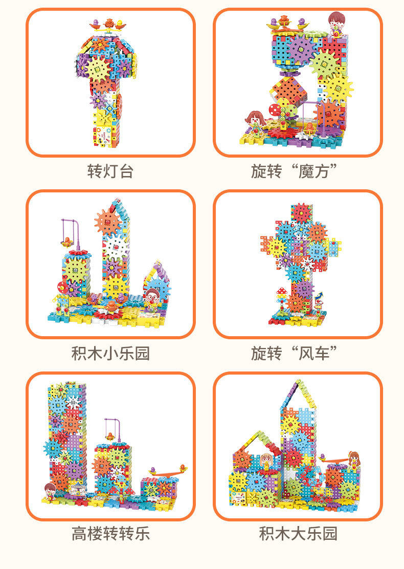 电动DIY科教百变积木机械齿轮联动儿童益智拼插颗粒积木玩具