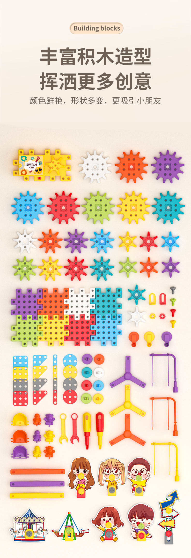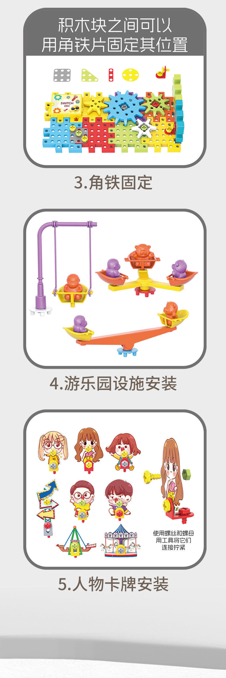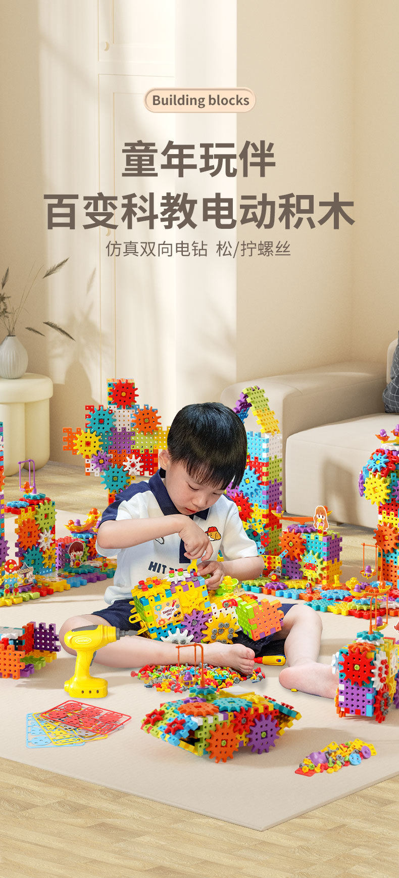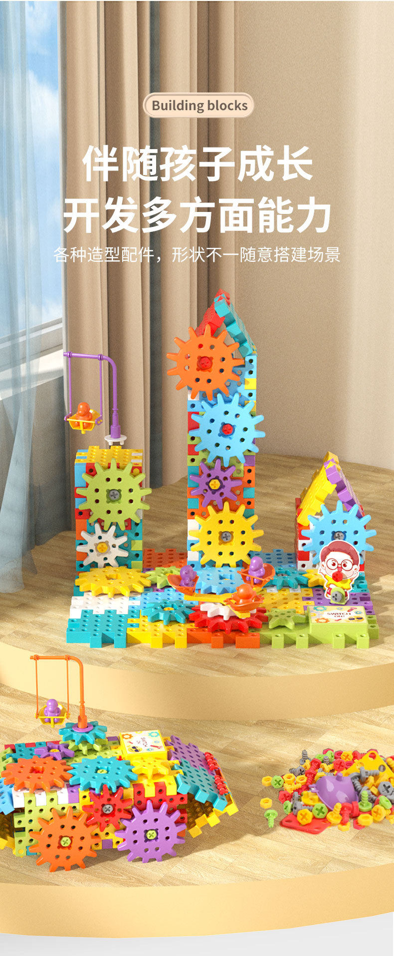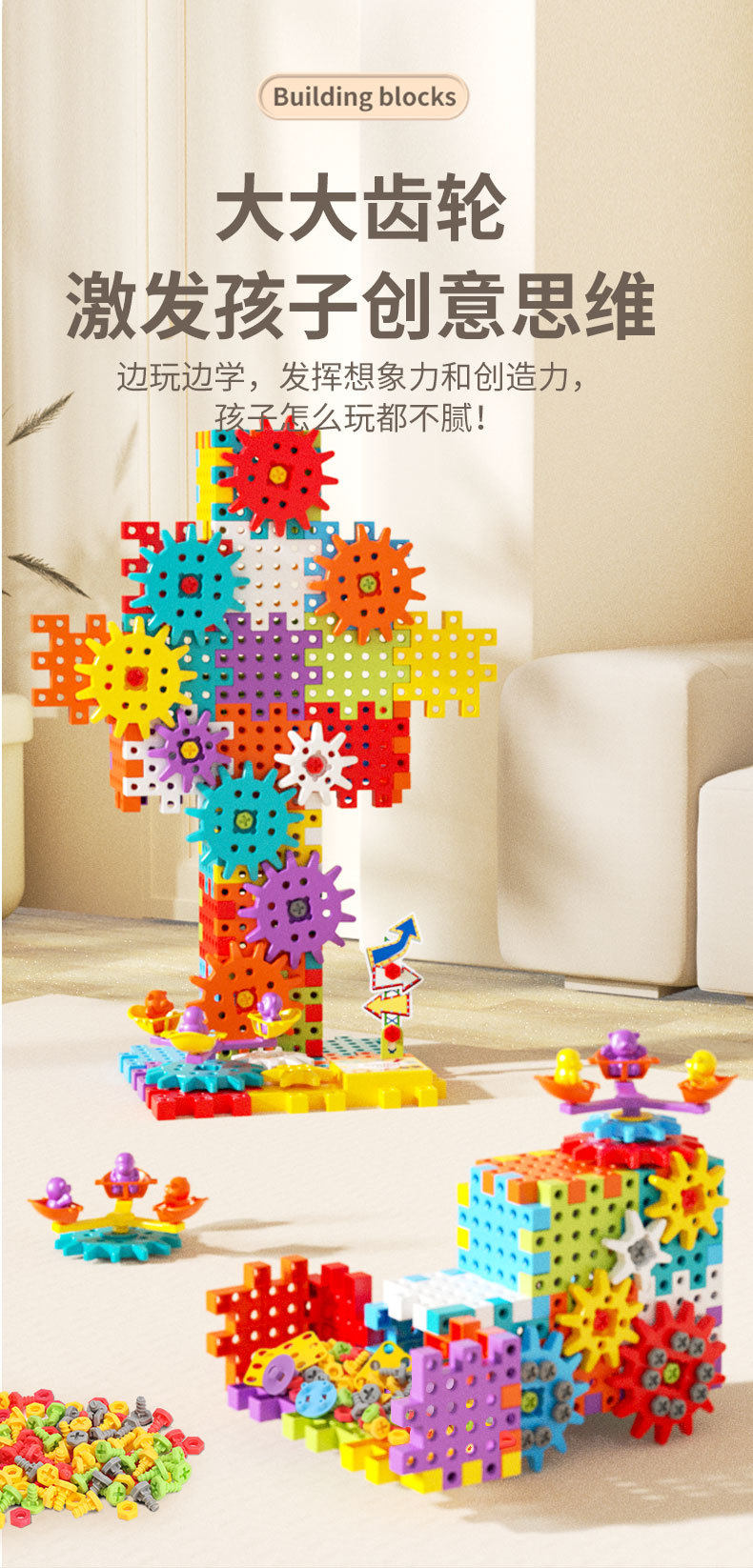 电动DIY科教百变积木机械齿轮联动儿童益智拼插颗粒积木玩具