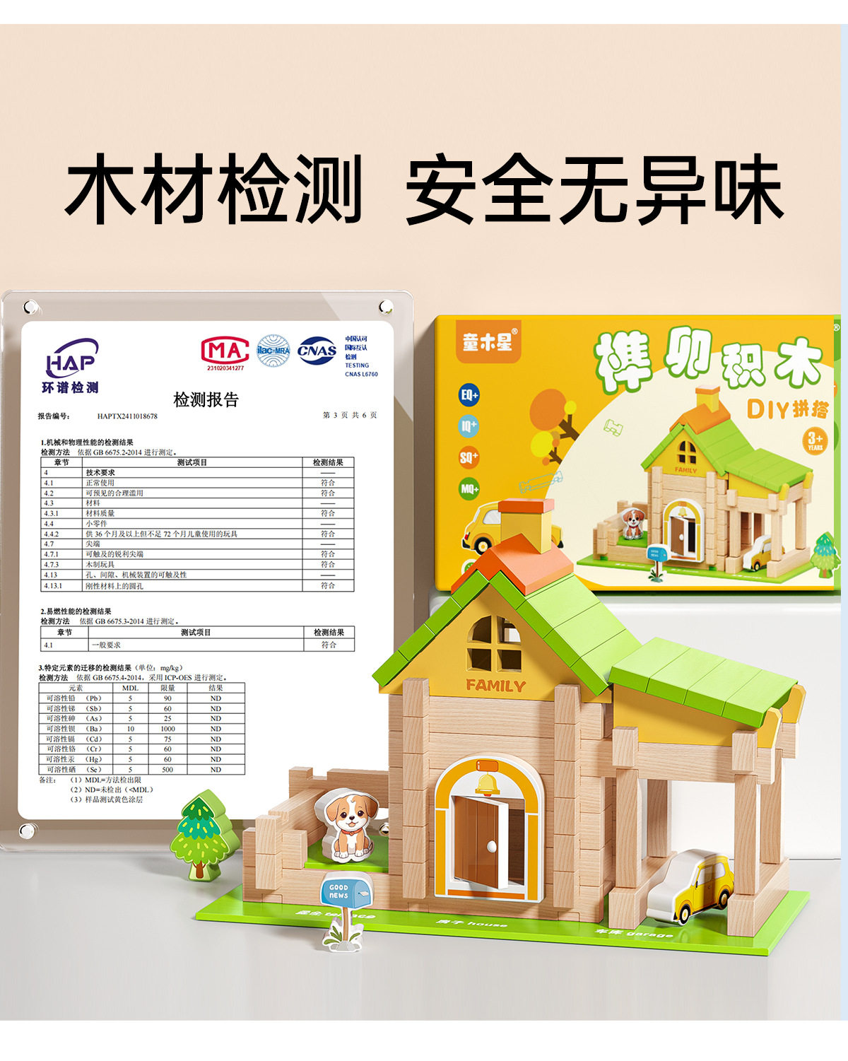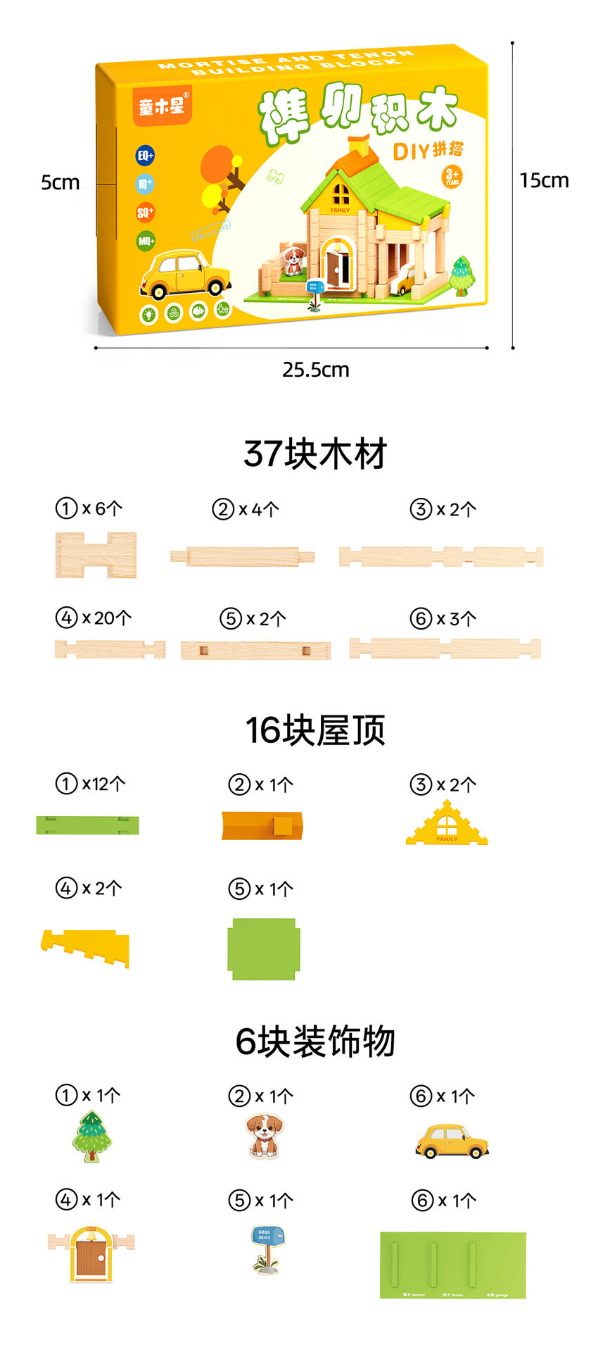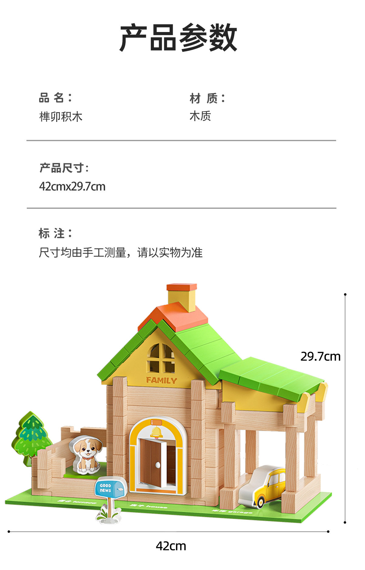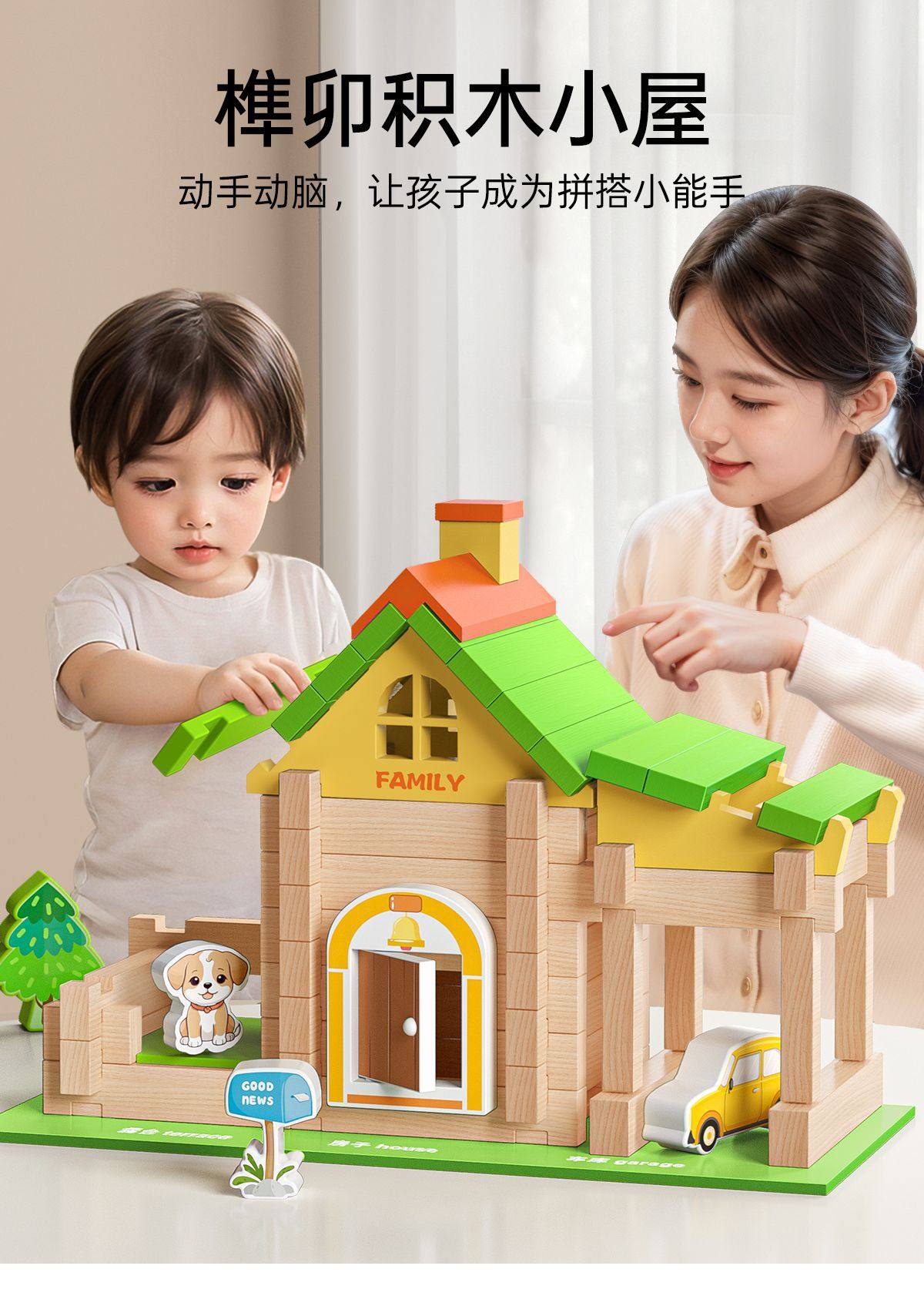 儿童鲁班榫卯积木男孩女孩木质DIY拼搭建筑小屋结构益智手工玩具