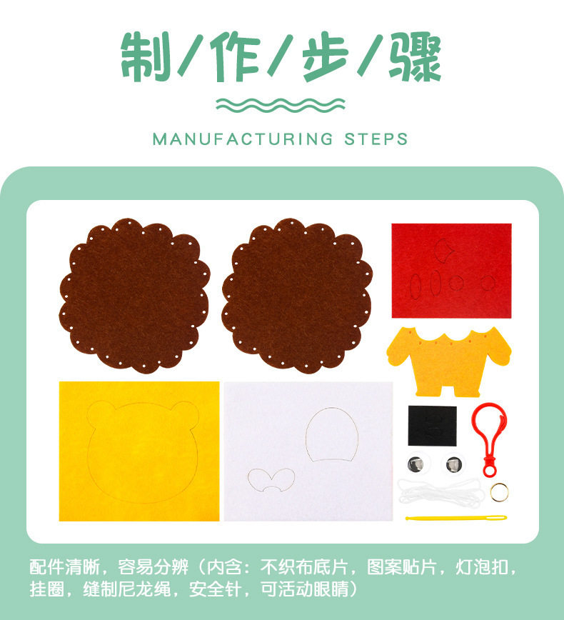 儿童手工缝缝乐创意卡通不织布钥匙扣制作材料3-6岁益智diy材料包