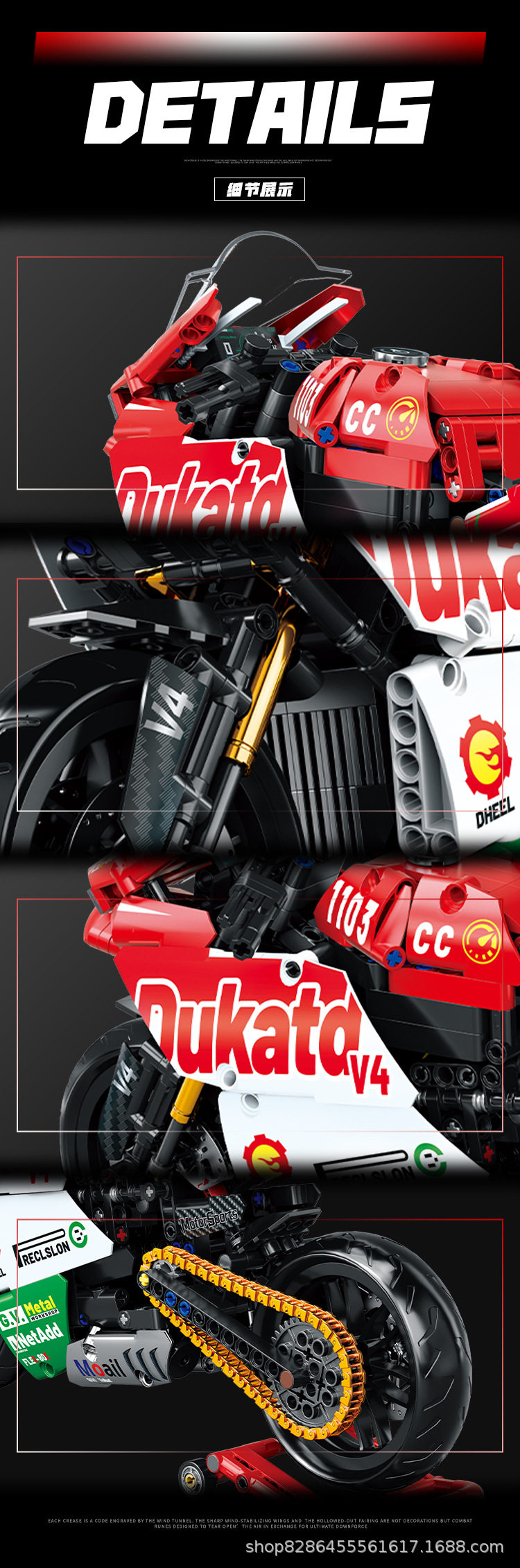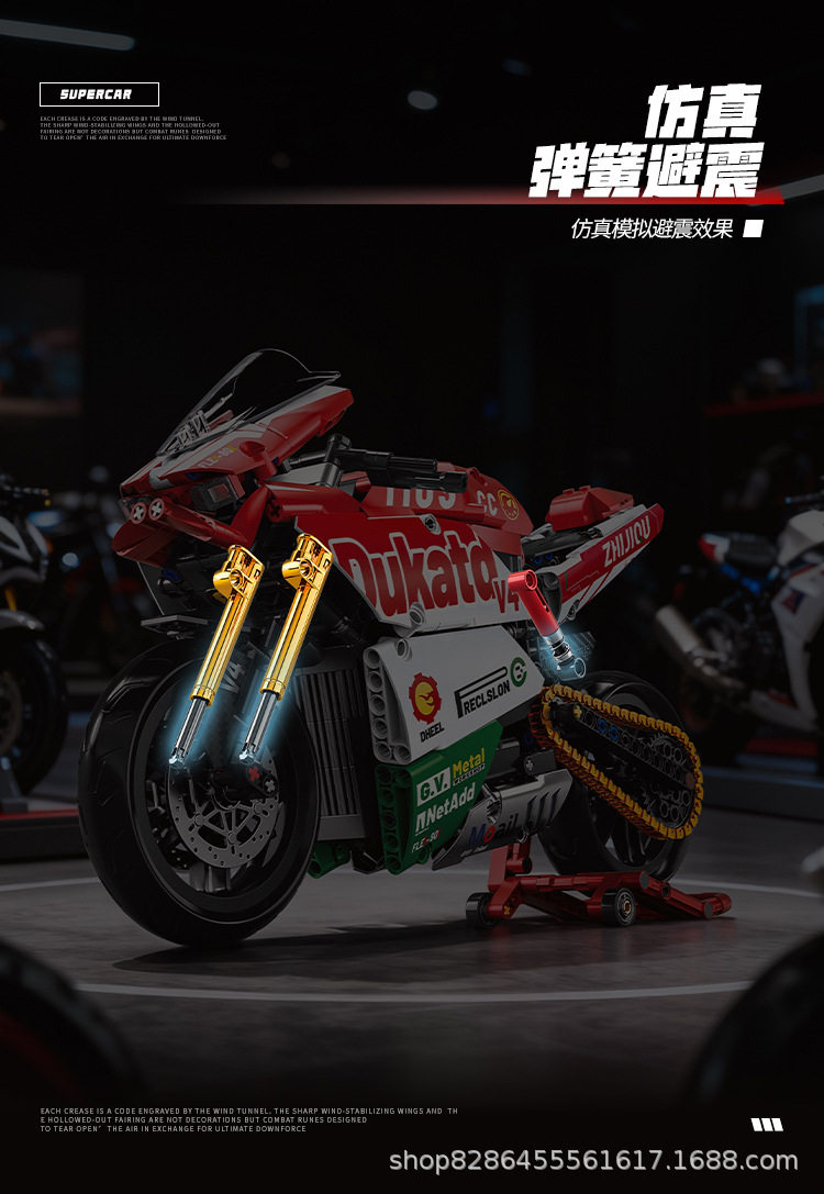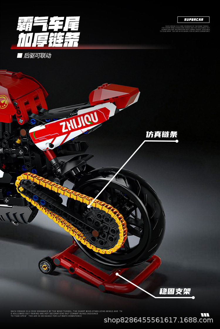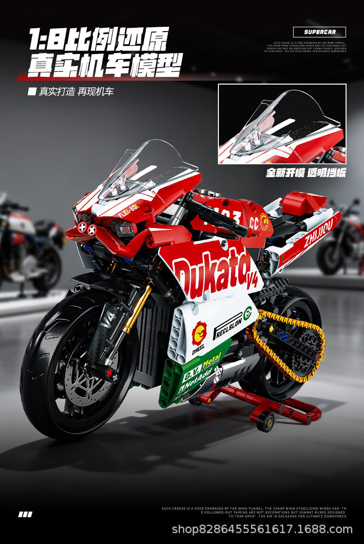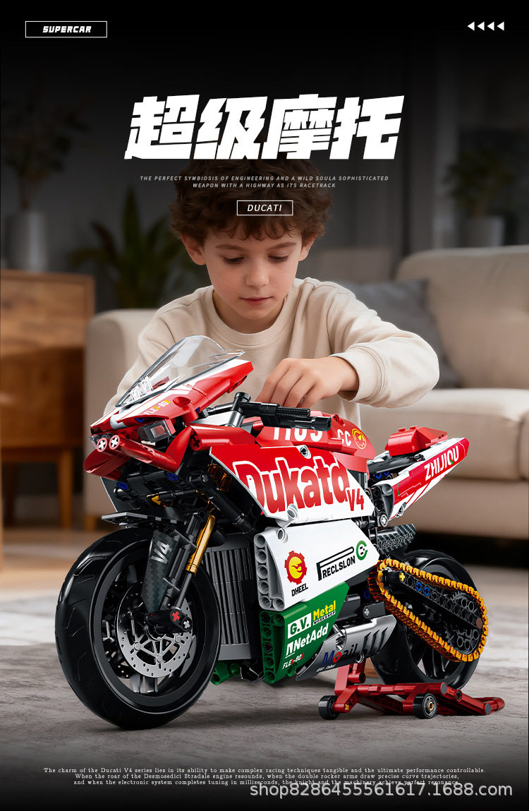 杜咔迪摩托车积木儿童益智玩具模型机车机械大型拼装男孩生日礼物