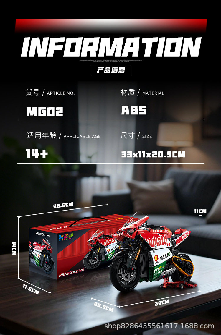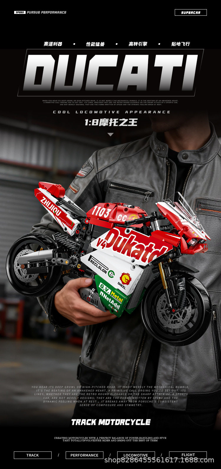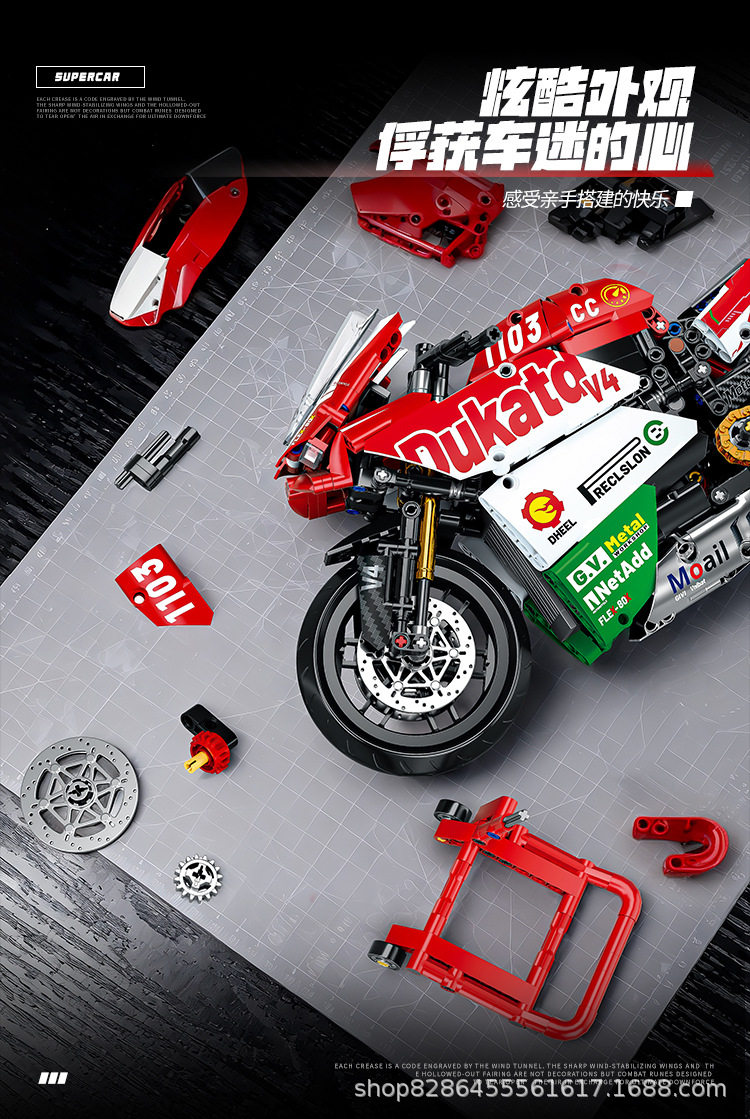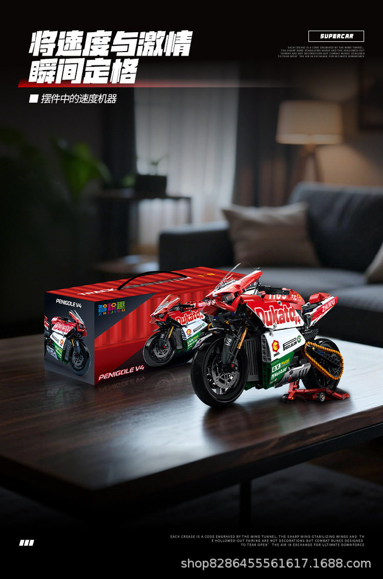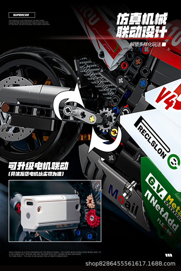 杜咔迪摩托车积木儿童益智玩具模型机车机械大型拼装男孩生日礼物