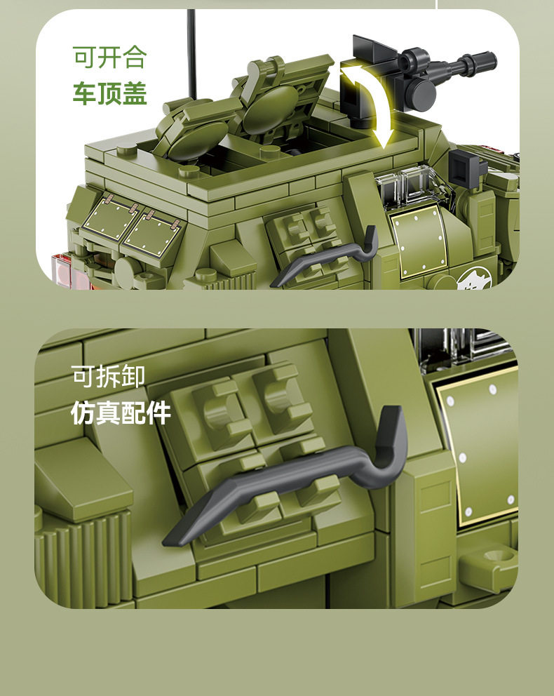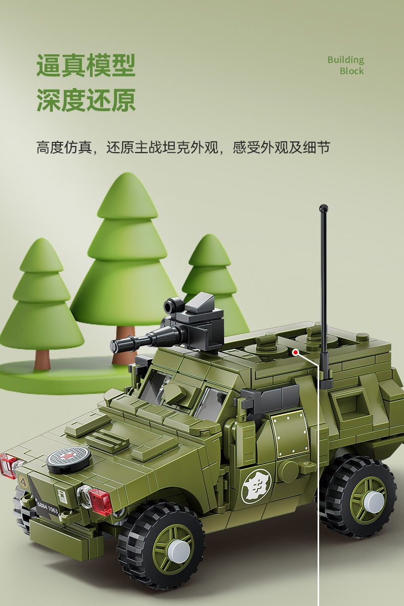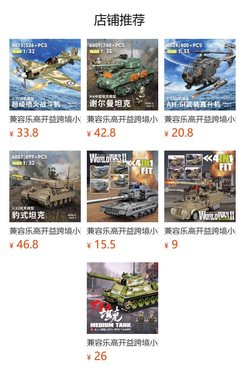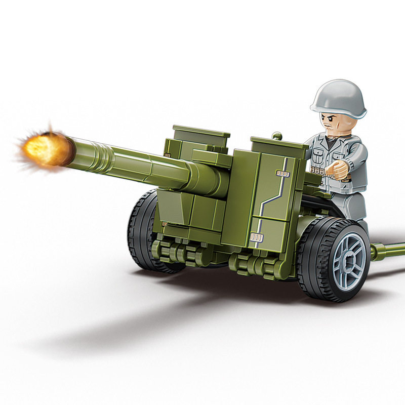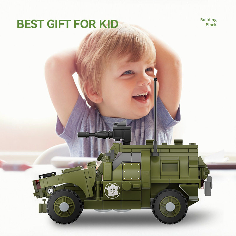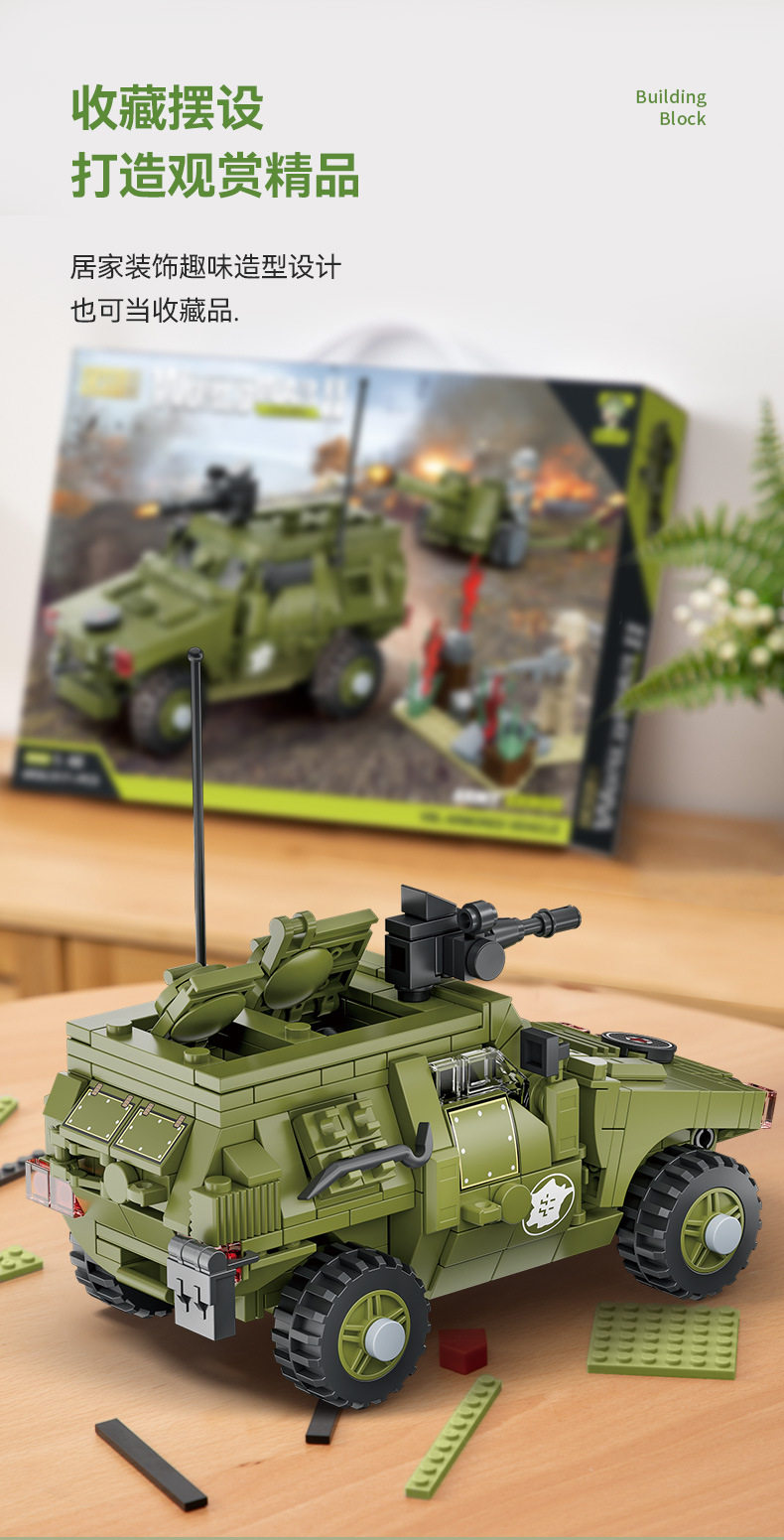 兼容乐高小颗粒积木二战军事人仔模型装甲车摆件儿童益智拼装玩具