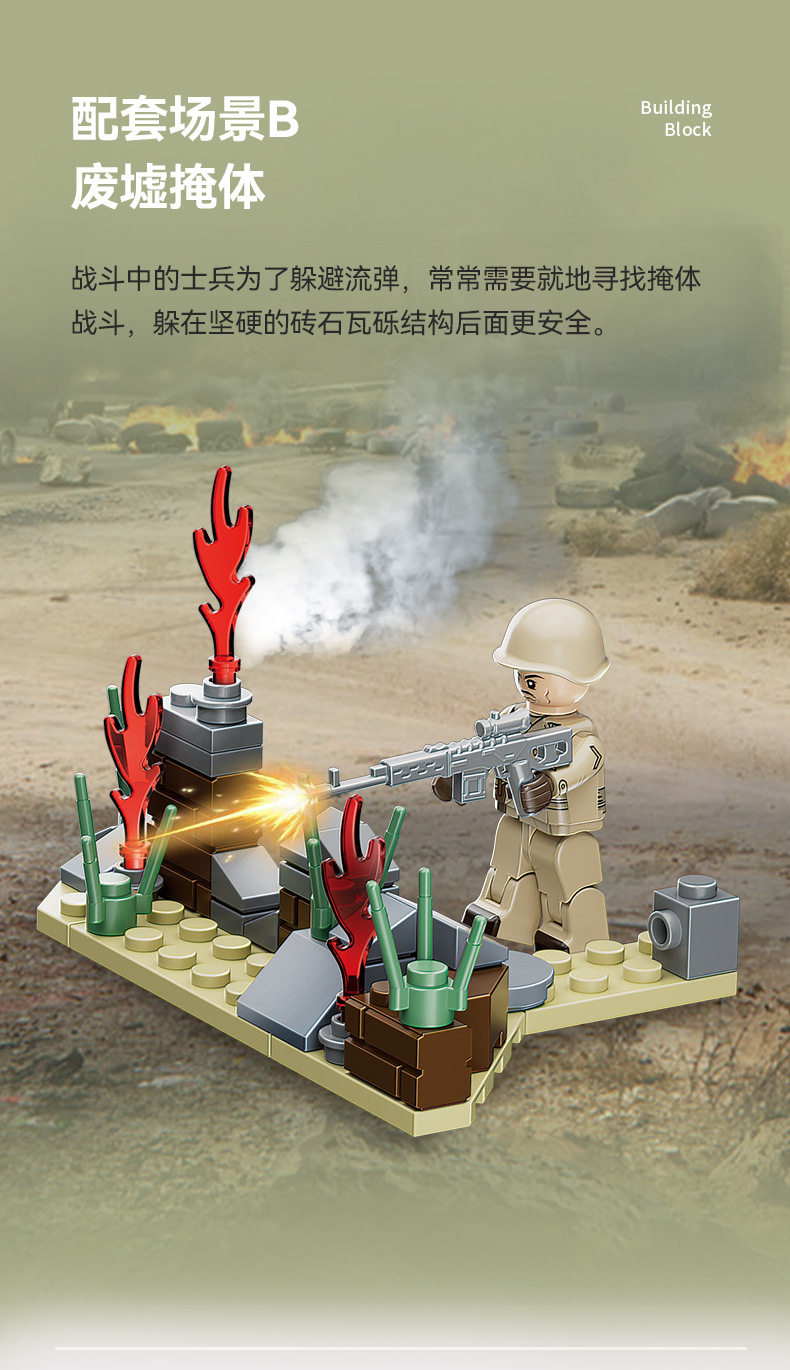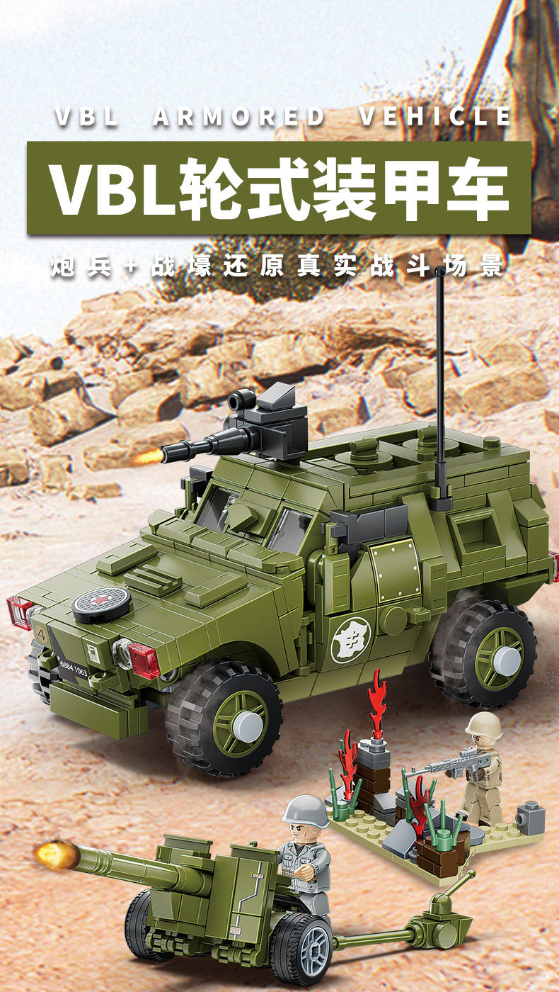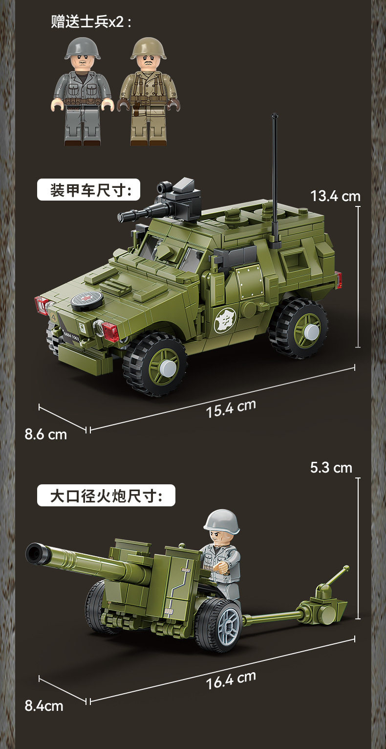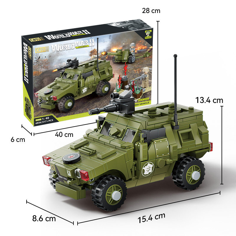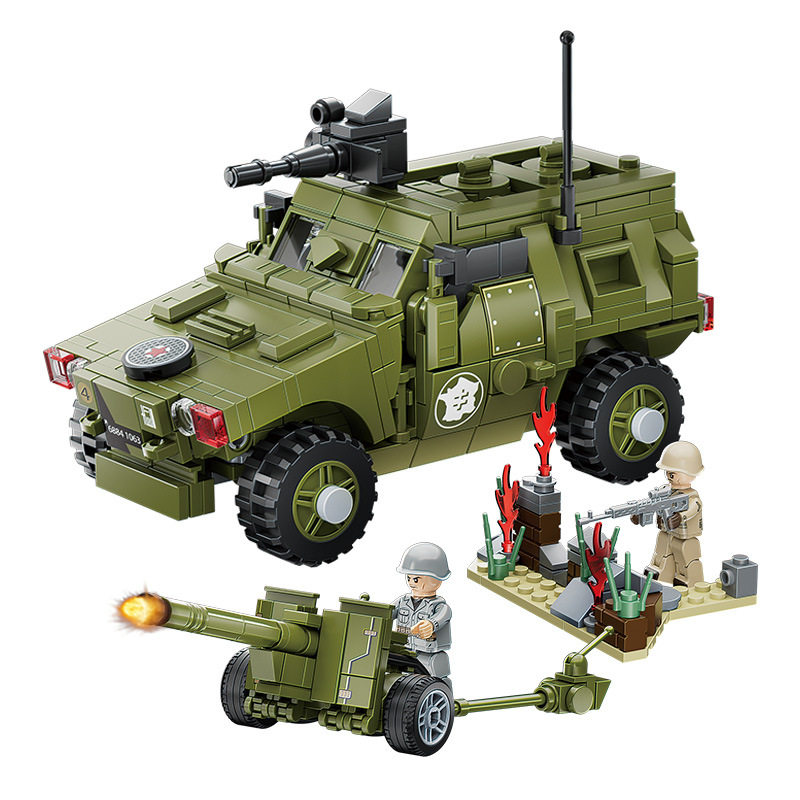 兼容乐高小颗粒积木二战军事人仔模型装甲车摆件儿童益智拼装玩具