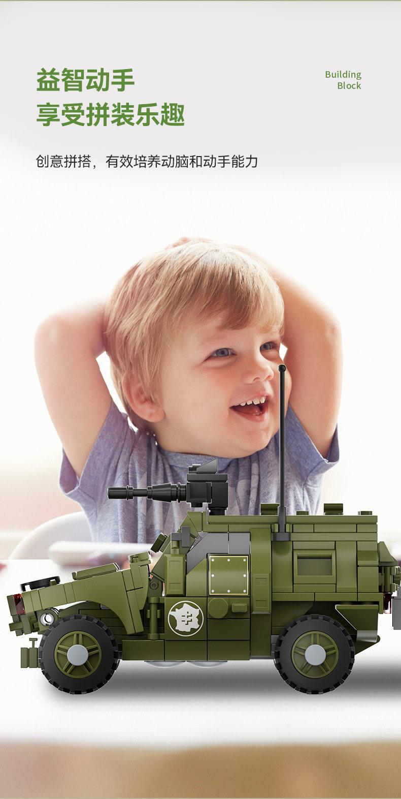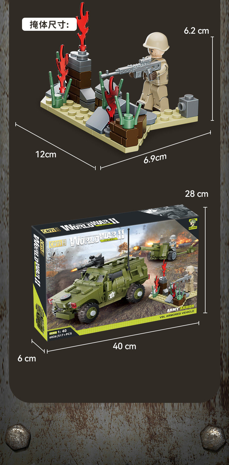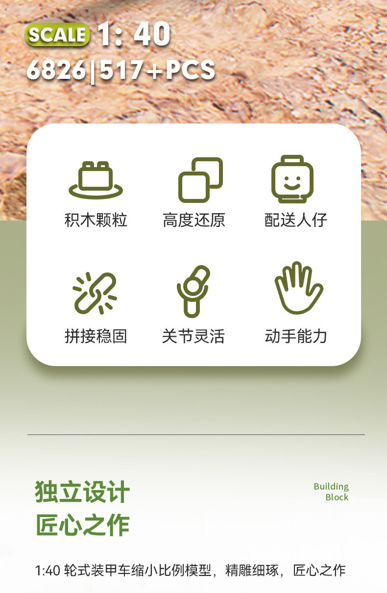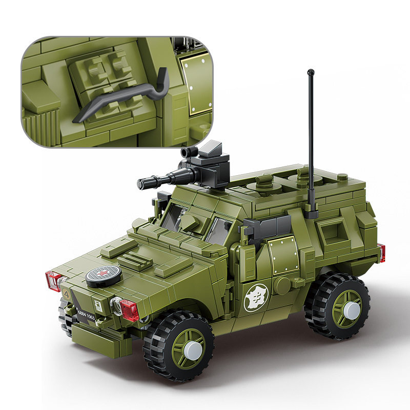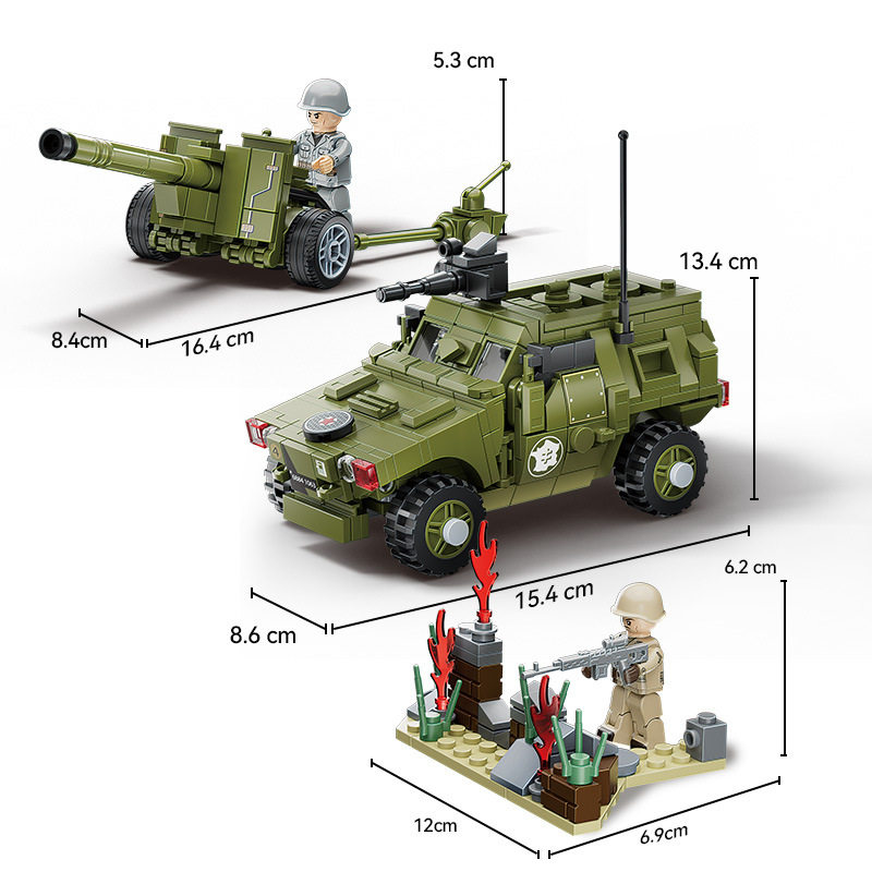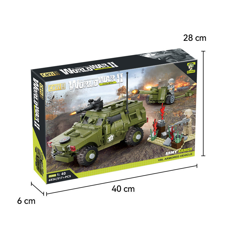 兼容乐高小颗粒积木二战军事人仔模型装甲车摆件儿童益智拼装玩具