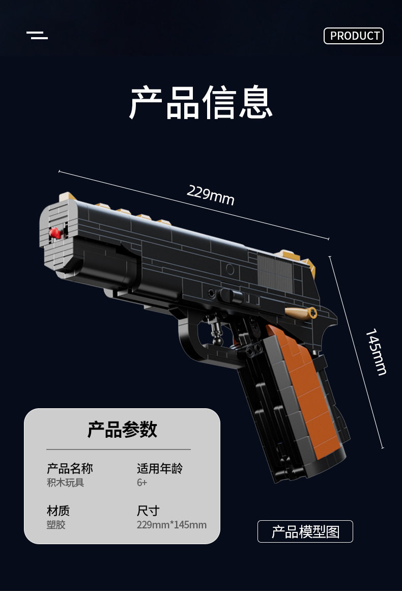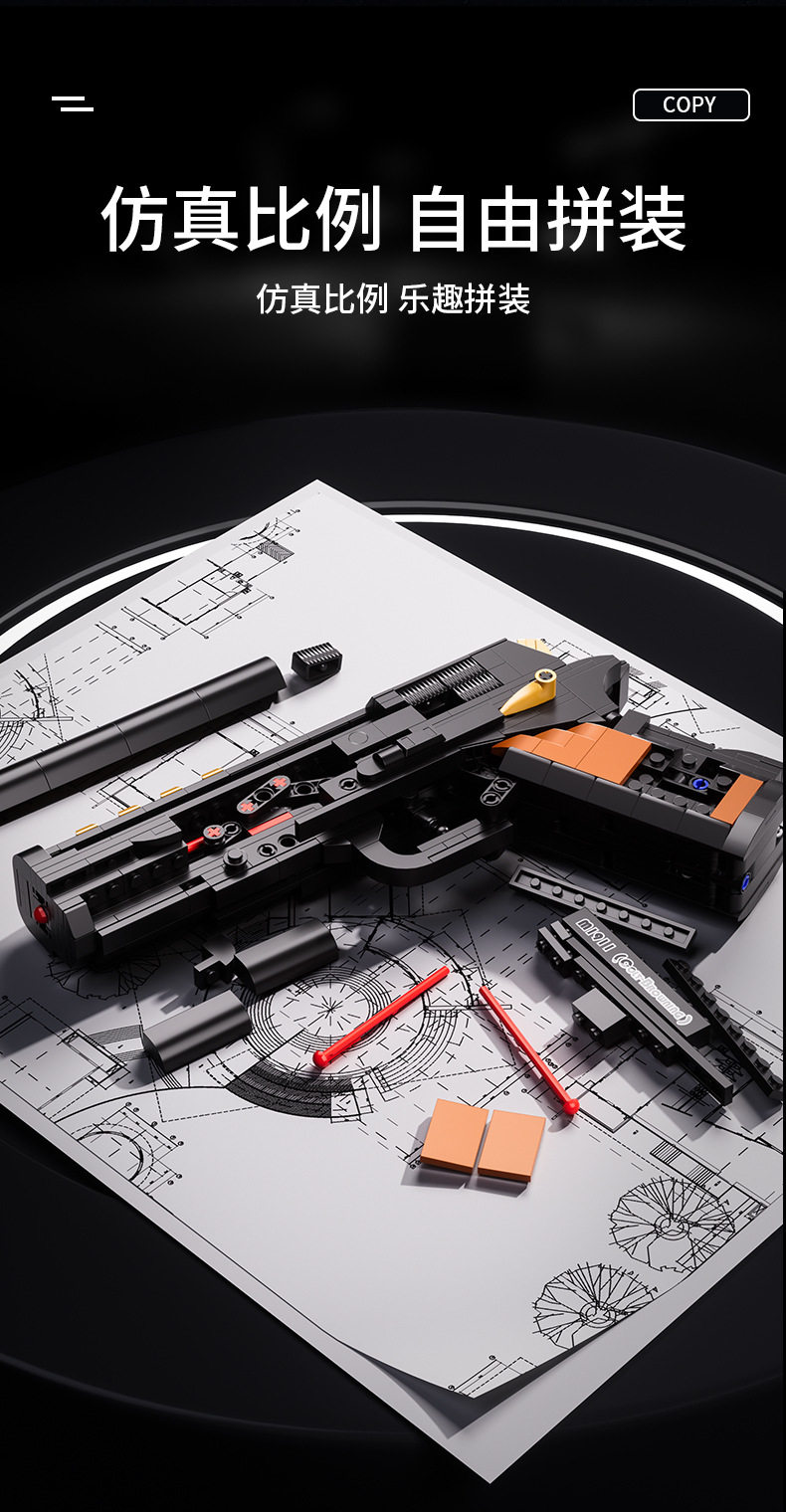 兼容乐高益智玩具积木沙漠之鹰手枪模型小颗粒拼装儿童玩具男孩