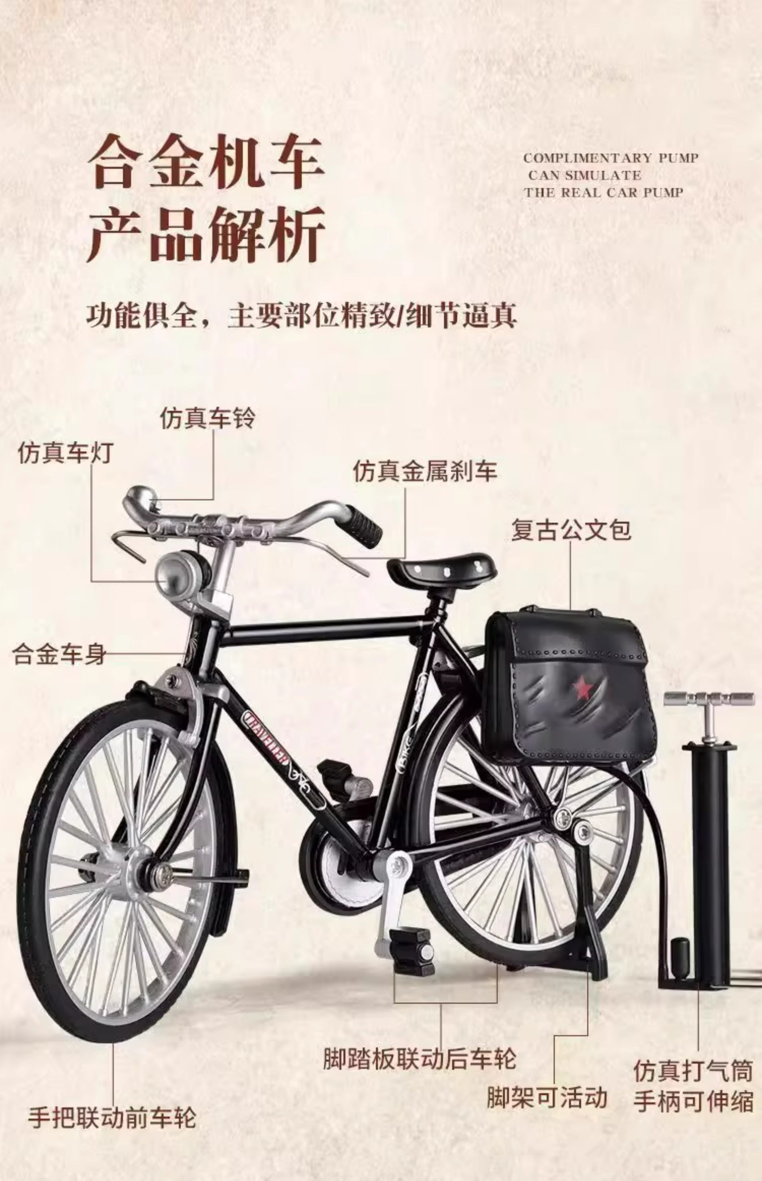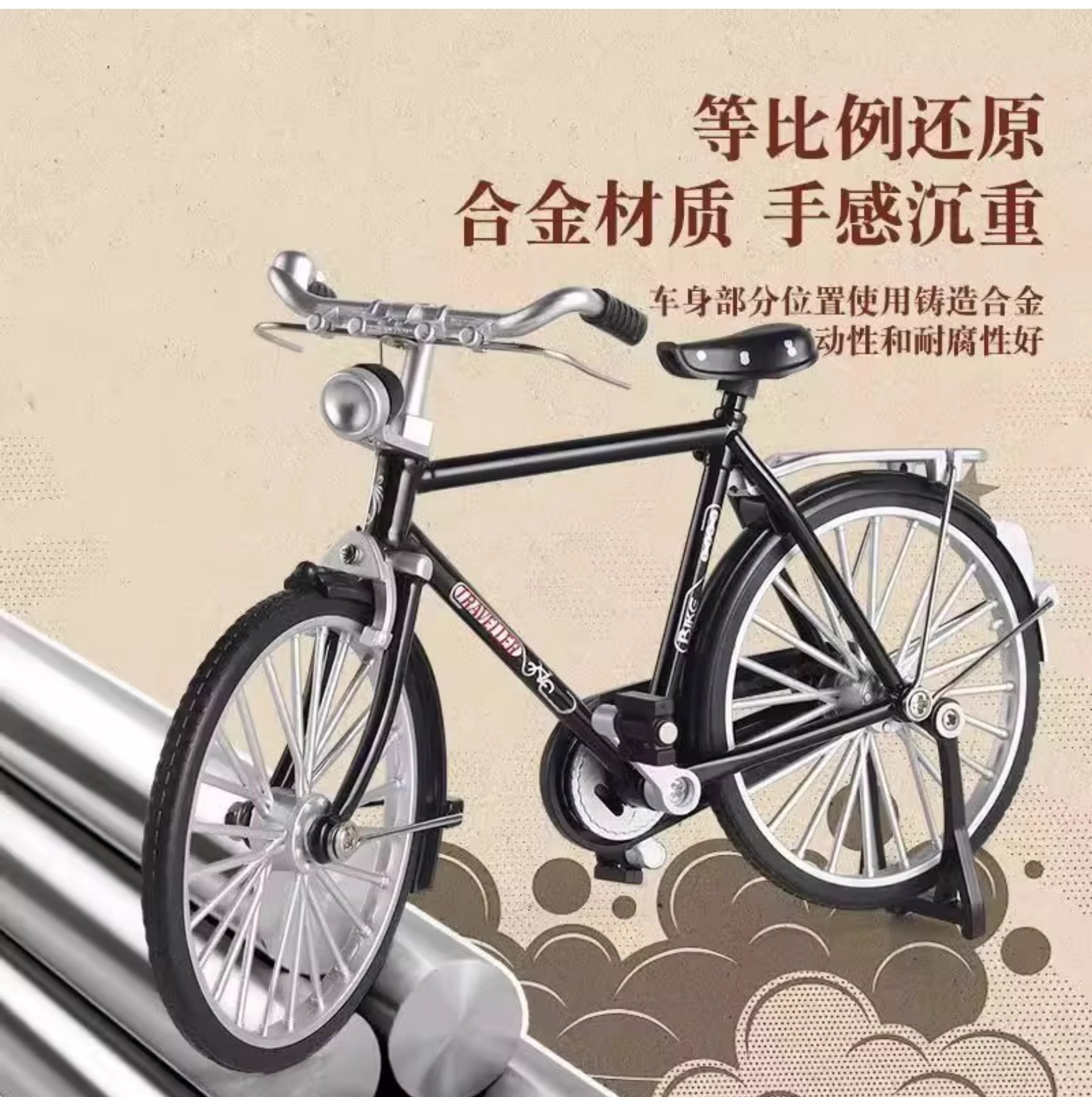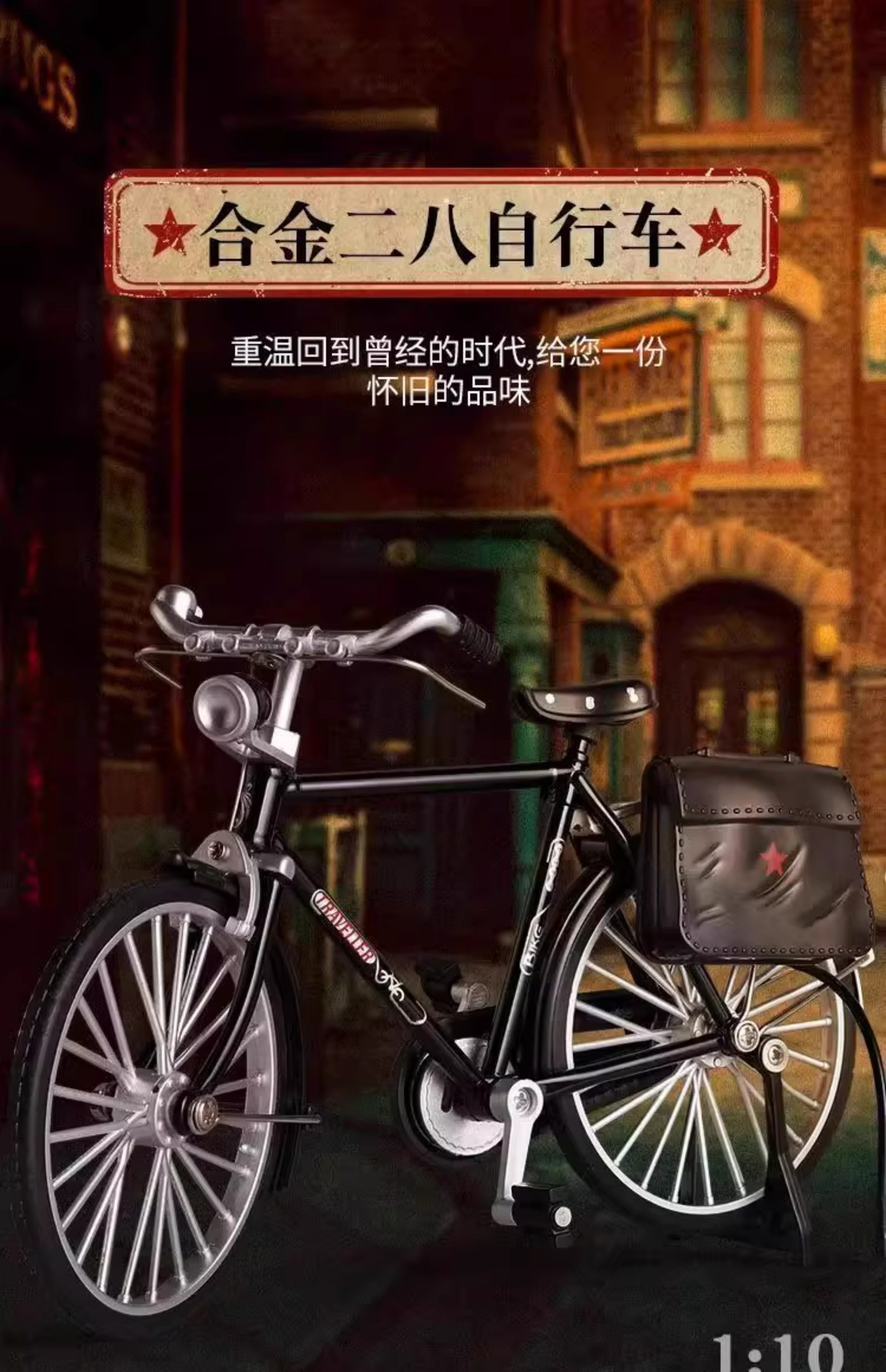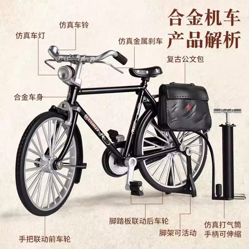 28二八大杠自行车模型手动DIY组装摆件仿真合金怀旧单车拼装玩具