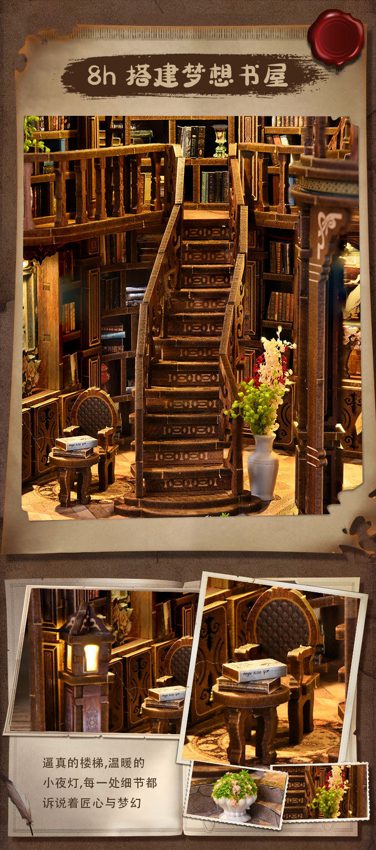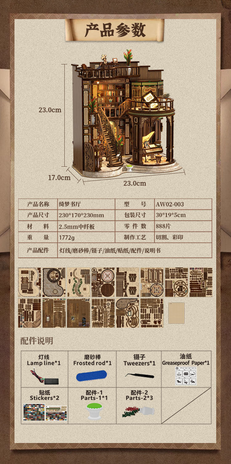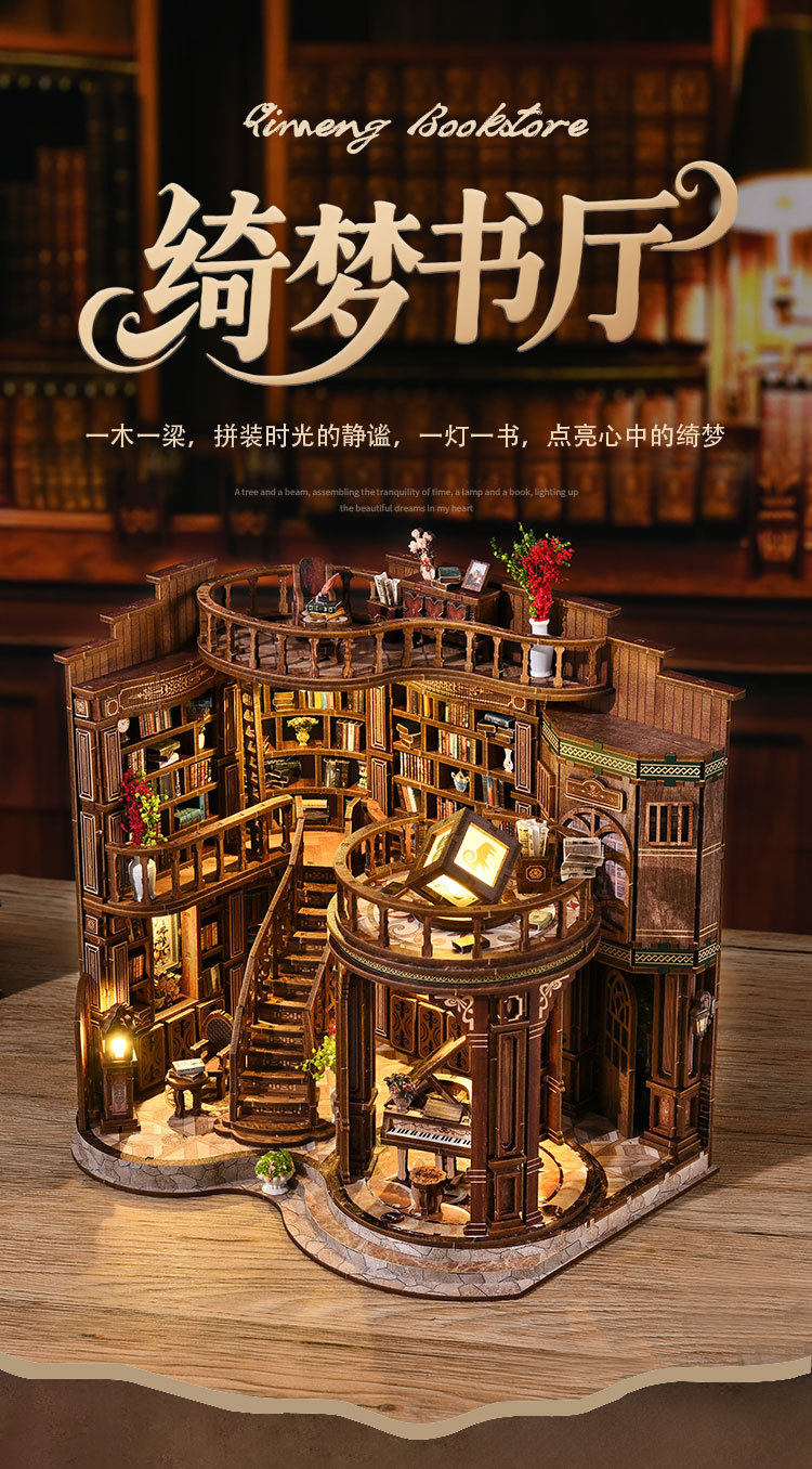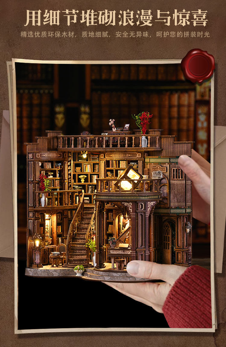 绮梦书厅diy小屋微缩屋复古欧式手工建筑模型儿童益智拼装玩具