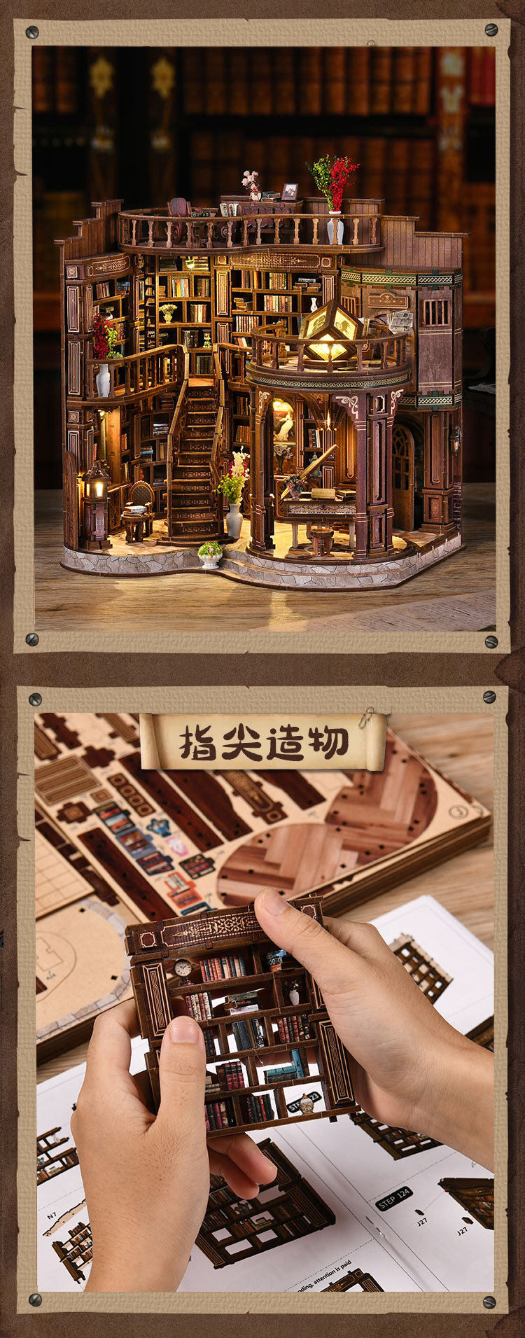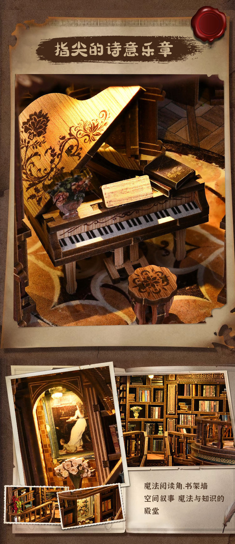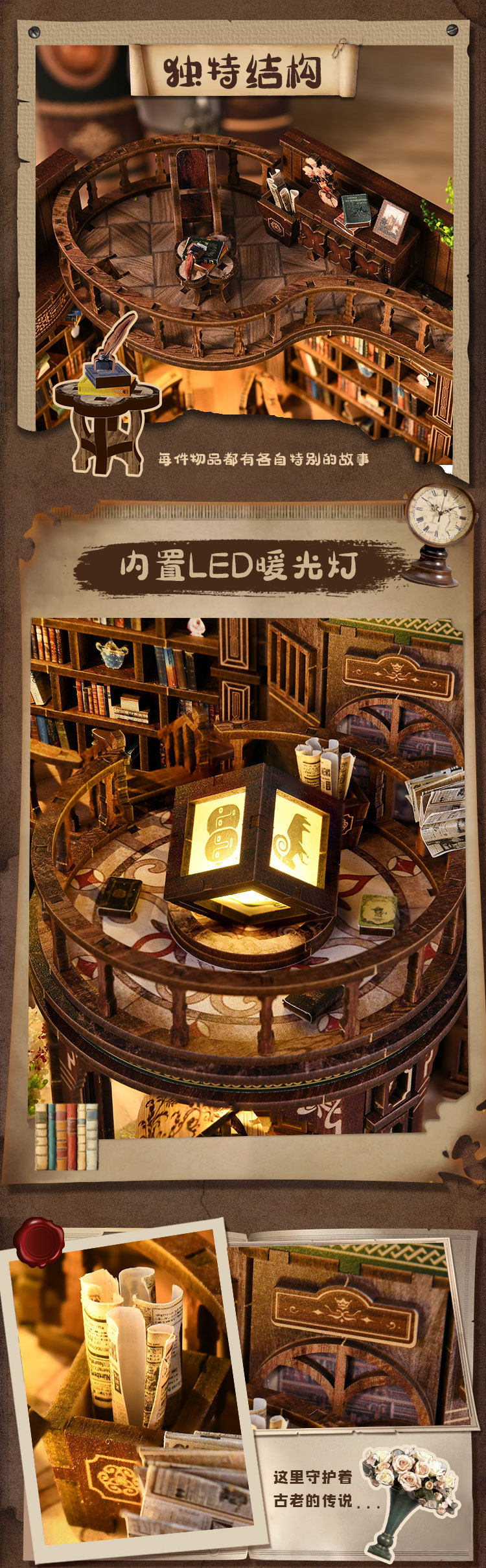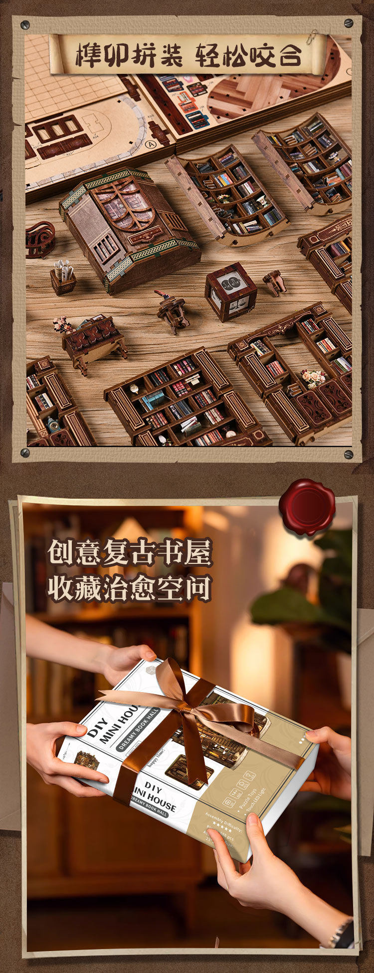 绮梦书厅diy小屋微缩屋复古欧式手工建筑模型儿童益智拼装玩具
