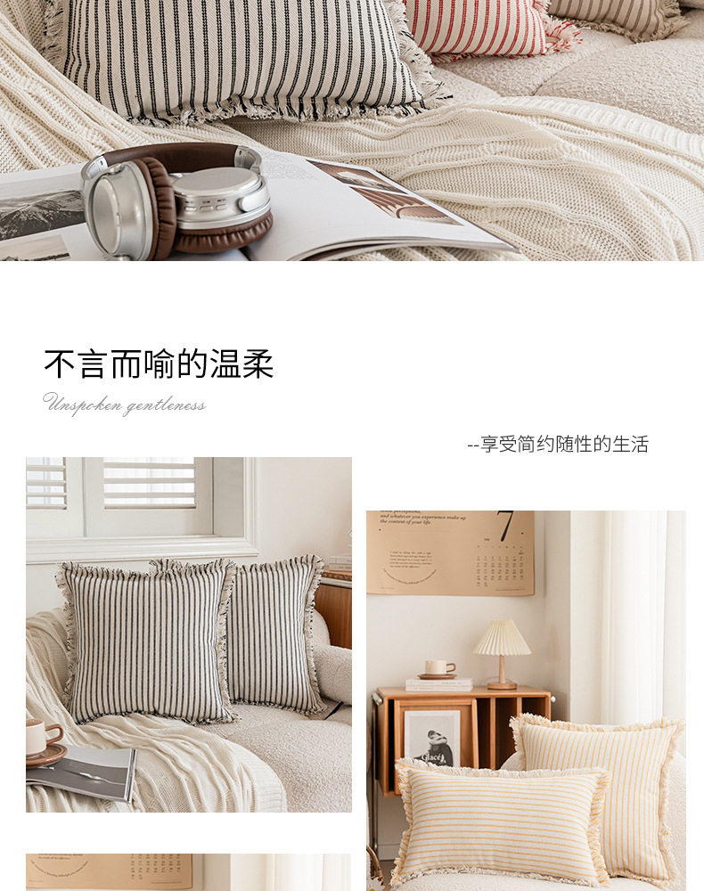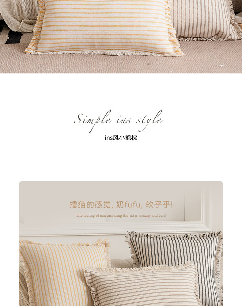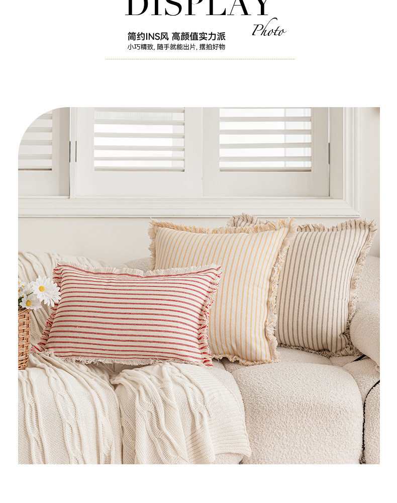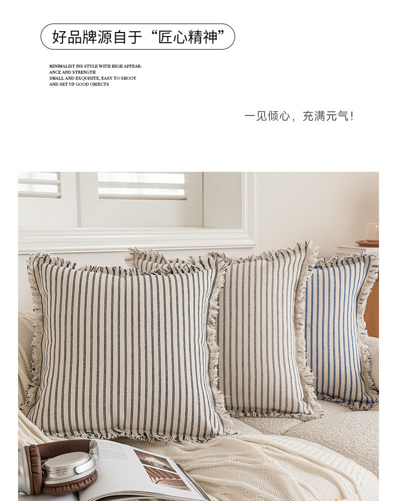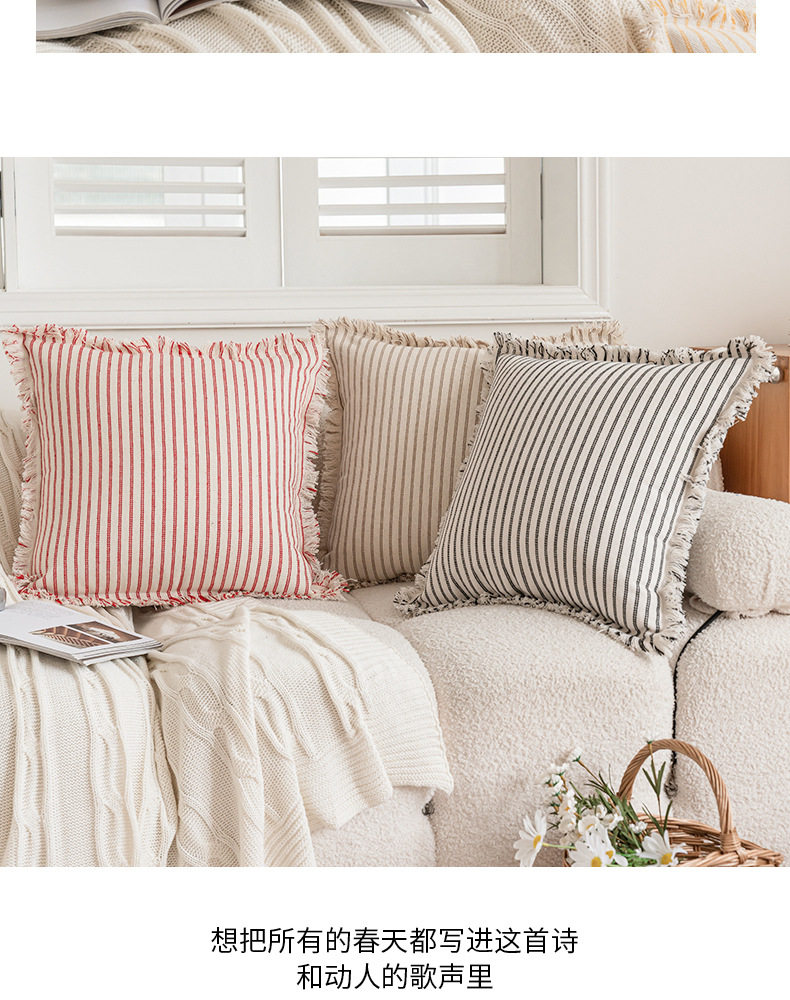 ins风条纹流苏抱枕北欧简约沙发靠枕居家办公室小清新靠垫套
