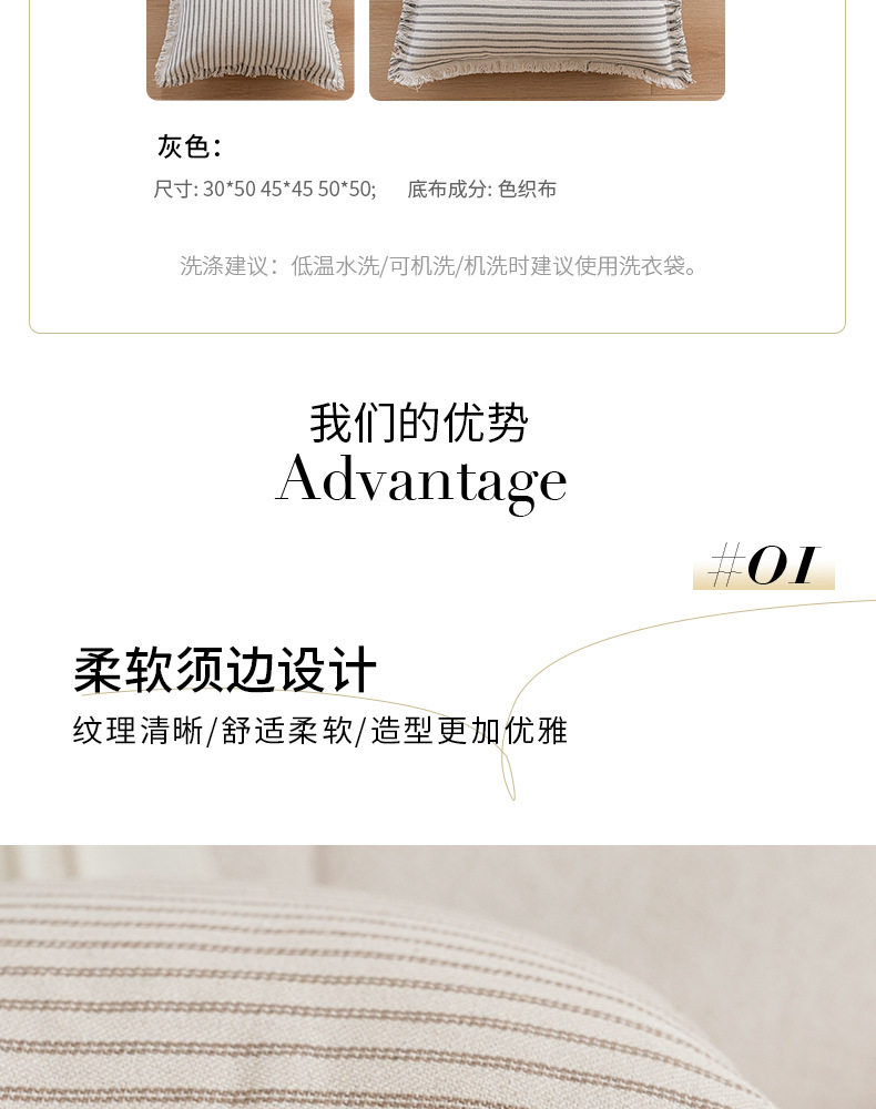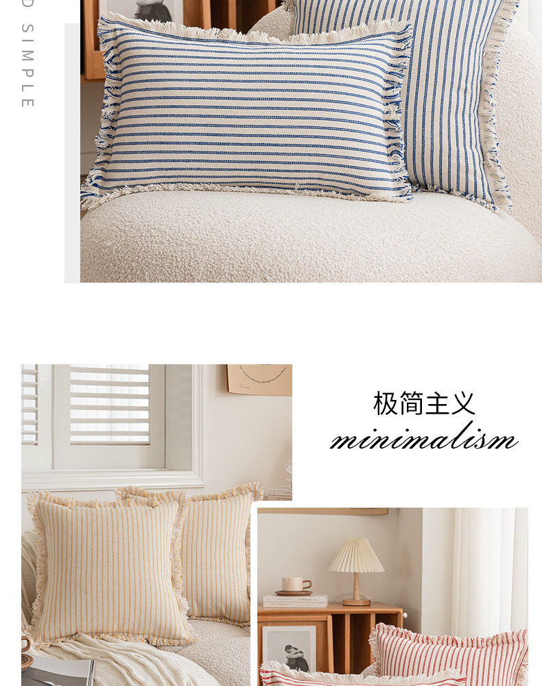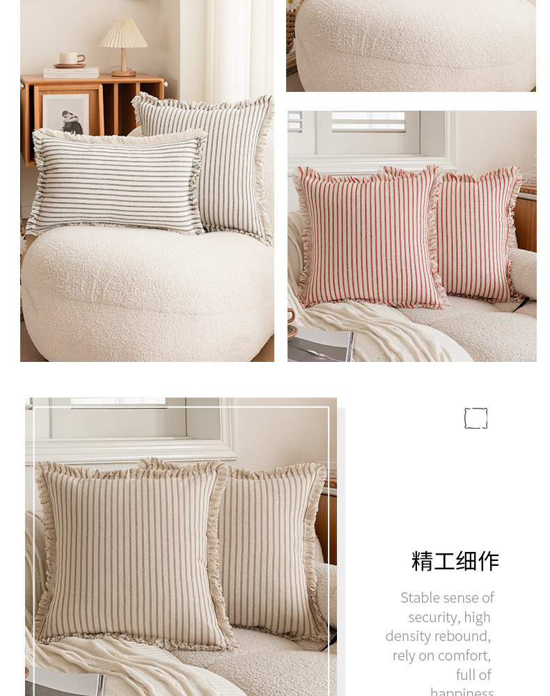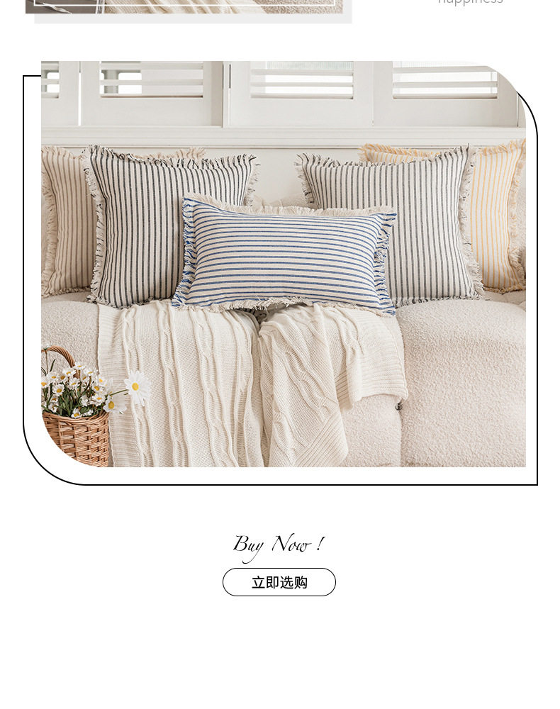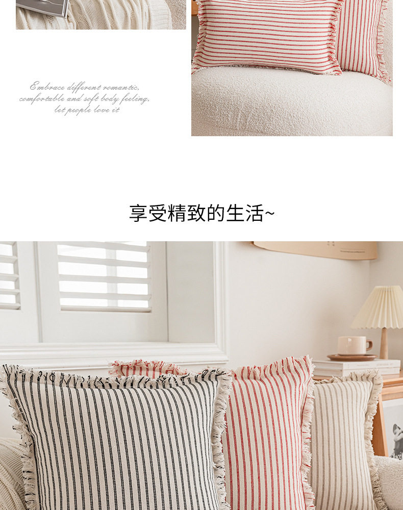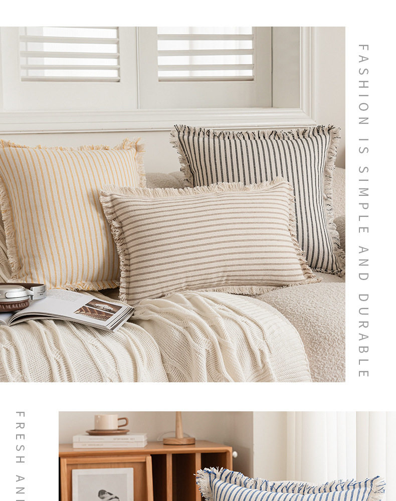ins风条纹流苏抱枕北欧简约沙发靠枕居家办公室小清新靠垫套