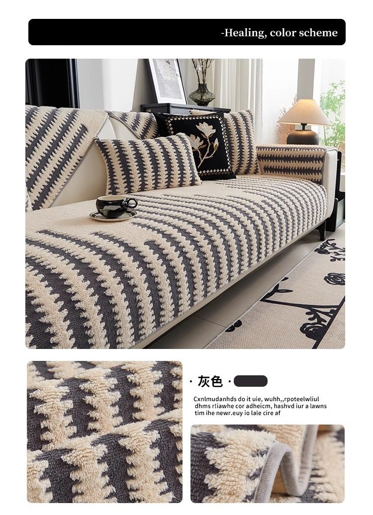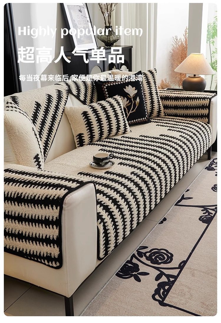 亚马逊跨境毛绒沙发垫轻奢感防滑坐垫秋冬皮沙发套罩盖布新款家居