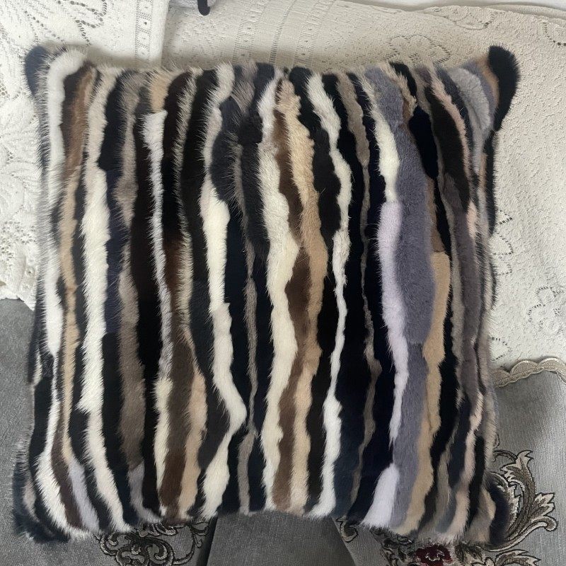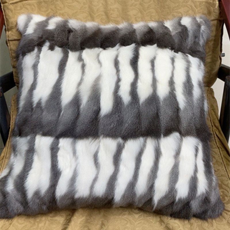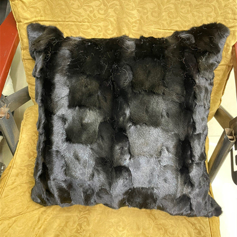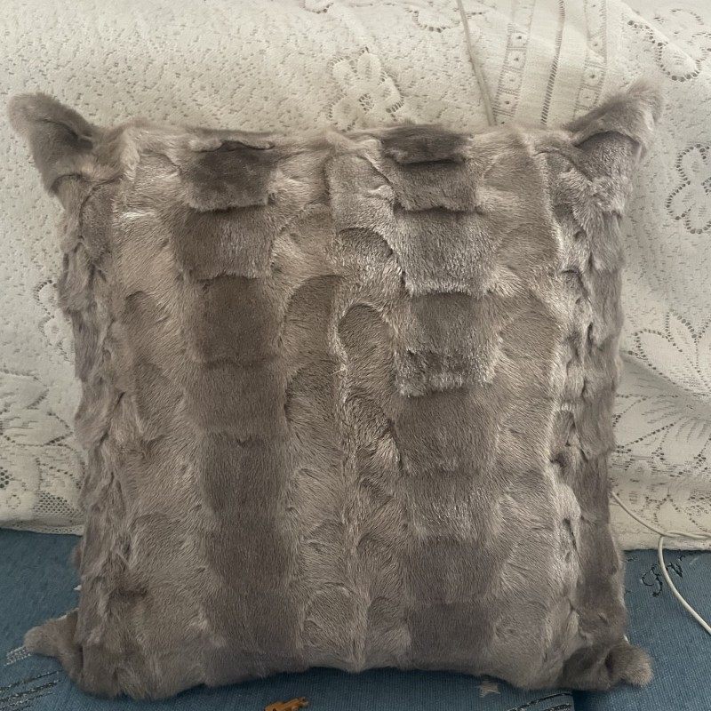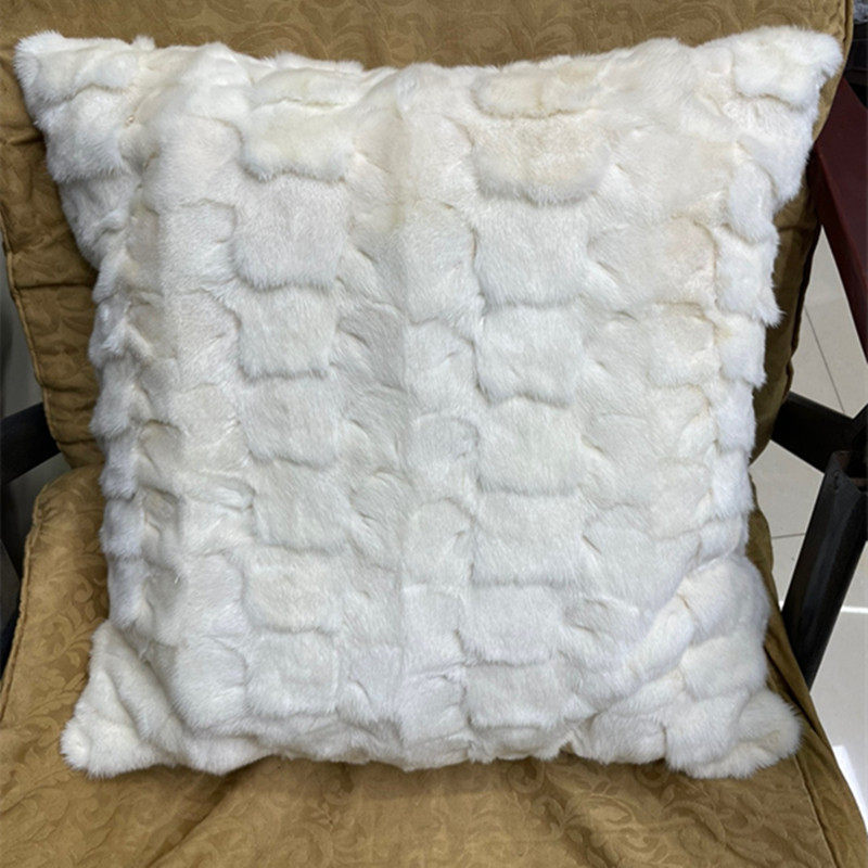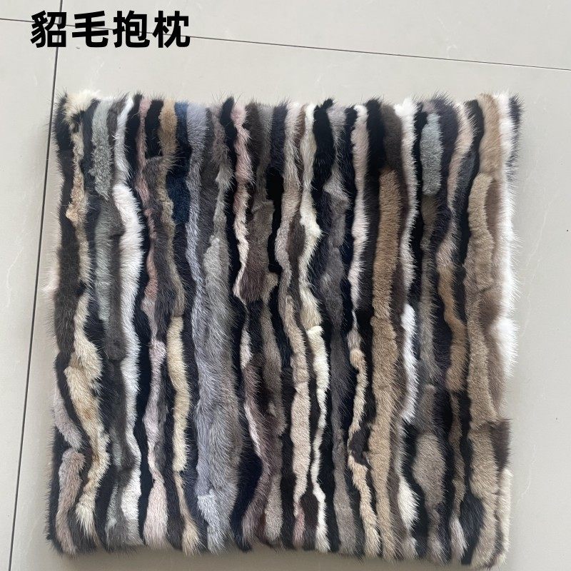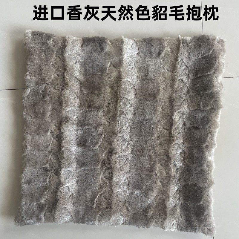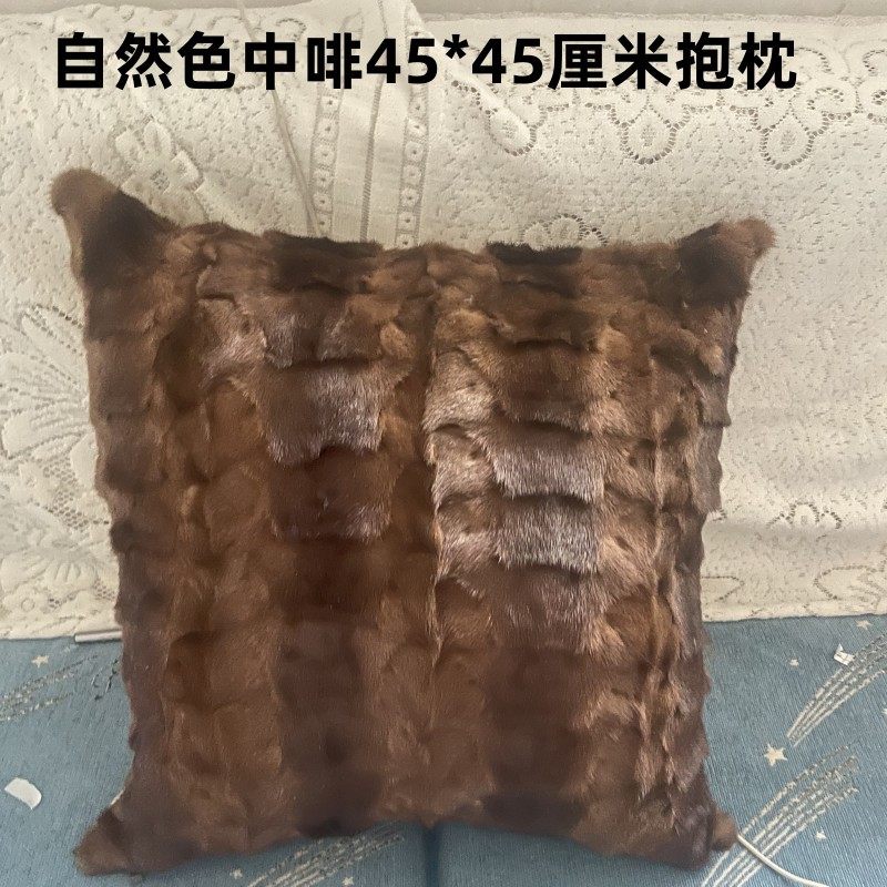 跨境水貂毛抱枕羊毛背枕貂绒48*48厘米家居饰品獭兔毛狐狸毛抱枕