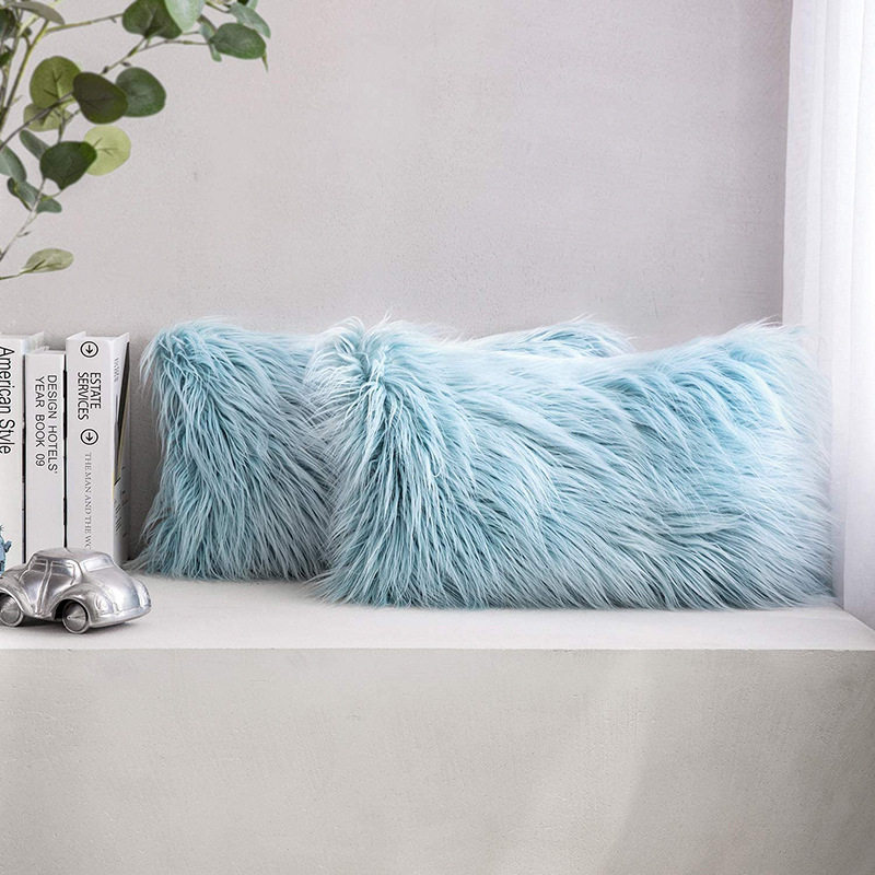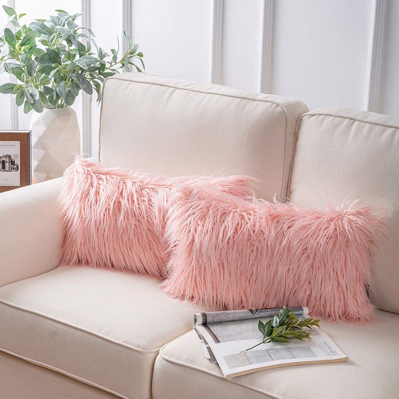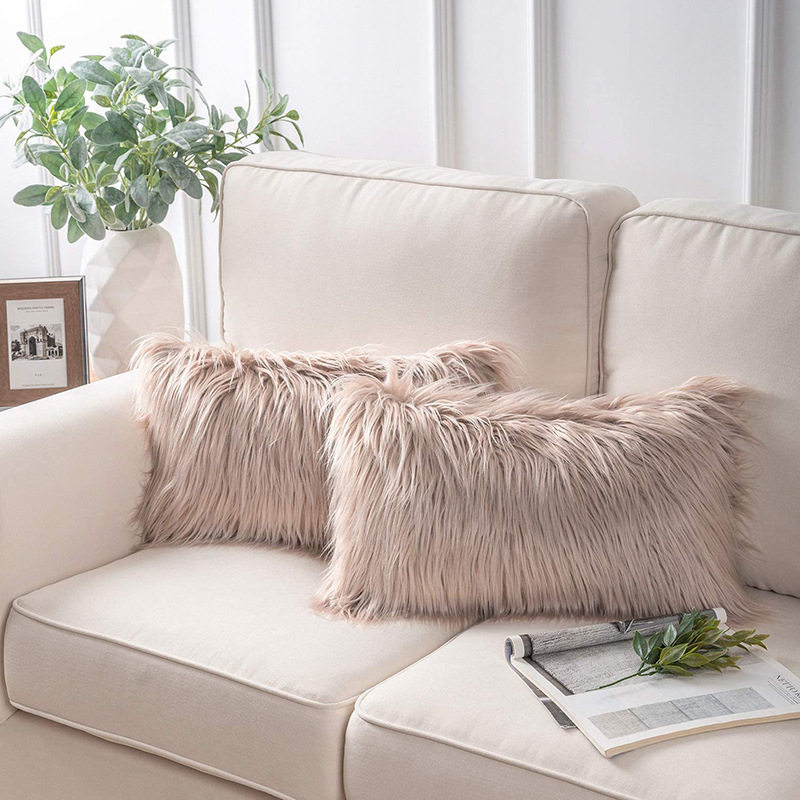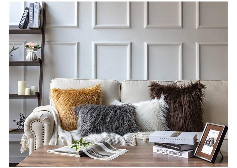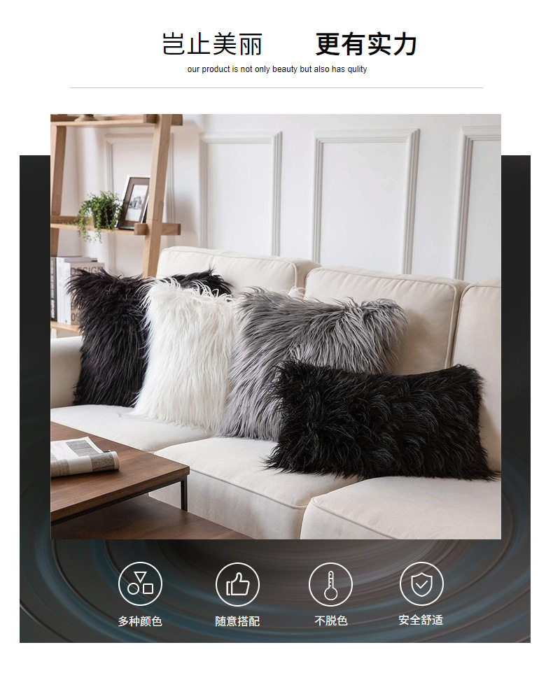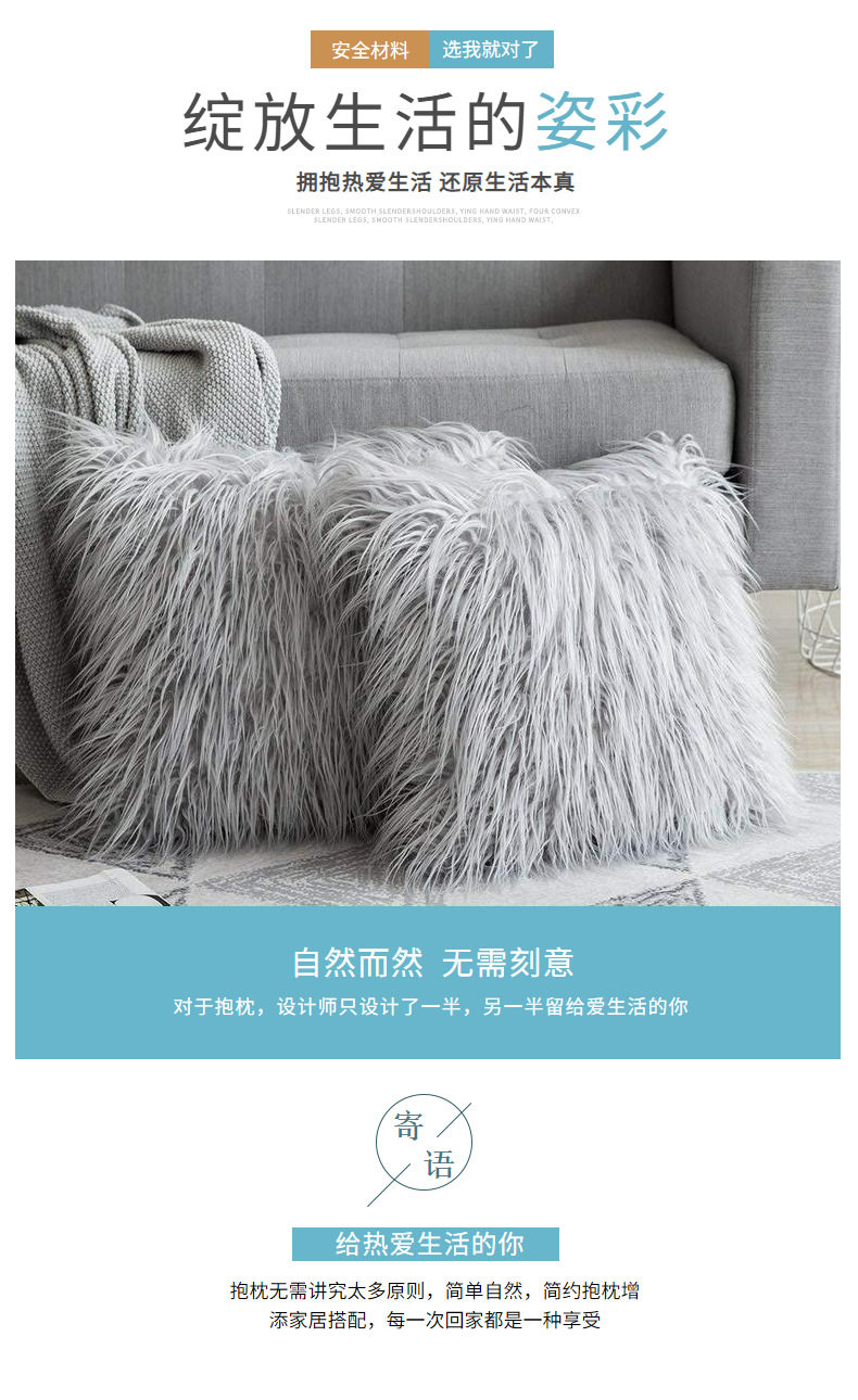 亚马逊跨境家居客厅装饰靠垫套沙发靠枕坐垫套长毛仿滩羊毛抱枕套