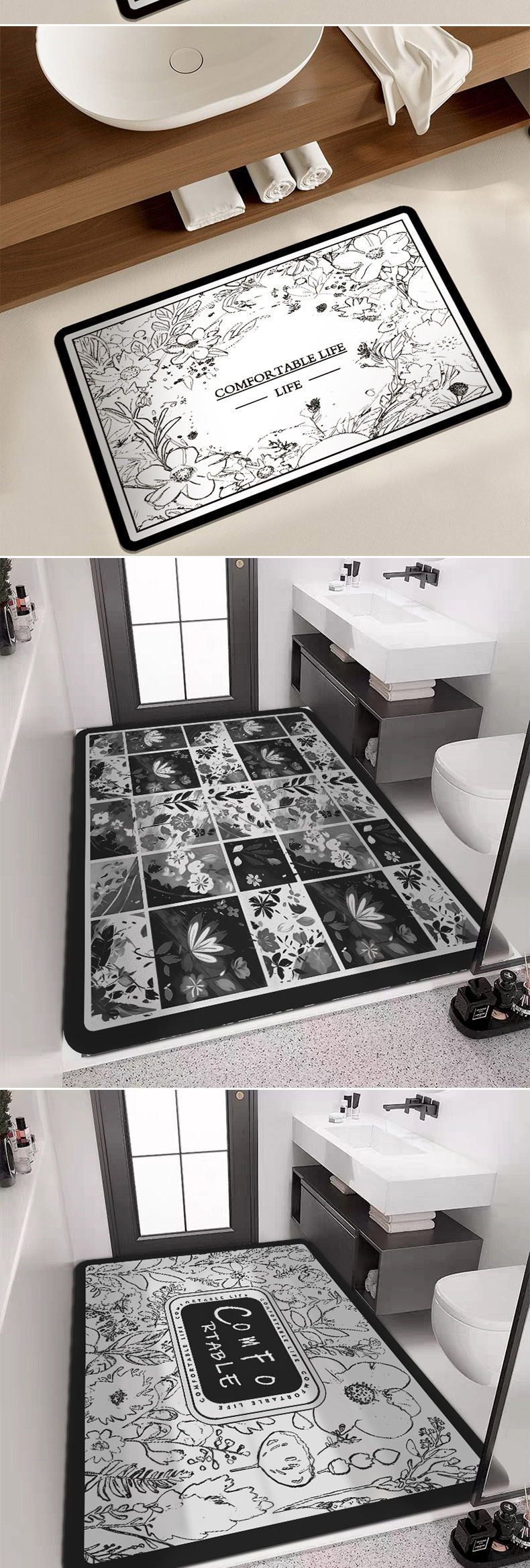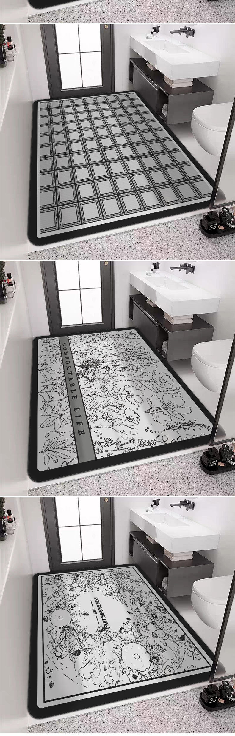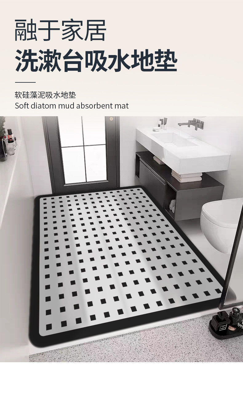 洗漱台浴室瞬干地毯吸水科技皮地垫防滑脚垫软硅藻泥垫家用可裁