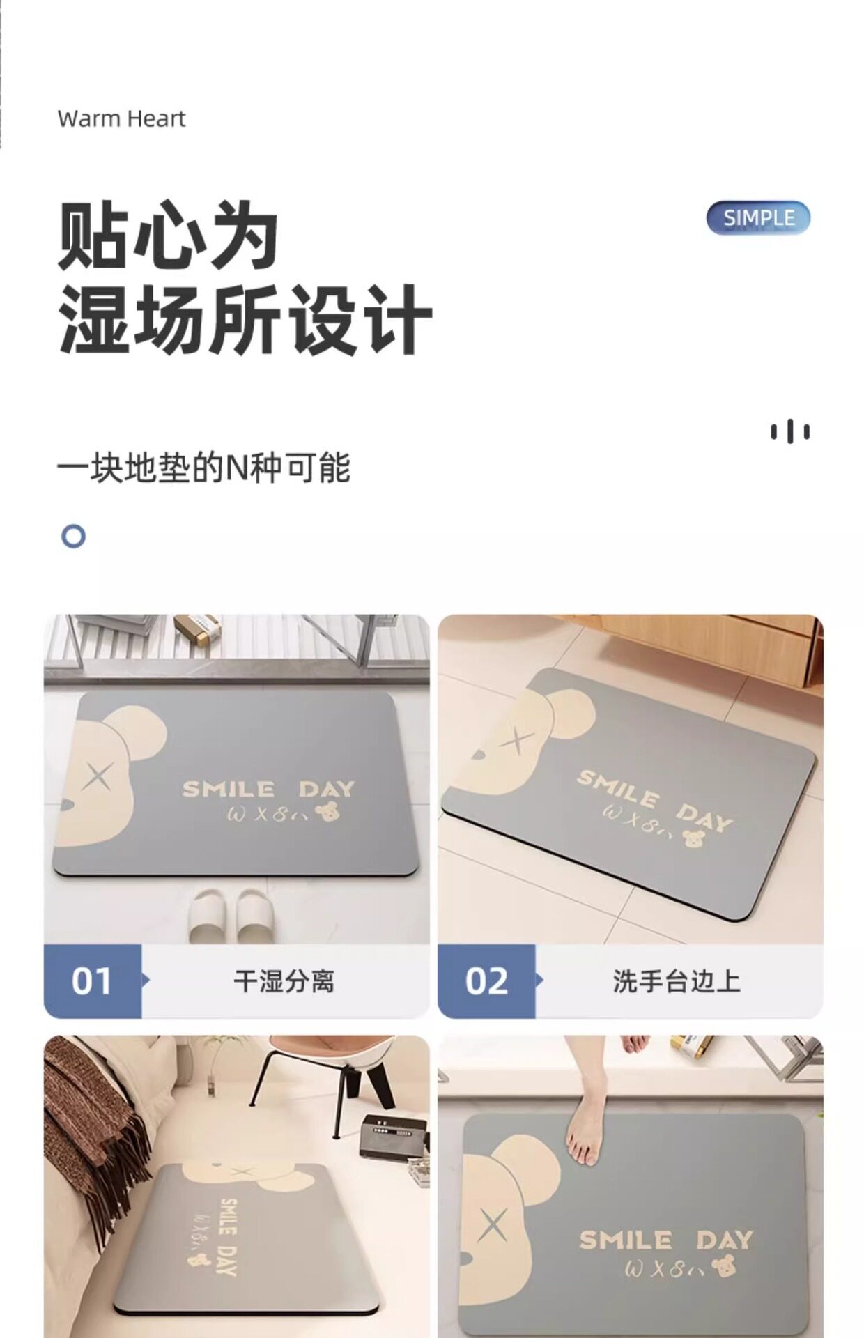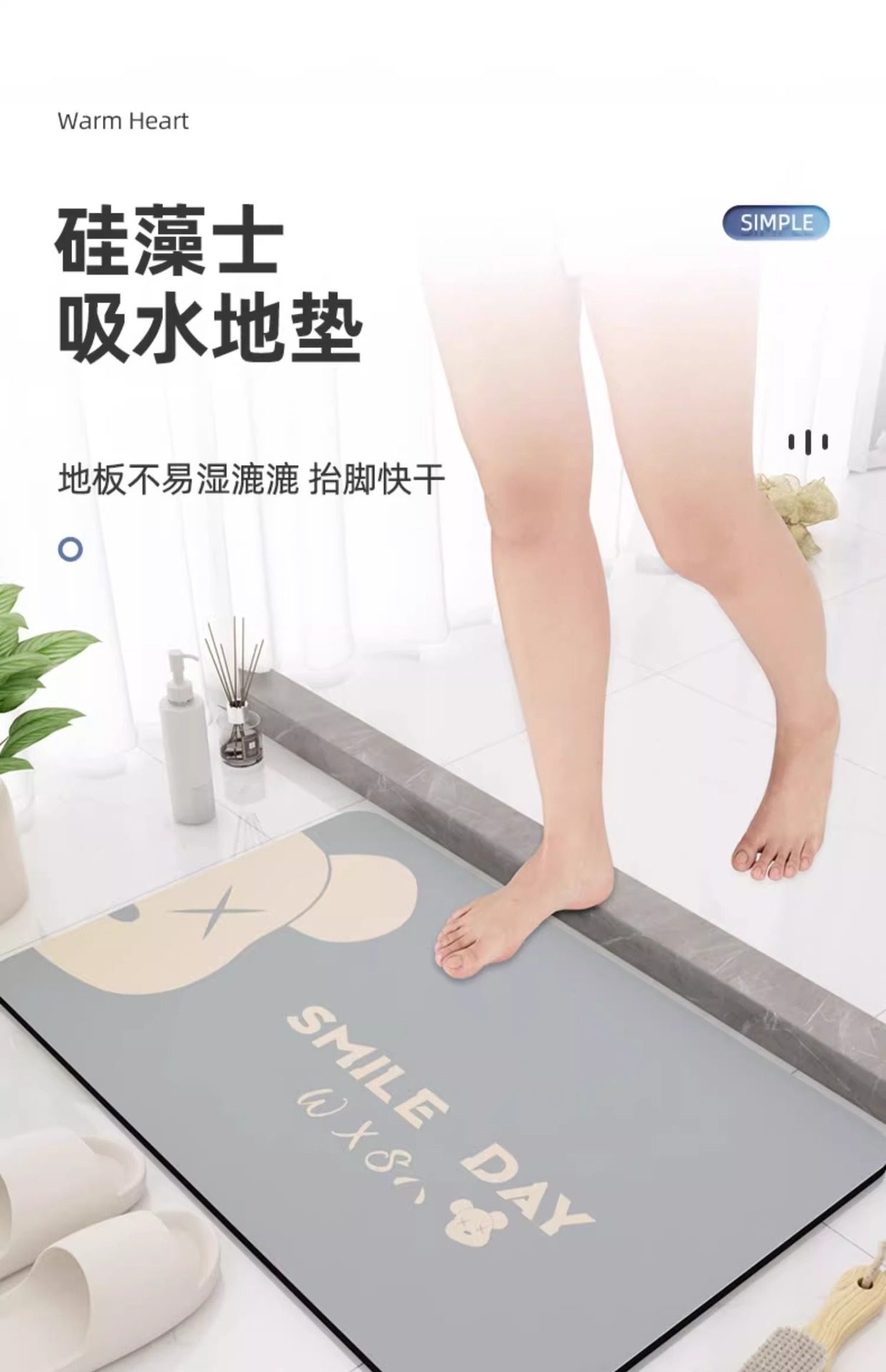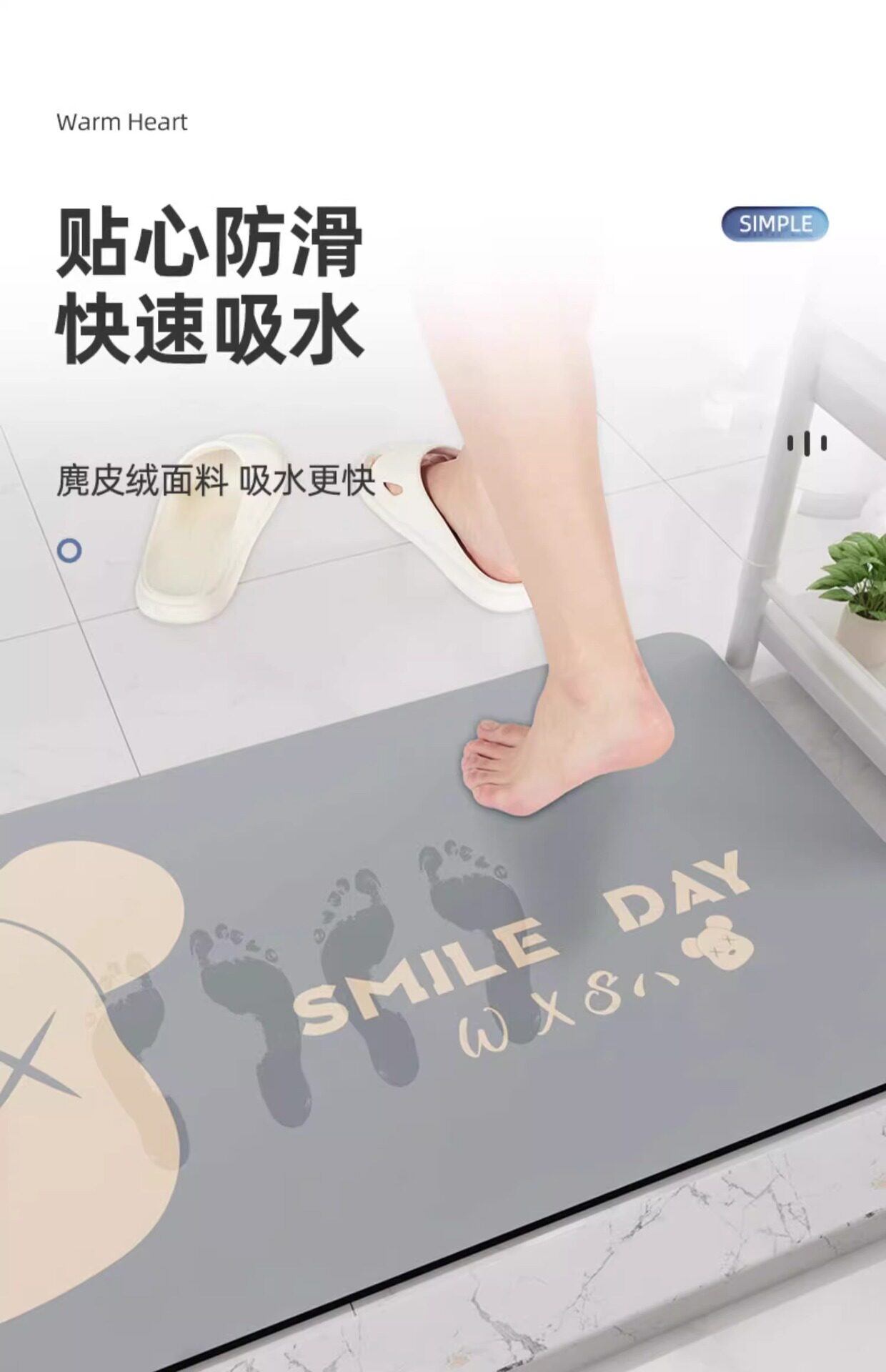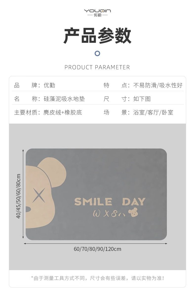浴室地垫卫生间门口防滑脚垫厕所硅藻泥吸水垫卡通家用地毯子加厚