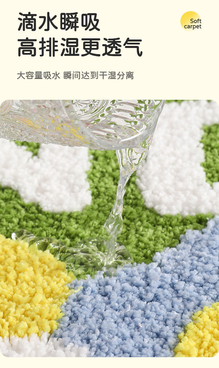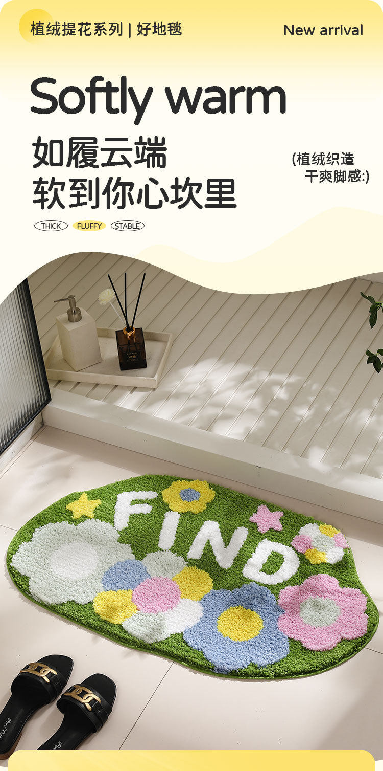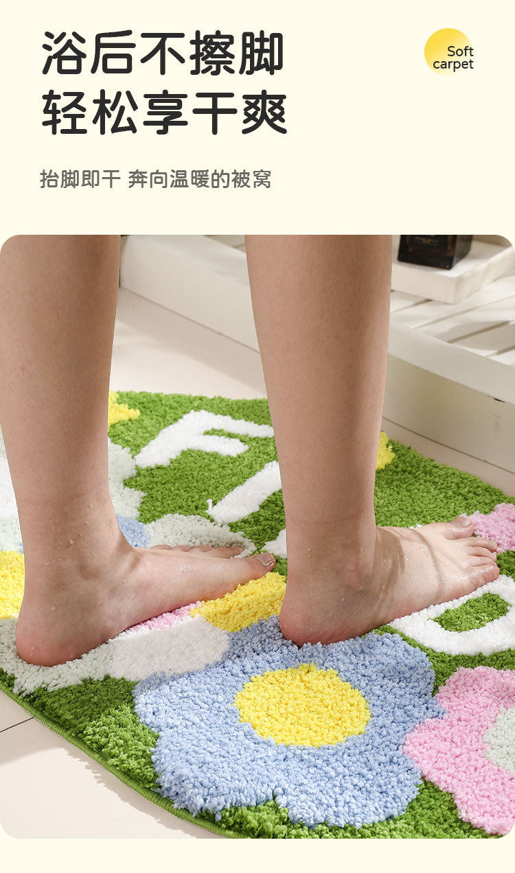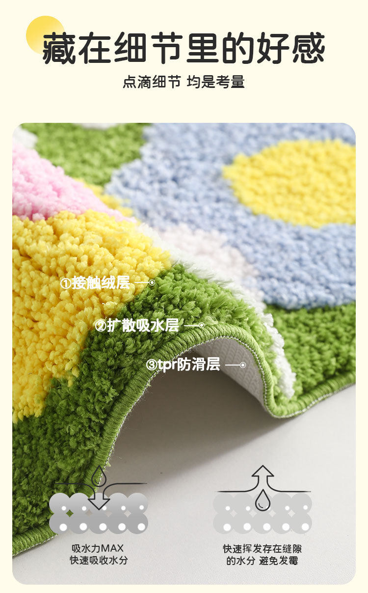 现简约田园风浴室地垫小清新家用卫生间吸水防滑地毯低毛植绒脚垫