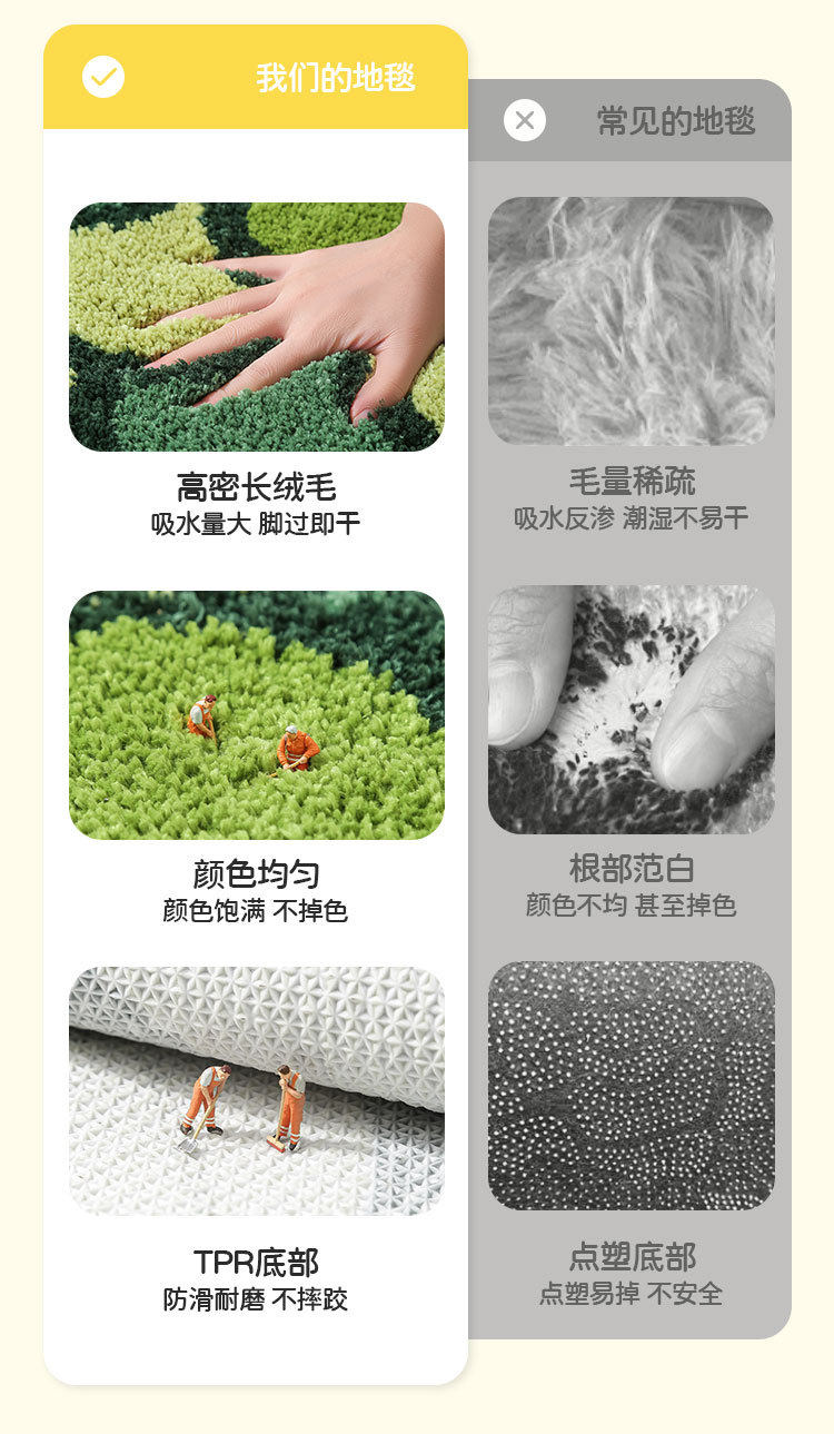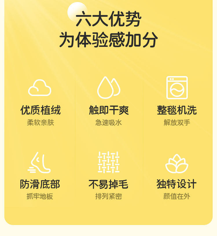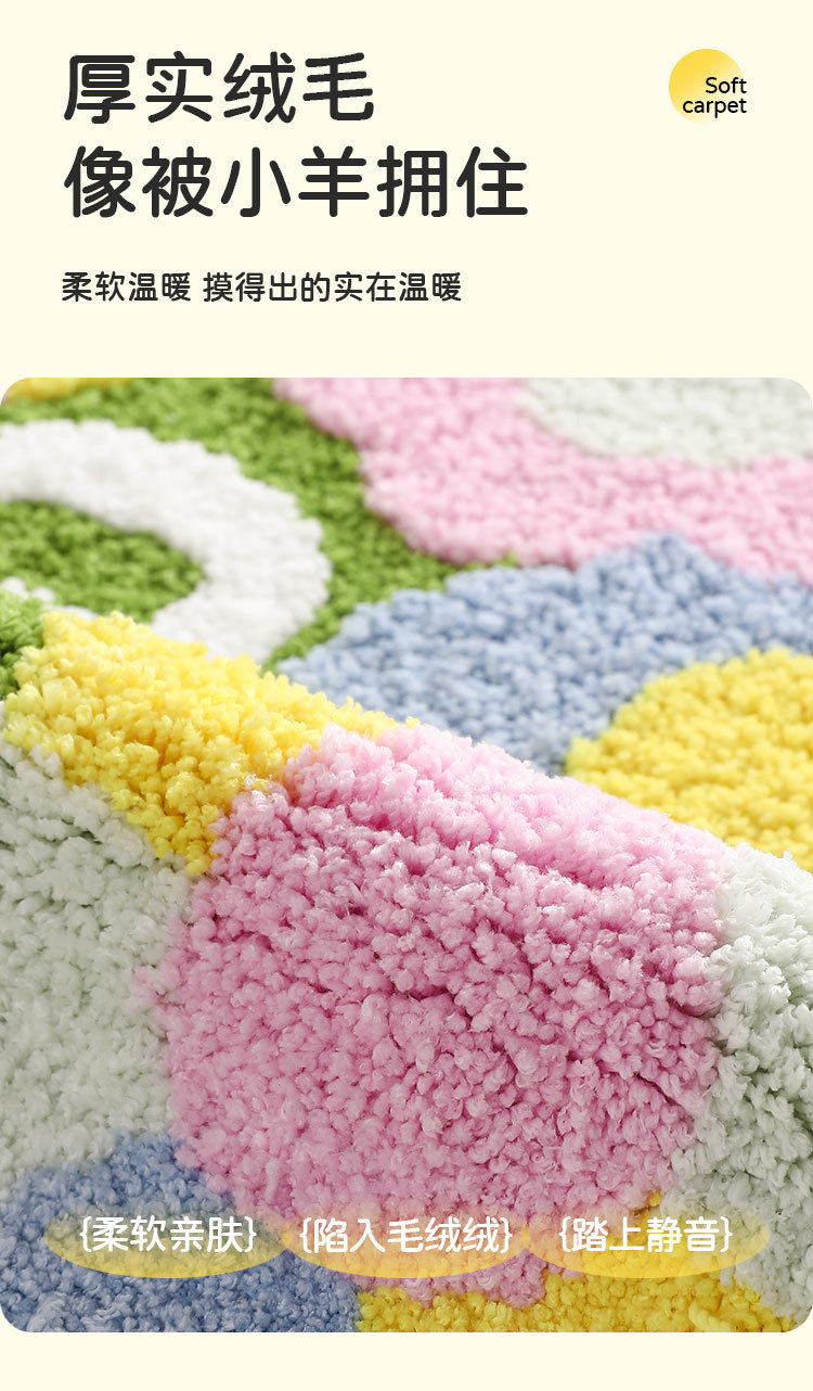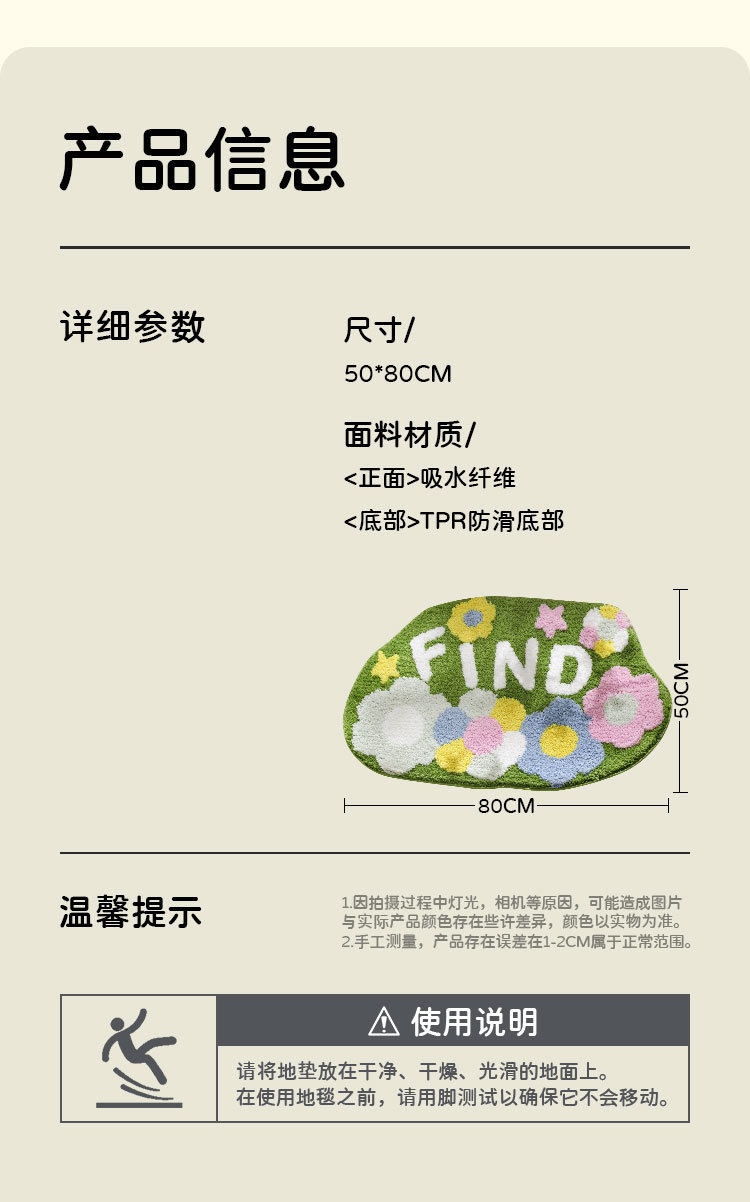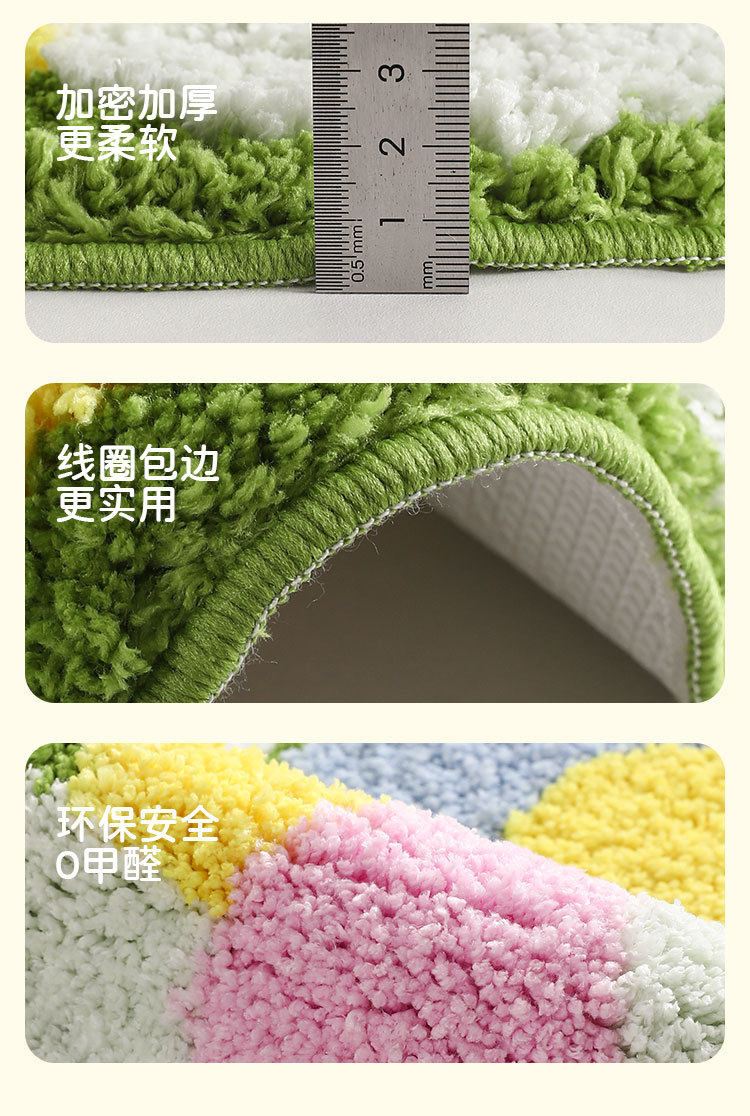 现简约田园风浴室地垫小清新家用卫生间吸水防滑地毯低毛植绒脚垫
