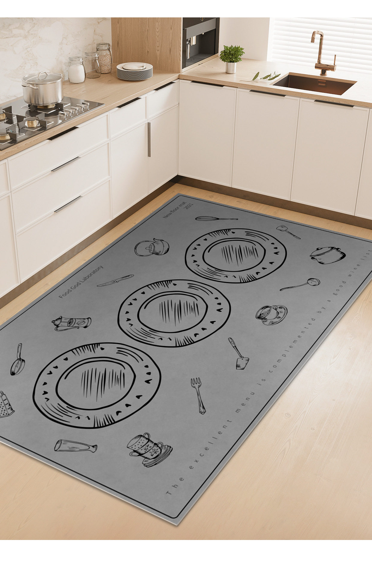 厨房地垫防滑防油可擦免洗地毯pvc防水脚垫简约整铺家用耐脏垫子